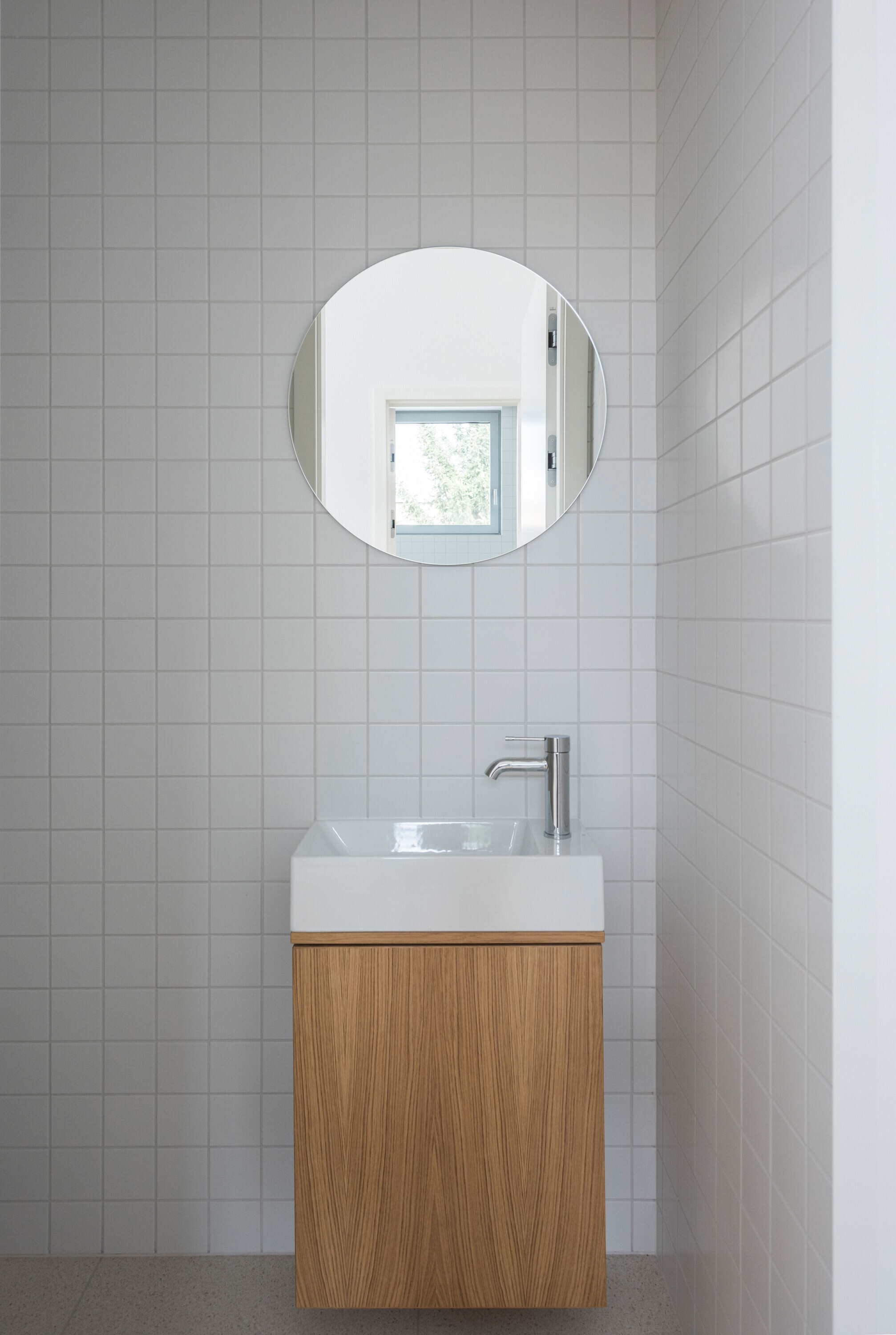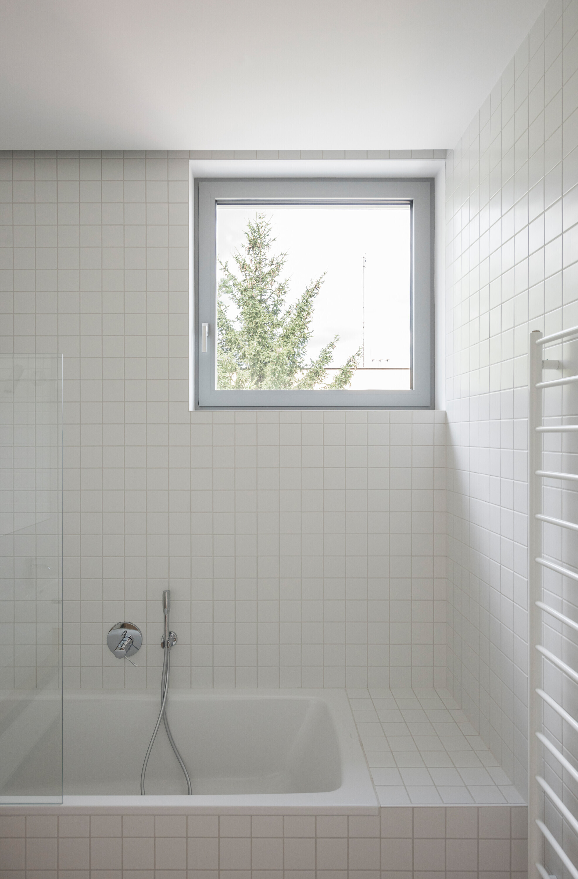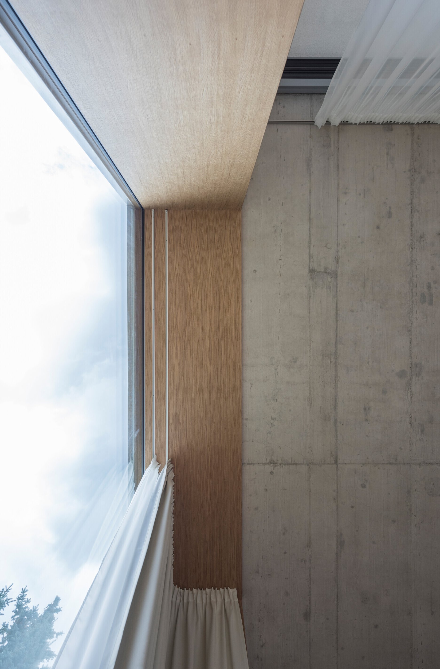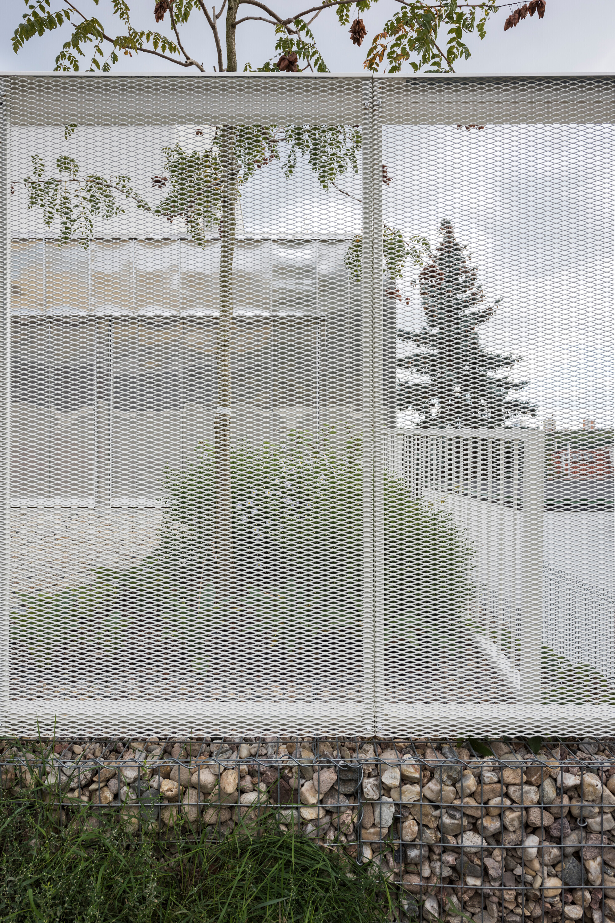 Z ulice stavba pôsobí ako jednopodlažný objem so šikmou strechou, čím reaguje na bezprostredne susediace rodinné domy a nimi danú stavebnú čiaru aj výšku. S klesajúcim južným svahom stavba postupne rastie a odkazuje na terasové bytové domy, ktoré sa nachádzajú nad ňou. Dom má teda dve tváre – smerom do mesta a do zelene.