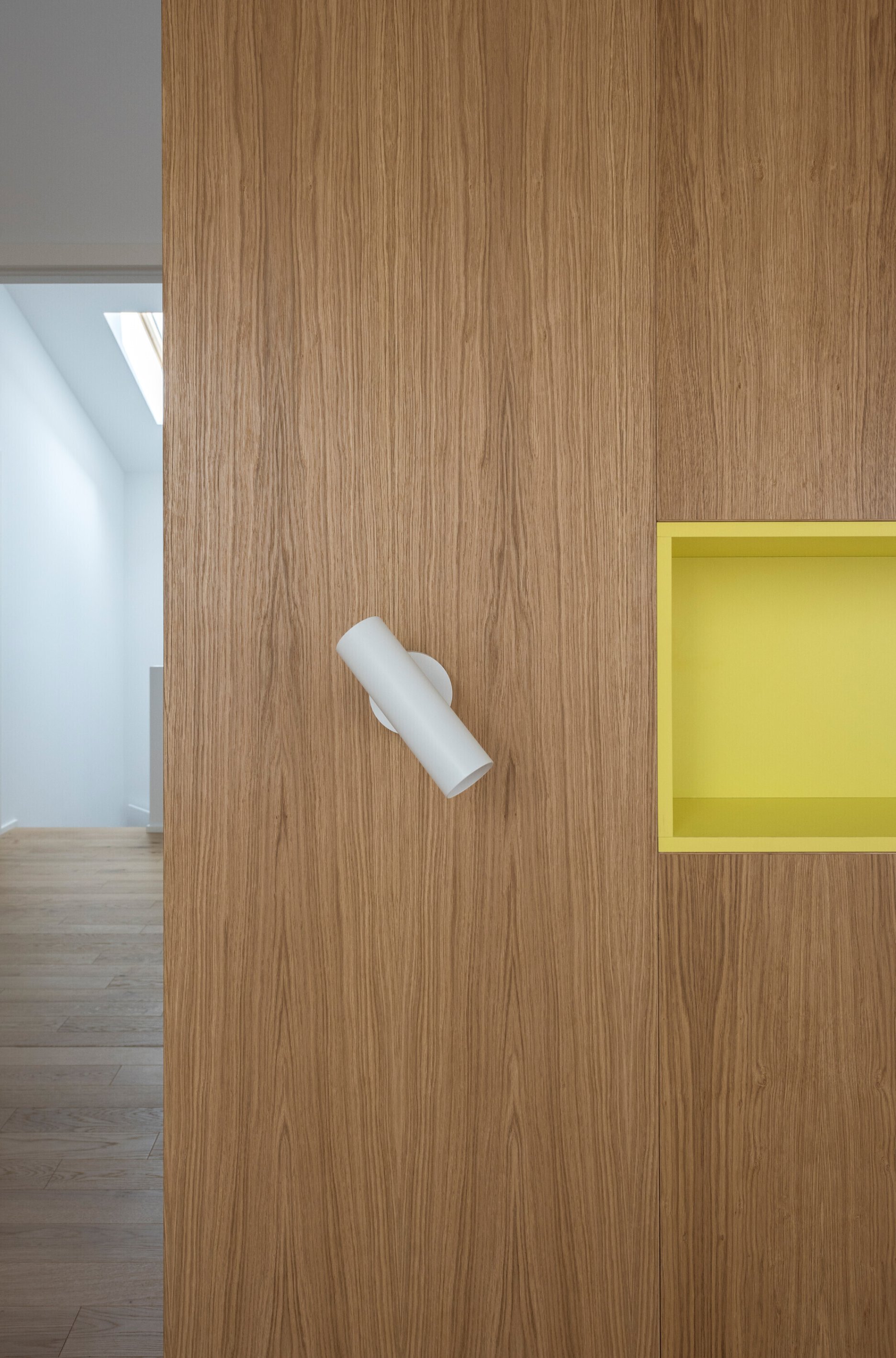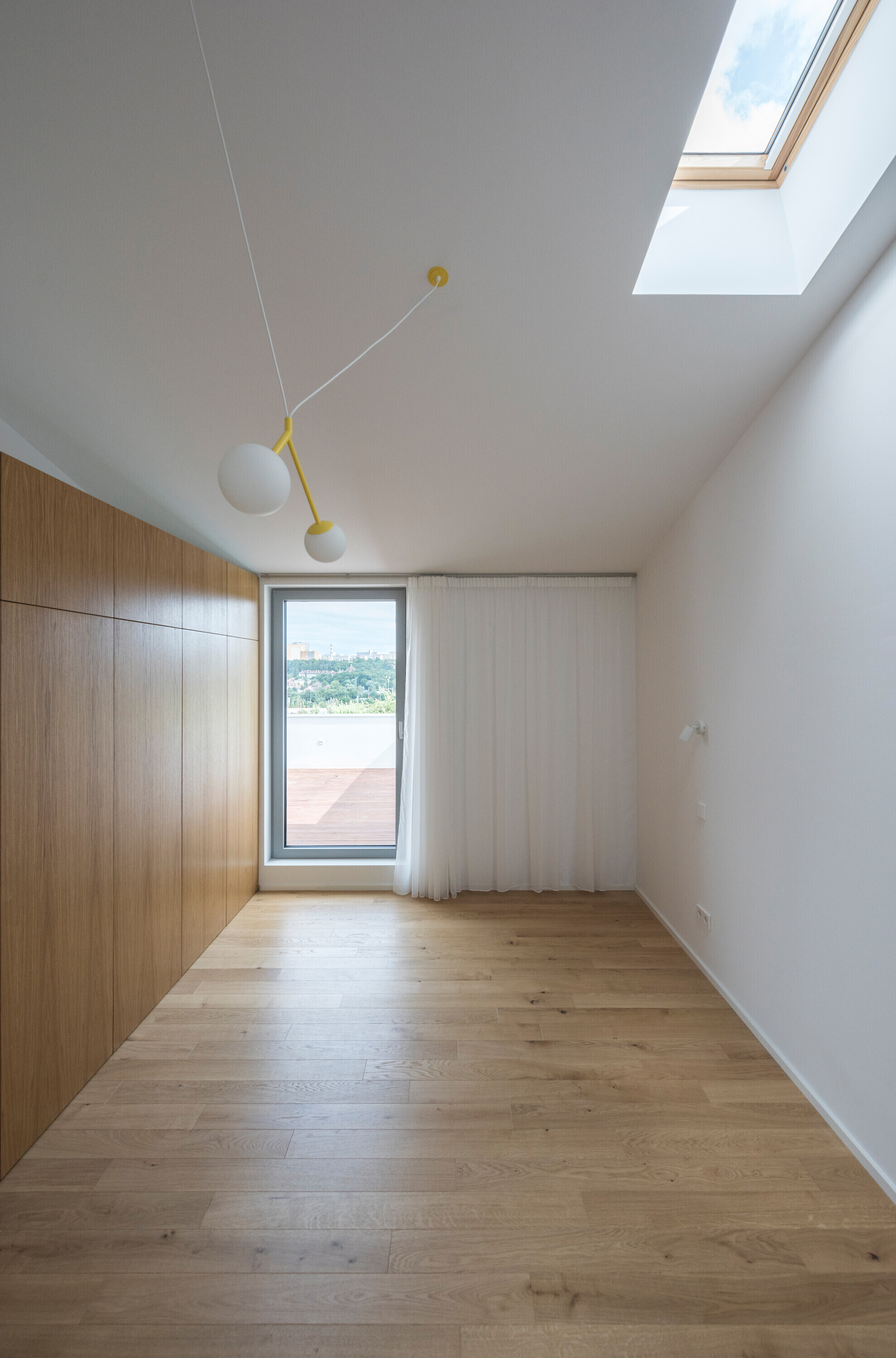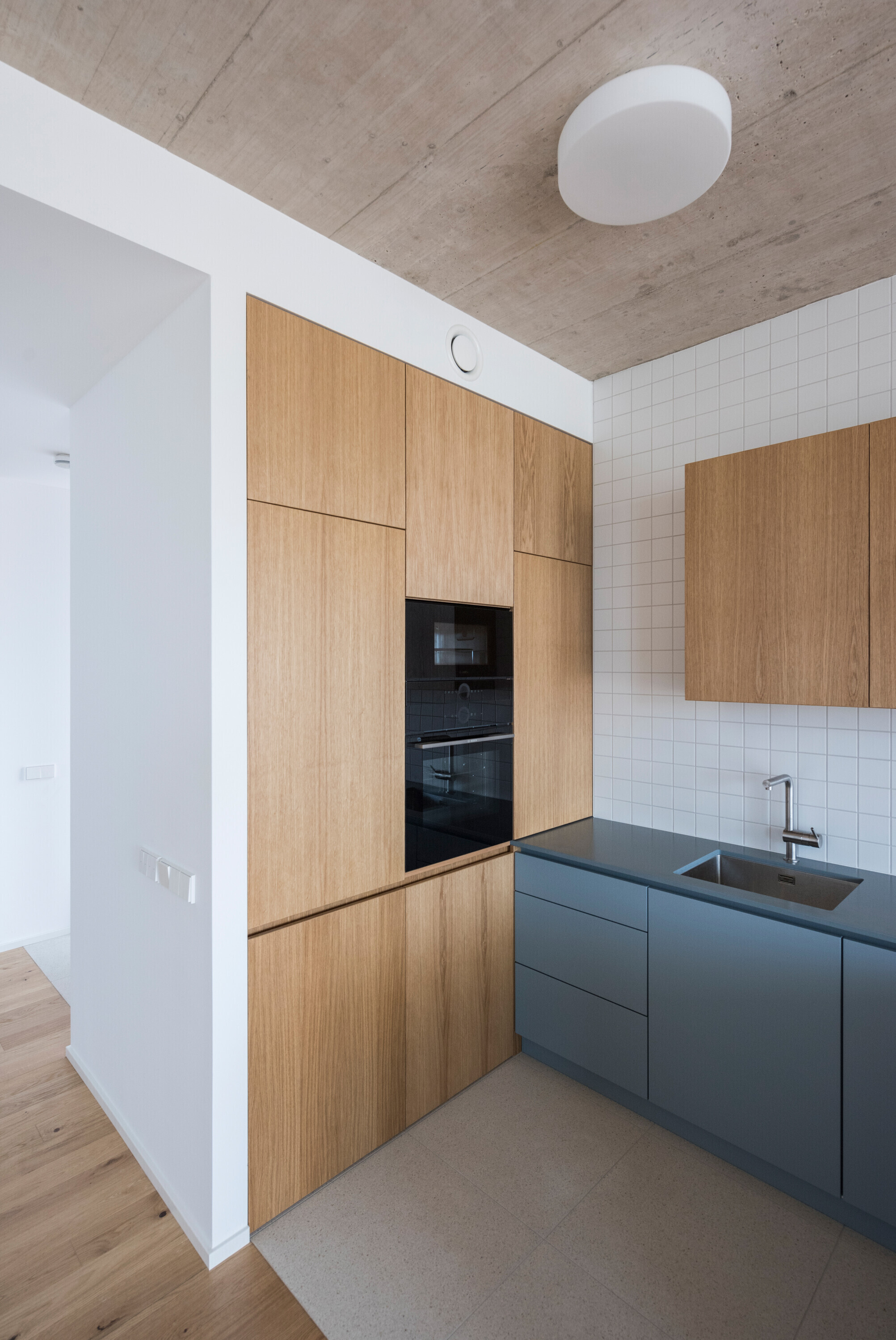 Farebný vstavaný nábytok v interiéroch tvorí hravý kontrast k monochromatickému exteriéru. Prírodnú kresbu dubovej dyhy dopĺňajú farebné lakované plochy. Terasy tienia pergoly so žltými baldachýnmi. Obývacie izby všetkých bytov majú okrem prístupu na terasy a výhľadov do zelene aj sedacie bezrámové okná s hlbokým parapetom, ktoré sa zároveň výrazne prejavujú na fasádach. V obytných miestnostiach bol priznaný železobetón monolitických stropných dosiek. Stavba je riešená ako energeticky takmer nulový dom, s recykláciou dažďovej vody, využitím tepelných čerpadiel a núteným vetraním s rekuperáciou.