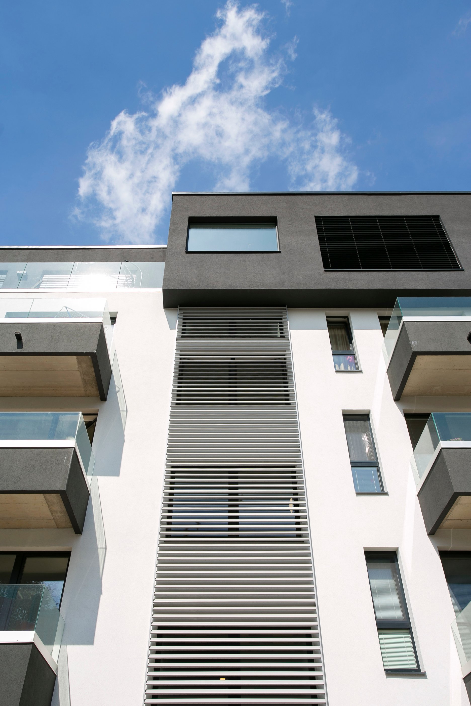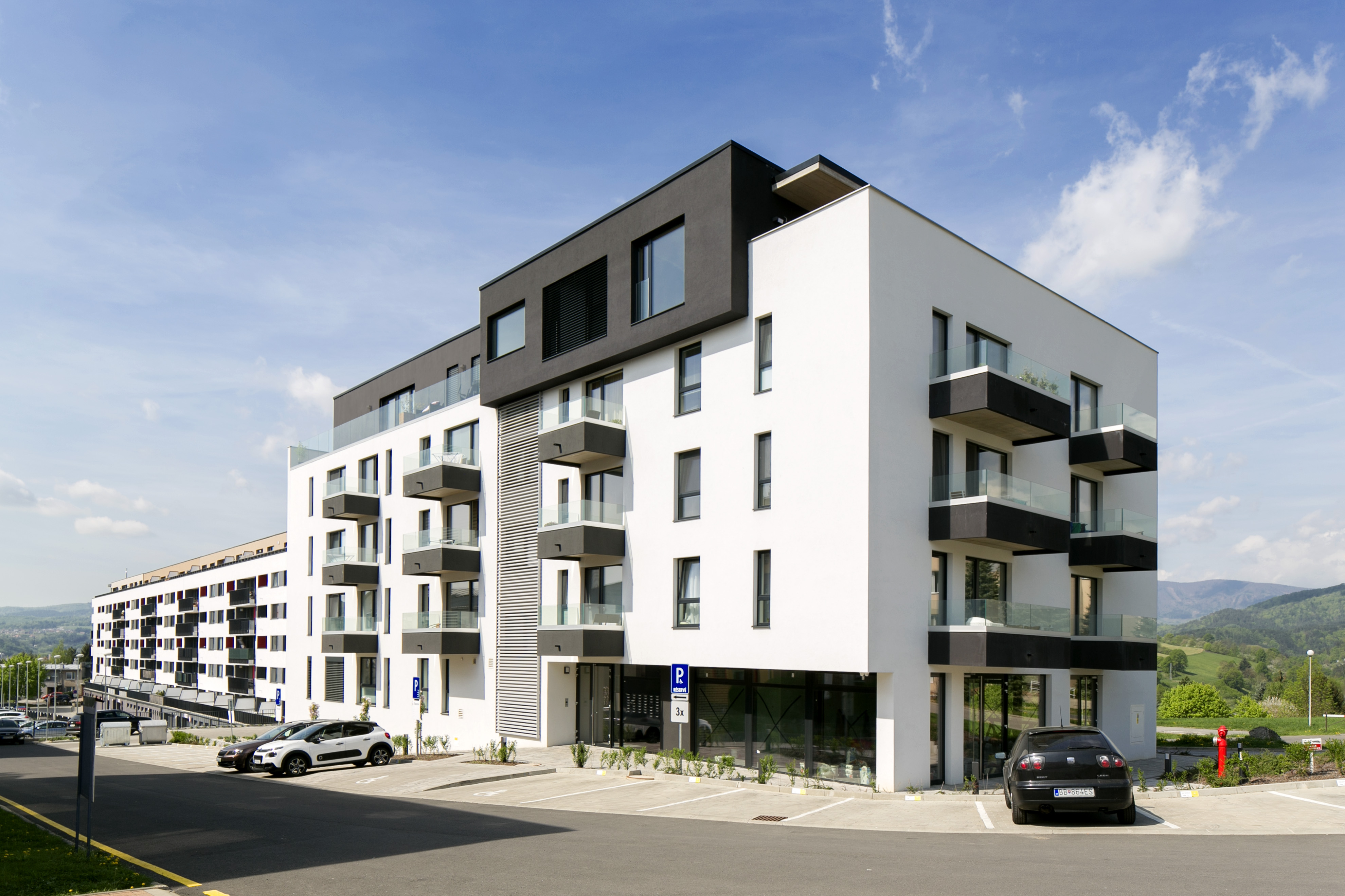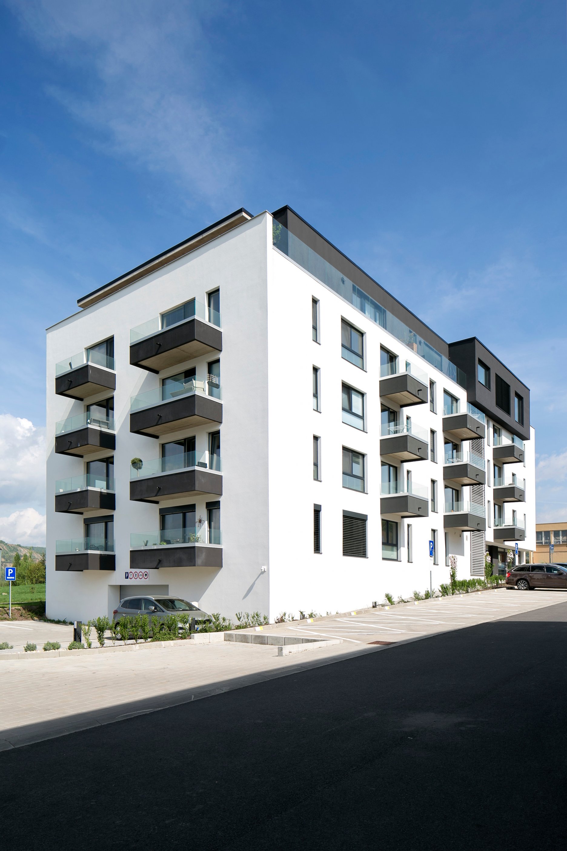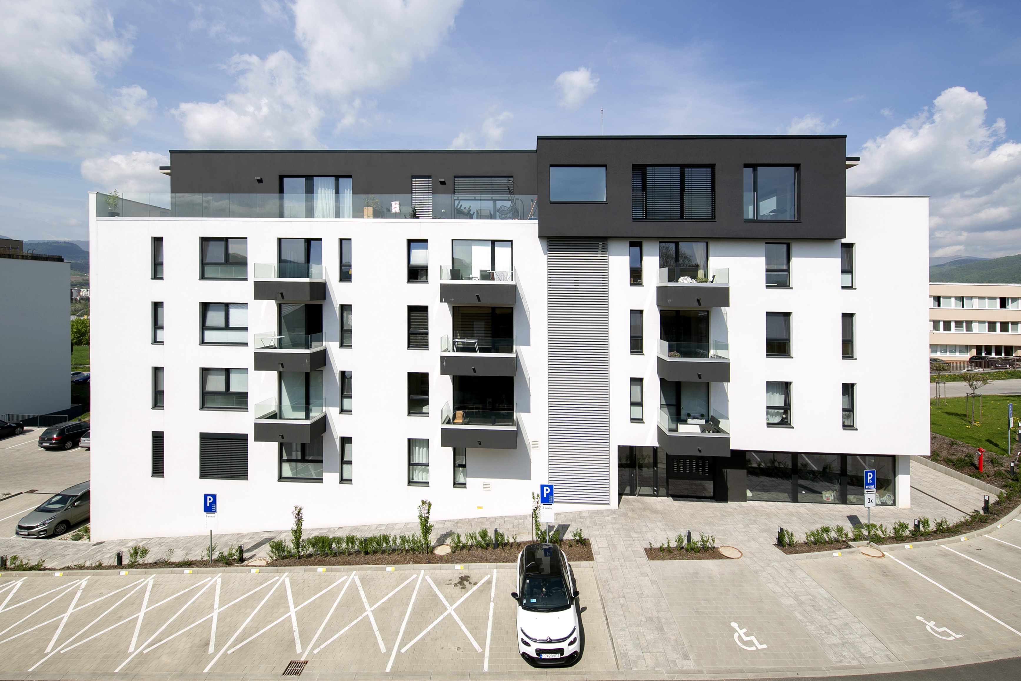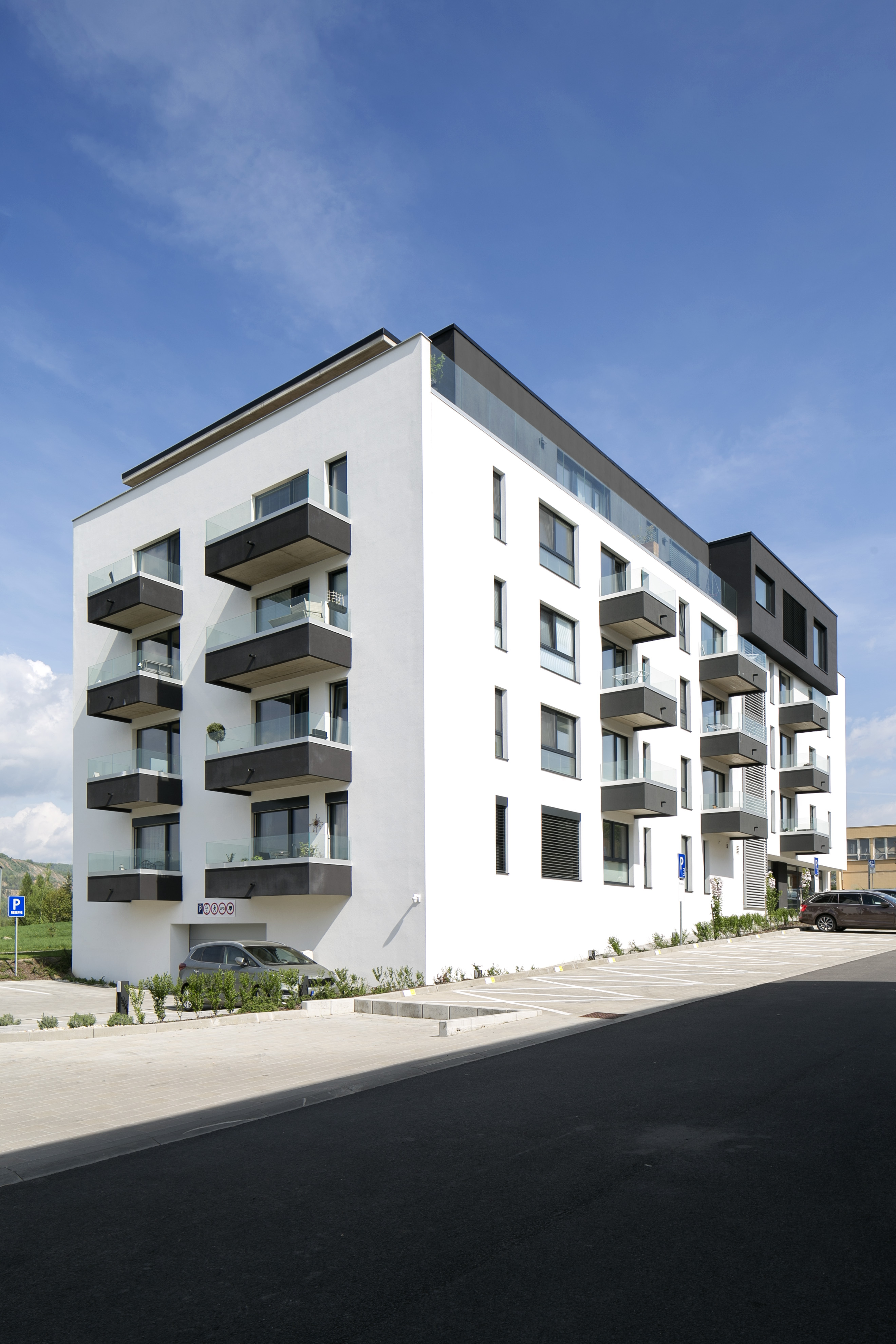Jednou z predností lokality sú priehľady na centrum mesta a zelený horizont. "Snažili sme sa, aby čo najviac bytov malo rozhľad na dve svetové strany," vysvetľuje architekt Martin Bielik. Architektonický výraz budovy, definovaný hladkými, monochromatickými plochami fasády, je podporený takými detailmi, ako bezrámové zábradlia balkónov a lodžií s betónovými podhľadmi. "Posledné, tmavosivé poschodie je ustúpené z dvoch strán. V opačnom smere je naopak rôzne vystúpené, čo opticky znižuje hmotu objektu," dopĺňa Martin Bielik.