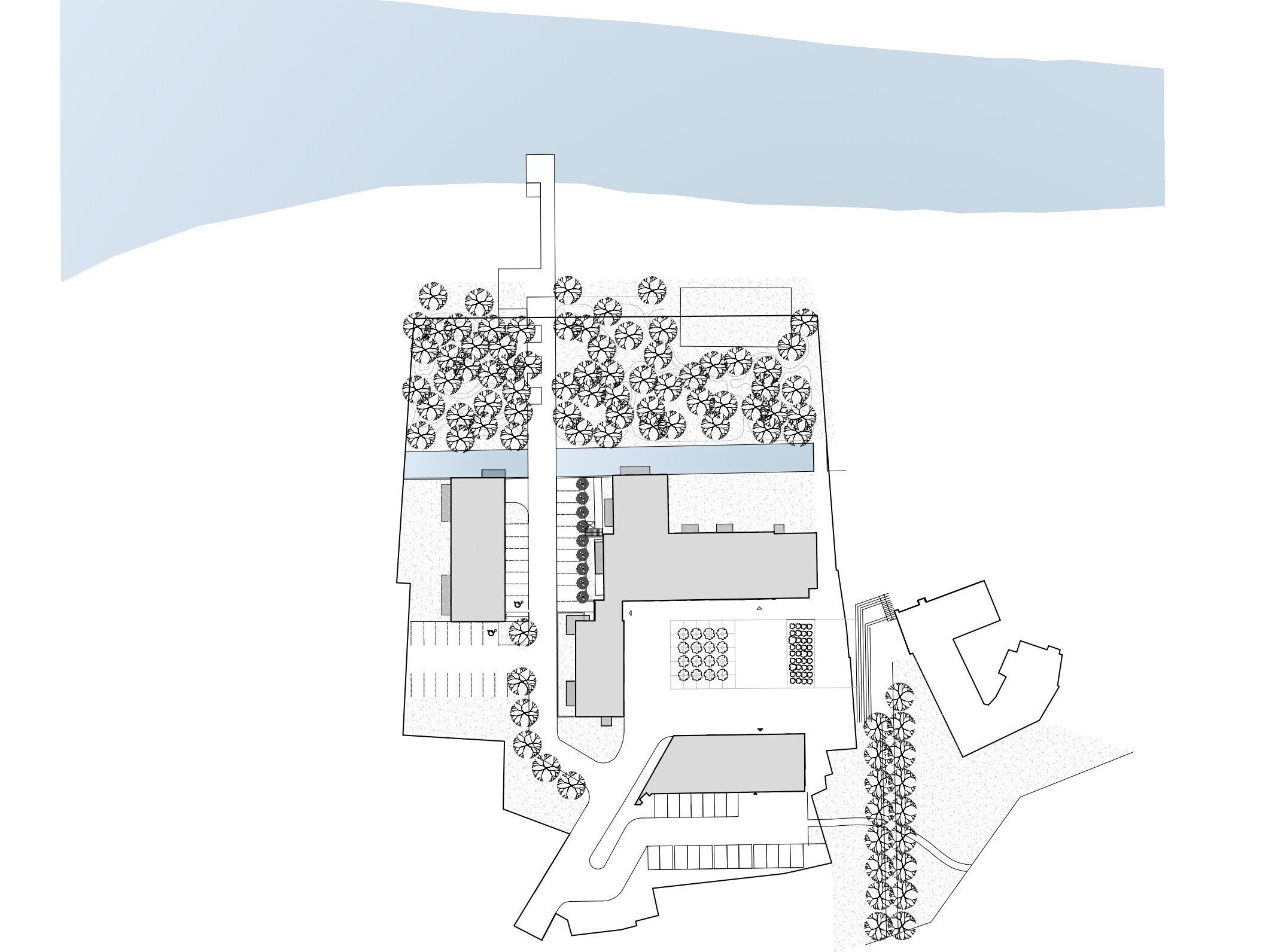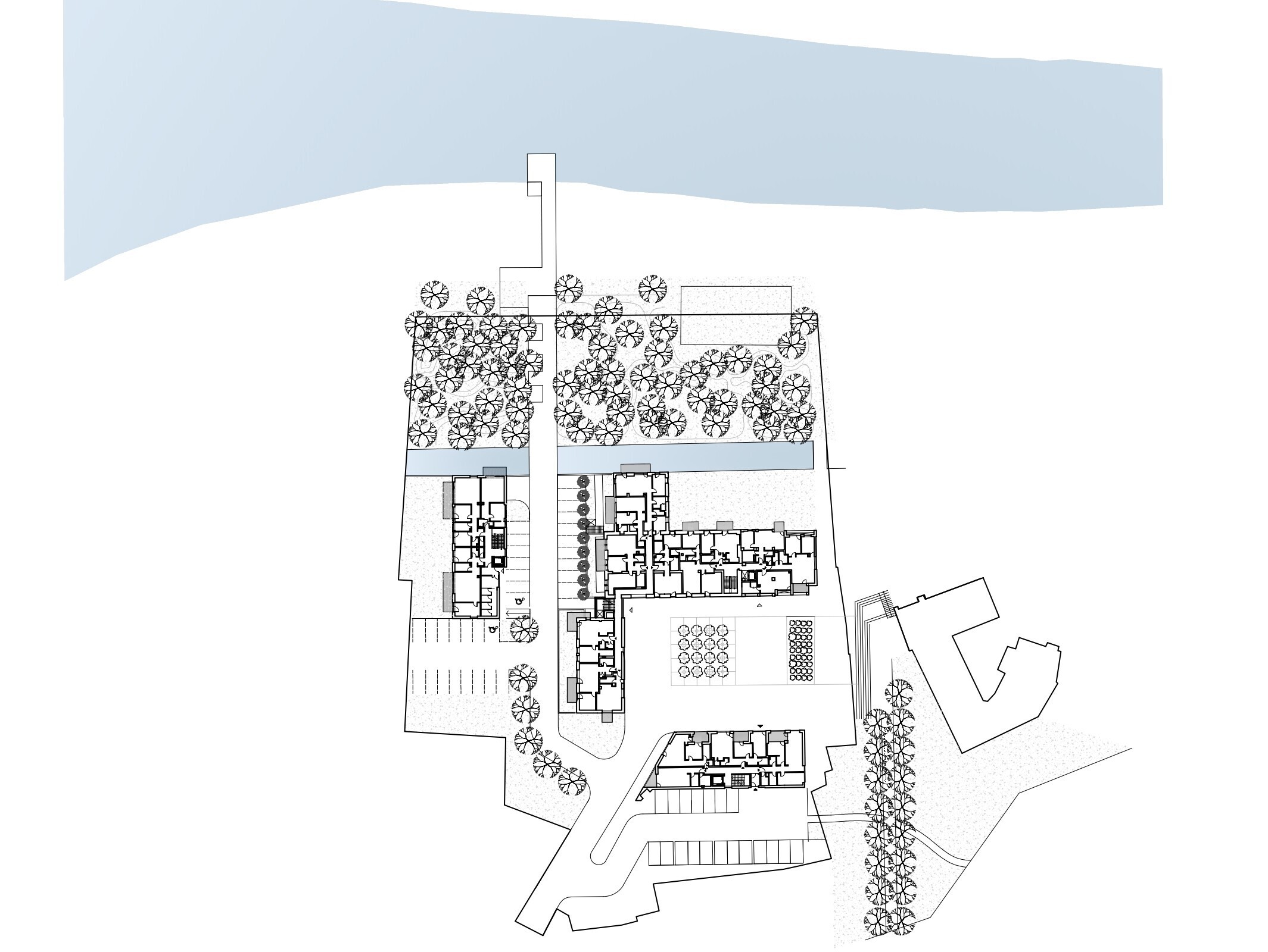 Z urbanistického hľadiska bolo dôležitým krokom doplnenie otvorenej strany pôdorysného usporiadania novým trojpodlažným bytovým domom. Tým vzniklo námestie so stromoradím a širokým schodiskom orientovaným k zámočku, ktoré prepája jednotlivé časti areálu. V jeho strede je osadená pôvodná Francisova turbína vyzdvihnutá zo zasypaného náhonu. Námestie tak plní obytnú aj komunitnú funkciu a zároveň pripomína pôvodné technologické vybavenie areálu.