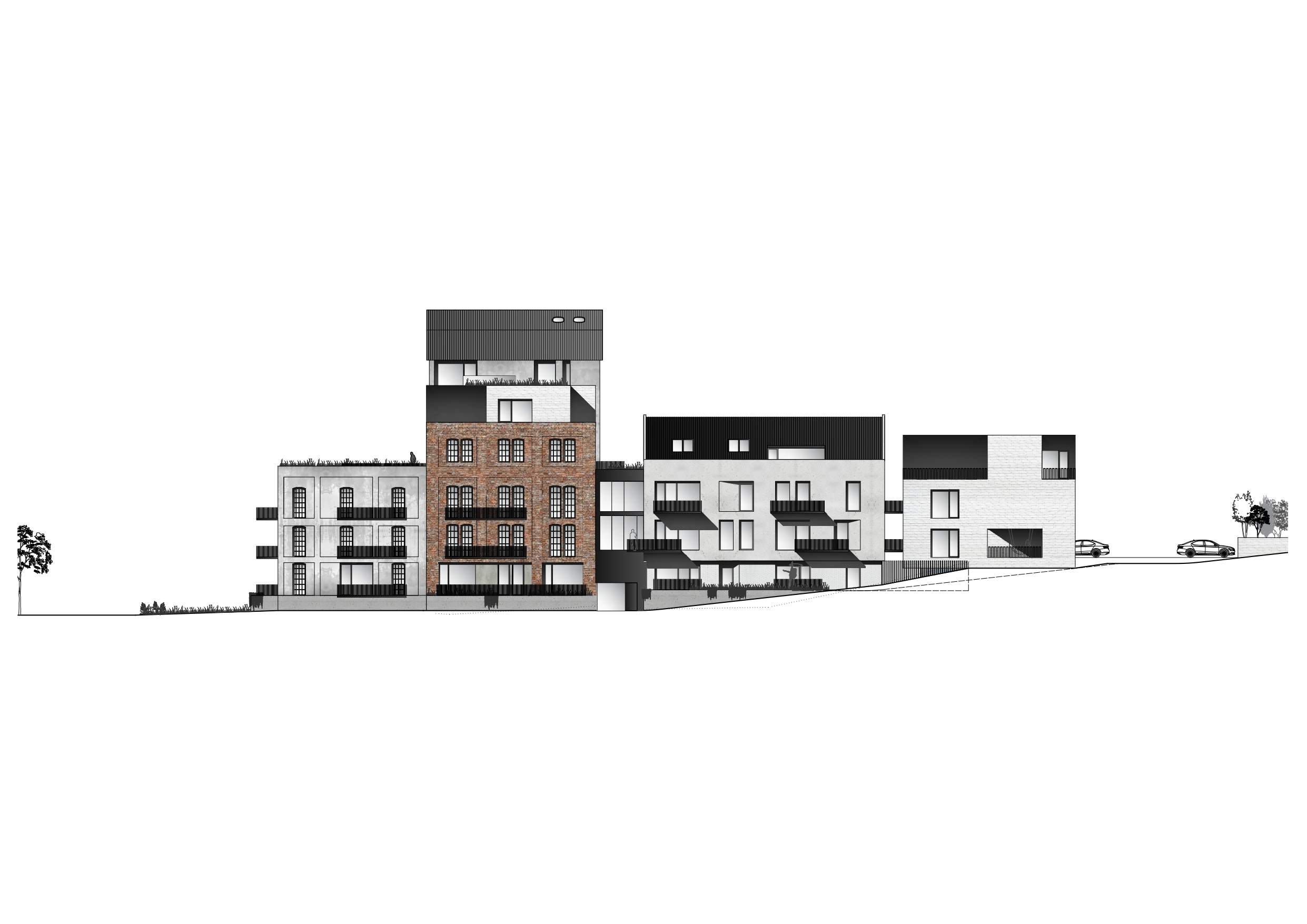 Realizácia ateliéru mar.s architects rešpektuje pôvodné stavebné objekty a históriu miesta. Koncept obytnej zóny dotvárajú novostavby bytových domov a nadväzujúci koncept úpravy exteriérových priestorov.