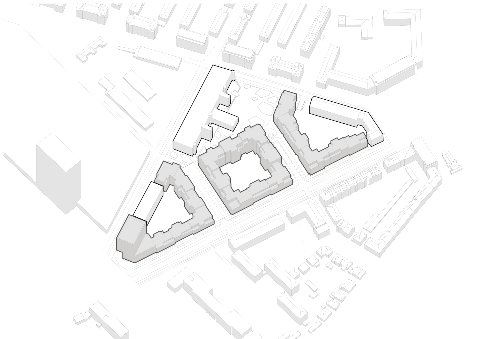 Použité architektonické a stavebné riešenia kladú dôraz na striedmosť výrazových prostriedkov, zjednocovanie dizajnových riešení a trvácnosť použitých materiálov. Materiálový a farebný súlad fasád objektu a interiéru spoločných priestorov bytových domov dotvára charakter solídneho mestského bloku. Súčasne vytvára priestor pre budúce nánosy života svojich obyvateľov.