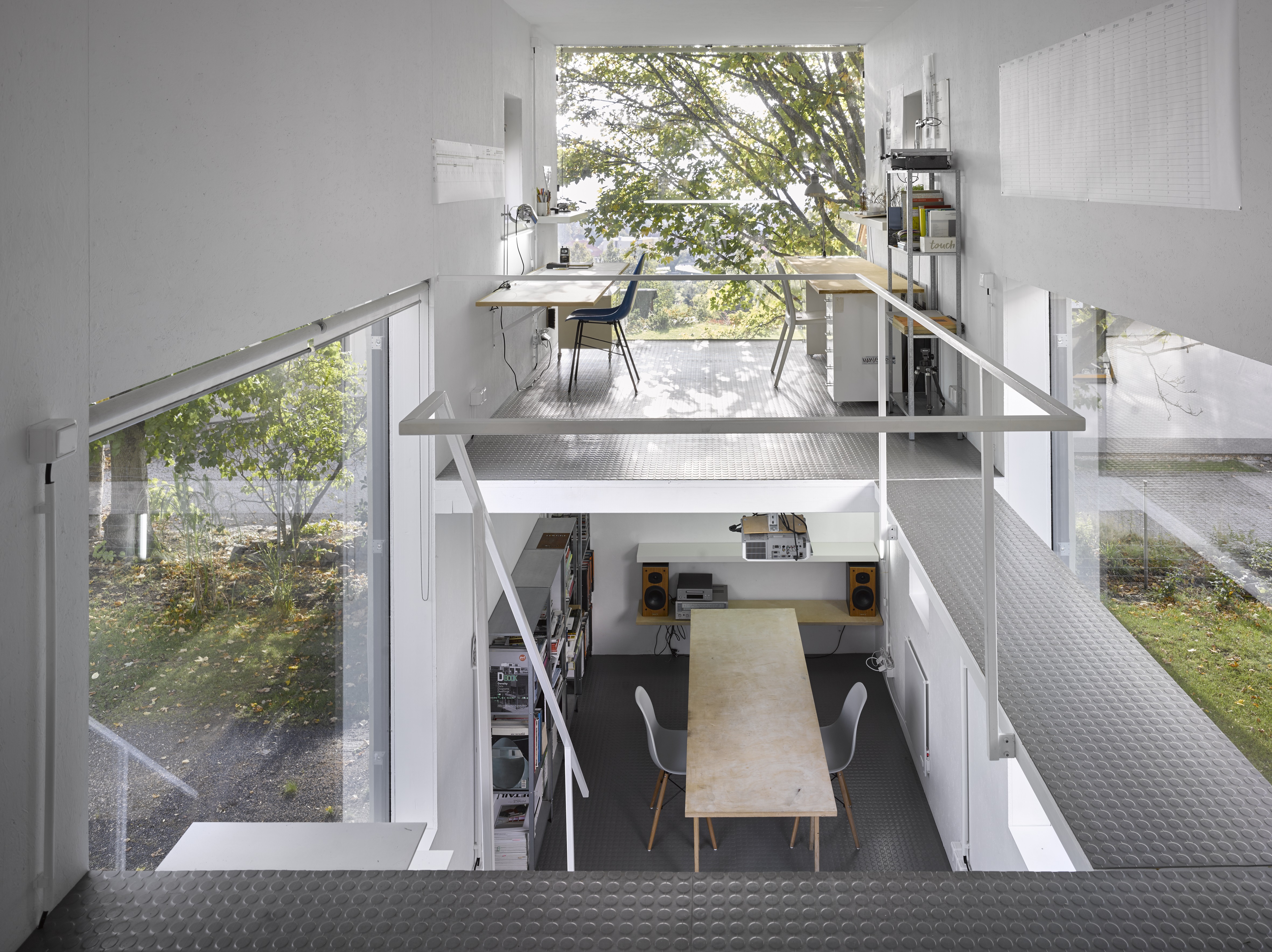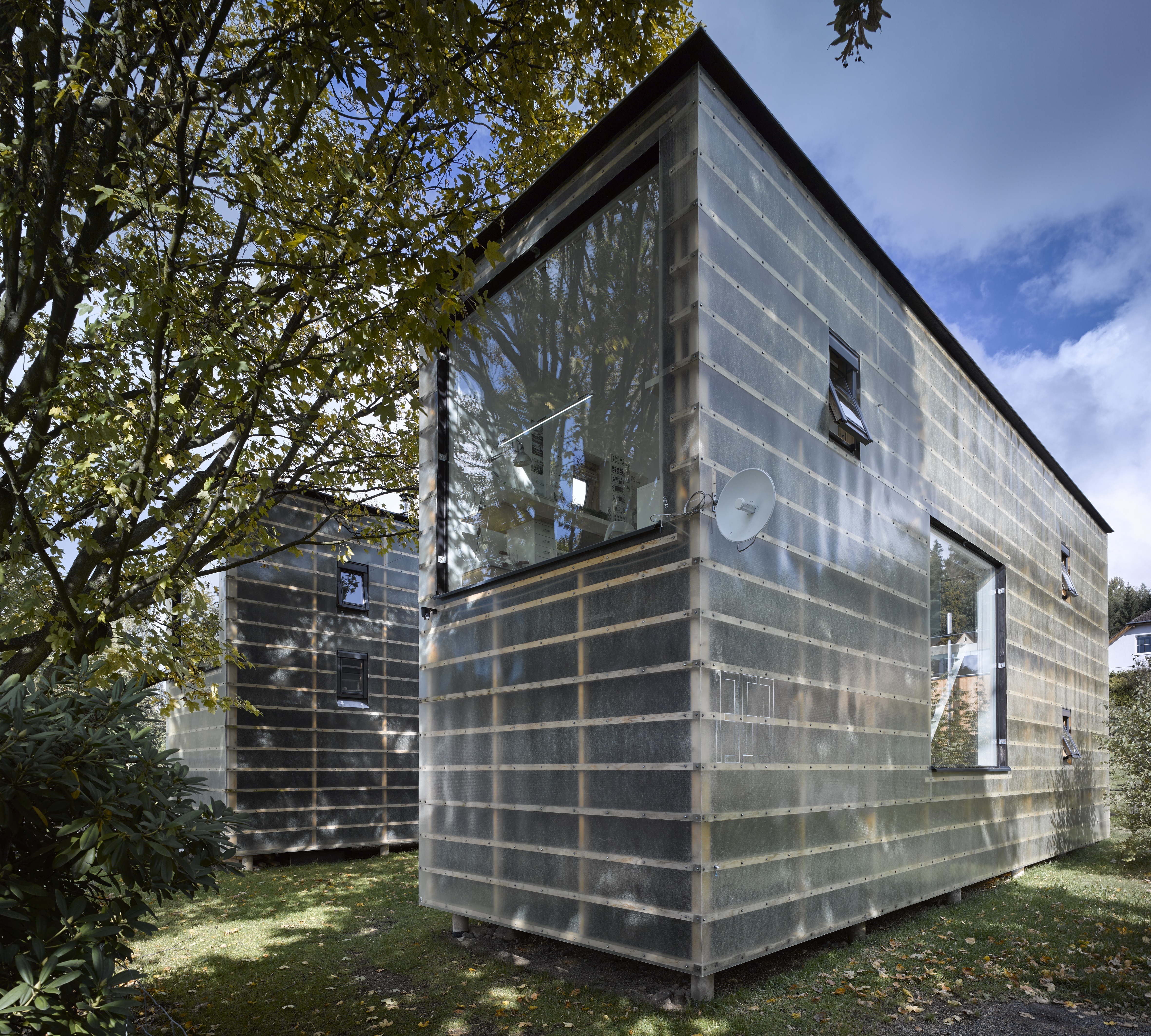 Dvojdům byl navržen a postaven jako osobní experiment autora, který je zároveň investorem i obyvatelem. Jeho záměrem bylo získat obytné a kancelářské prostory za cenu bytu ve městě. To se podařilo díky důmyslnému využití prefabrikovaných panelů a maximálnímu oproštění dispozice i provedení domu. Přes tato omezení vznikla inspirativní architektura, která poskytuje bohaté a smyslové podněty díky práci se světlem a vnitřní prostorovou kompozicí. Významným aspektem stavby je vizuální i fyzické propojení interiéru s exteriérem a její integrace do fyzického prostředí s dálkovými výhledy na Jizerské hory.