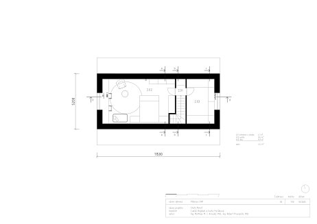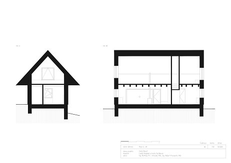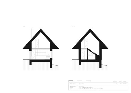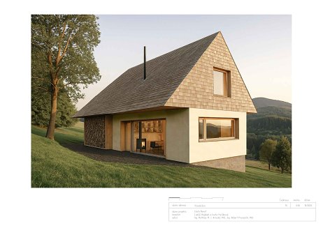Dvojpodlažná chata v oravskej obci Novoť je osadená v svahovitom teréne, s ktorým aktívne pracuje v architektonickej koncepcii. Na spodnom podlaží sa nachádza vstup, spoločenská časť, hygiena a technicko-hospodárske zázemie. Na poschodí sa nachádzajú dve izby.