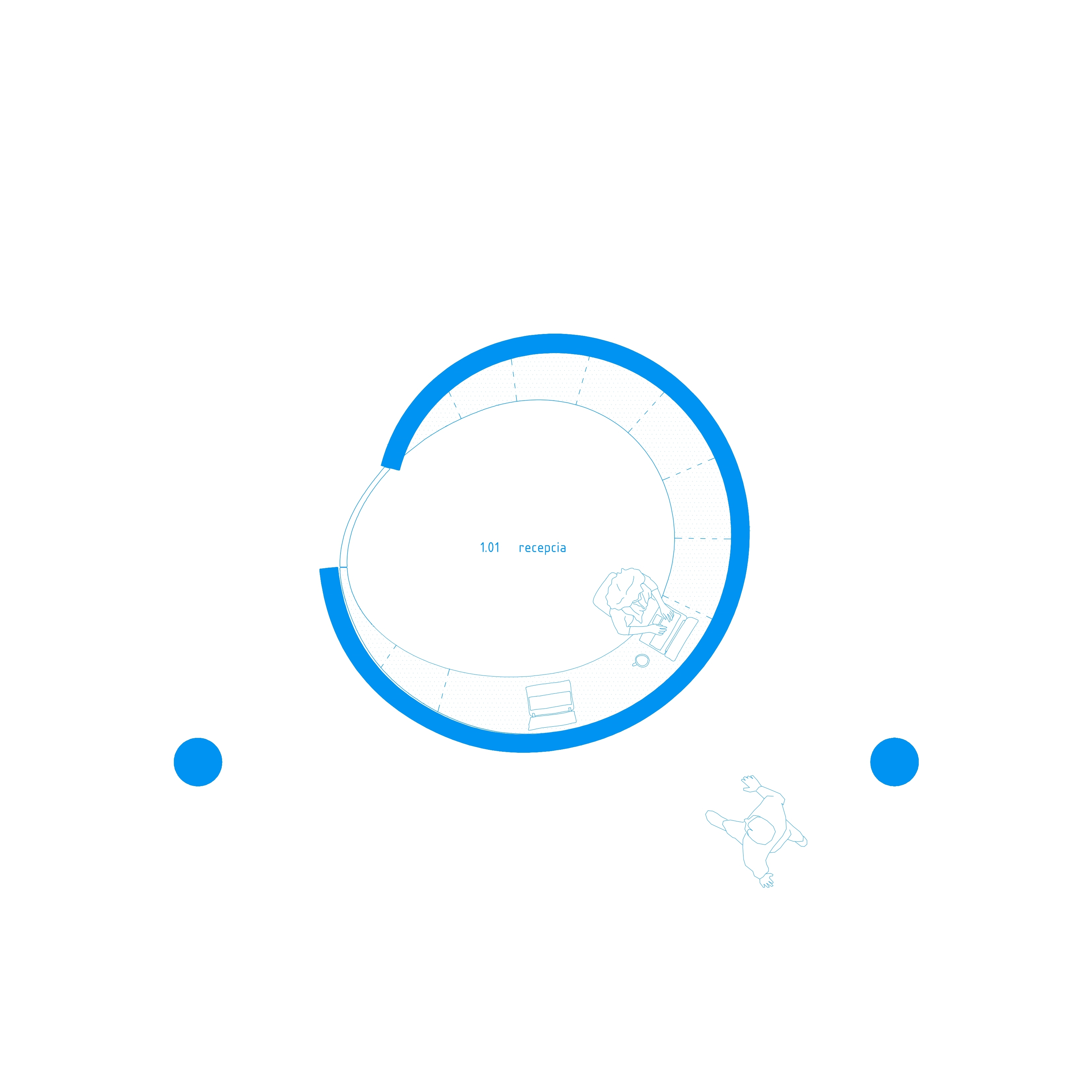 Keďže infopult je situovaný bezprostredne pri vstupe do centra, okrem základných funkčných požiadaviek bolo ďalším kritériom zriadenie vyvýšenej zadnej steny pultu, a to z dôvodu zníženia nepriaznivých prúdov chladného vzduchu na pracovníkov infostánku. Zadná stena kontaktného bodu je však zároveň nástupným frontom pre návštevníkov vstupujúcich cez hlavné priečelie.