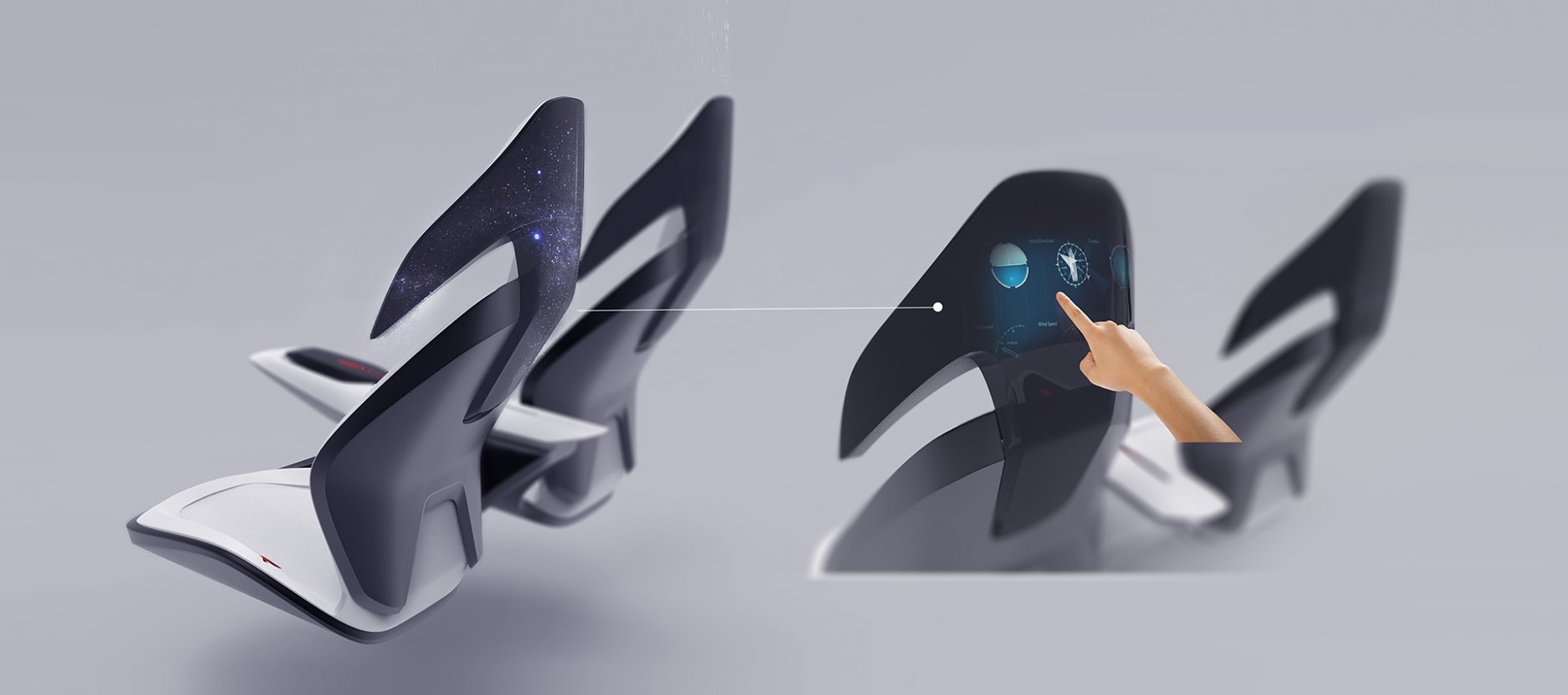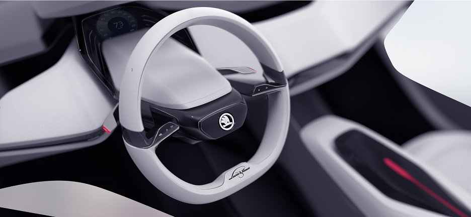 Interiér navrhnutého auta zobrazuje moju víziu budúcnosti značky ŠKODA. Hlavným vizuálnym inšpiračným zdrojom sa stal návrh z môjho predošlého projektu FIT 2 DIGITAL, ktorý predstavuje interiér mobility budúcnosti.