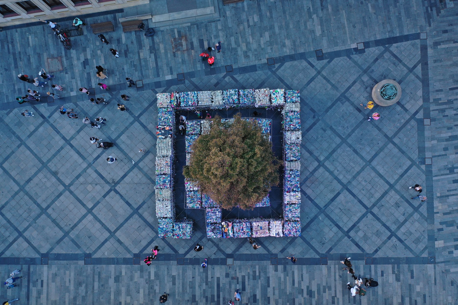 Dočasná inštalácia, ktorá vznikla na bratislavskom Primaciálnom námestí v rámci festivalu Biela noc využila tradičný motív labyrintu v spojení s aktuálnou témou recyklácie.