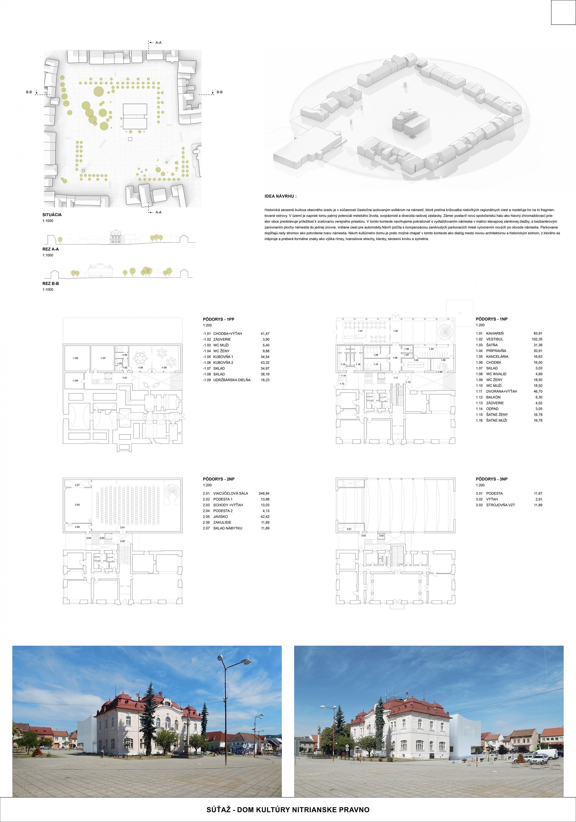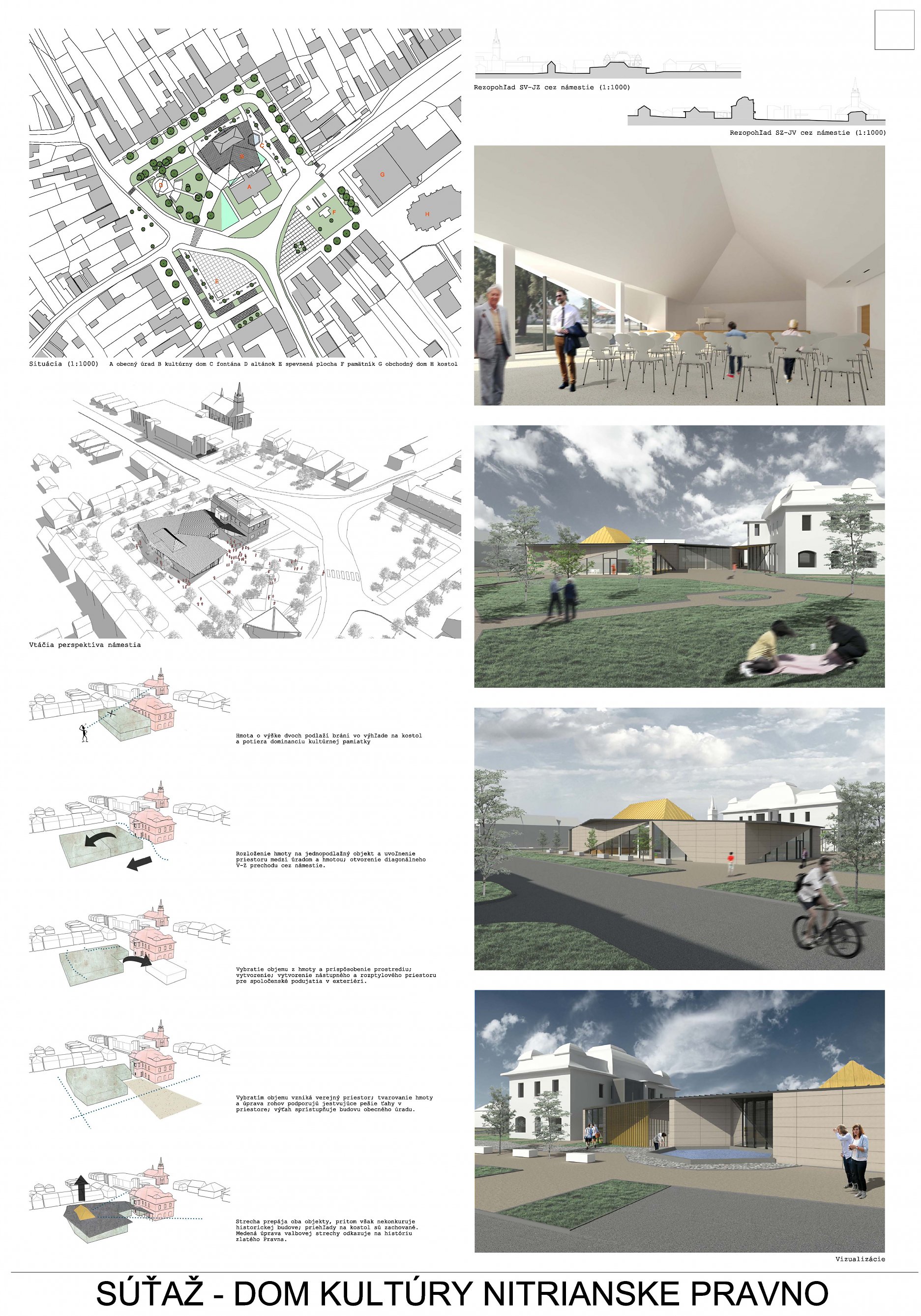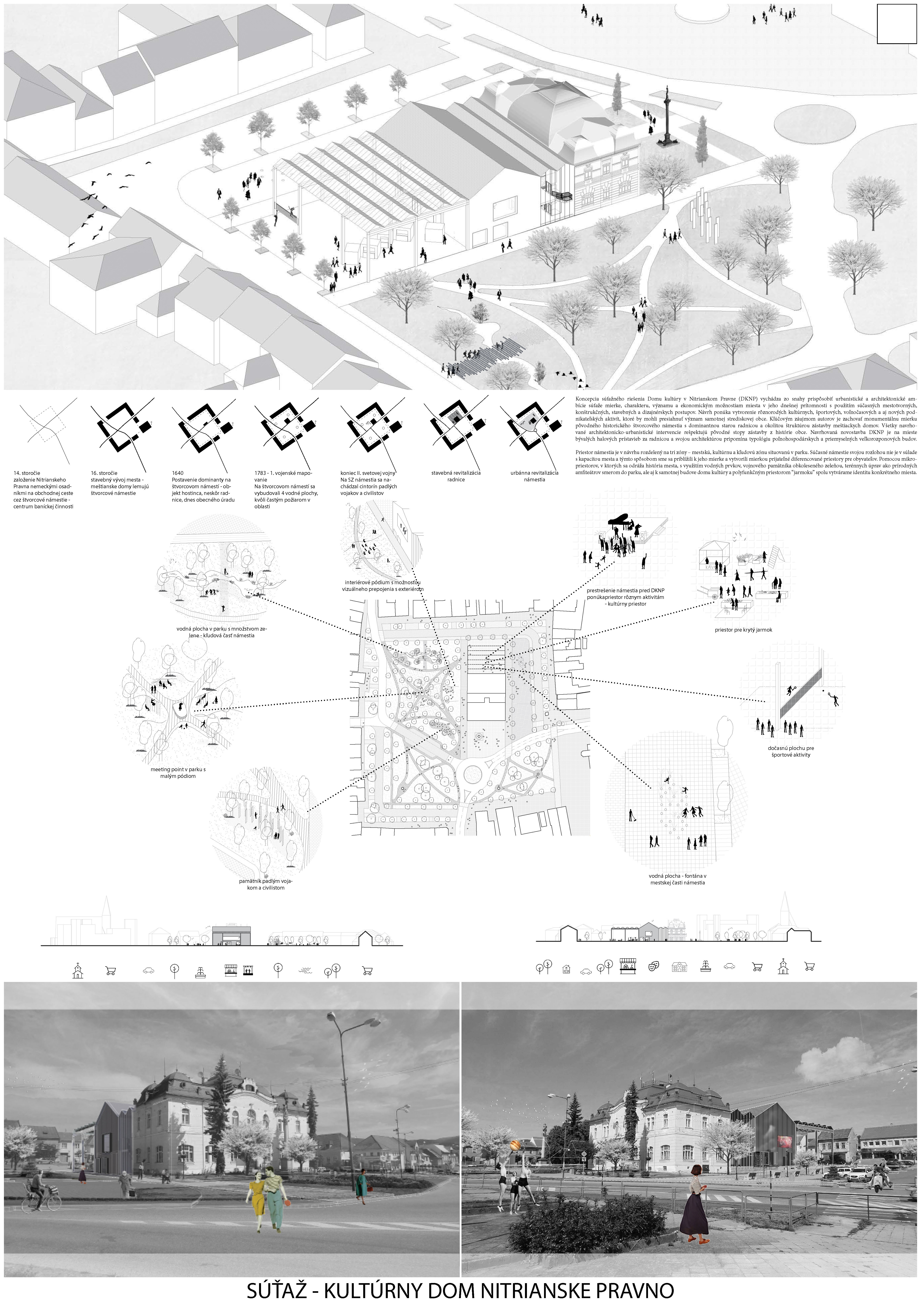 Obec Nitrianske Pravno koncom júna vyhlásila verejnú anonymnú architektonickú súťaž na návrh budovy kultúrneho domu v lokalite námestia. Cieľom vyhlasovateľa bolo získať najlepší návrh architektonického riešenia budovy, ktorý prispeje k rozvoju spoločenského a športového života obce. Návrh mal zahŕňať aj úpravy priľahlých exteriérových priestorov na pozemkoch obce.