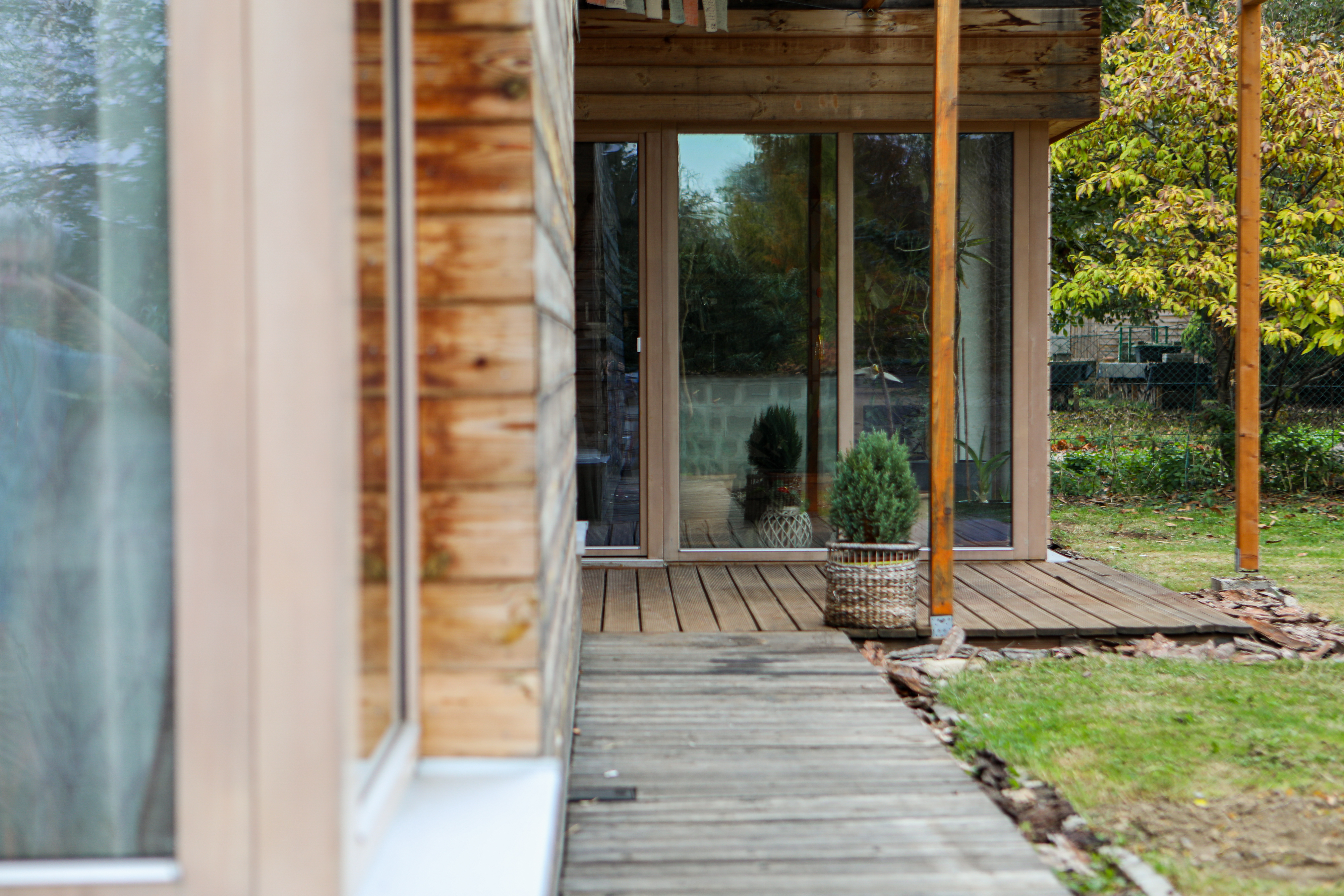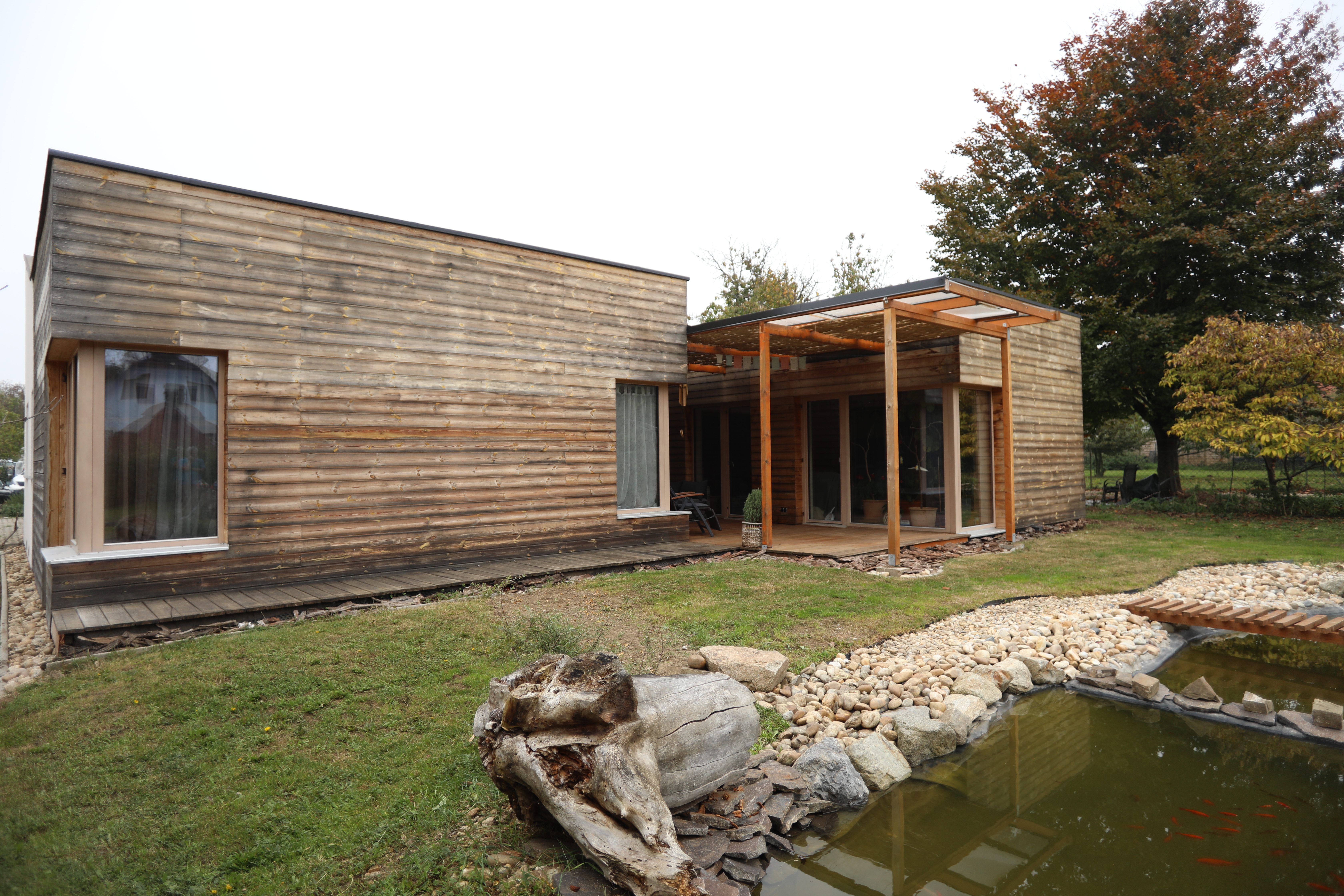 V blízkej obci hneď za hranicou na rakúskej strane sme navrhli príjemný drevodom pre sympatickú rodinu. Stavba je prízemná, obytná časť situovaná okolo malého južného átria. Dom na atypický pultové strechy s roznymi sklonmi. Hmota garáže odčlenená od hlavnej stavby. Teší nás, že sa domácim dobre býva.