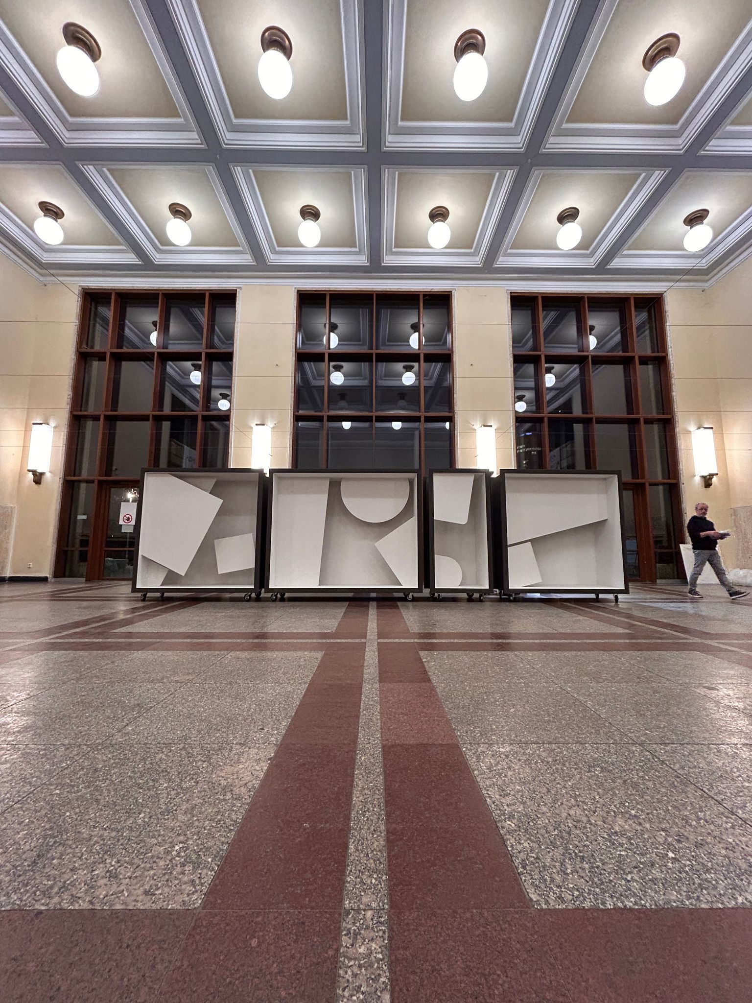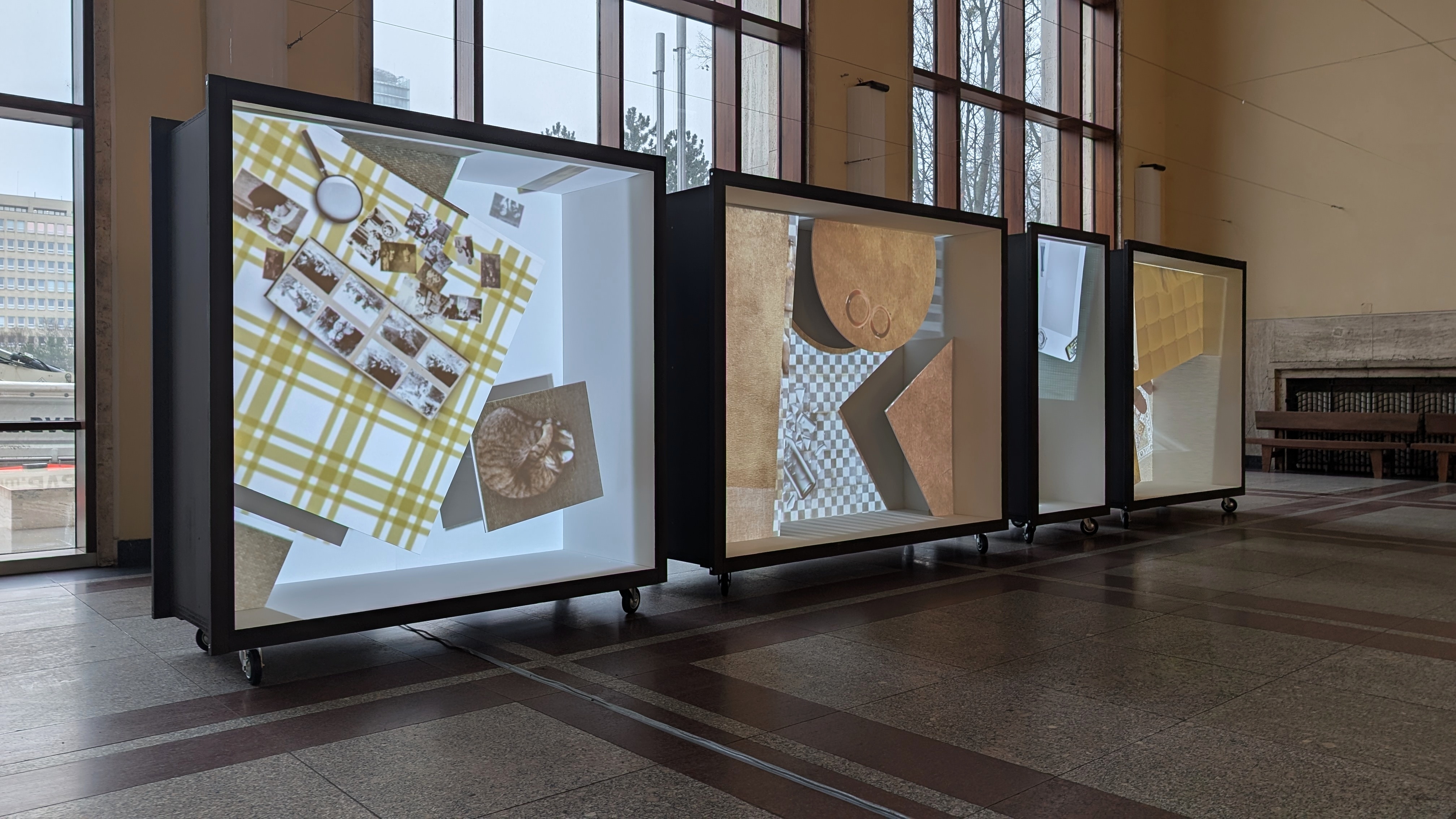 Výstava sleduje obyčajné situácie, ktoré tvoria neviditeľnú architektúru dňa. Obsah kubusov predstavuje fragmenty prežitých chvíľ banálne úkony, ktoré podľa Bachelarda tvoria „tiché komory pamäti“. Formálny jazyk koláží v kubusoch je zámerne jednoduchý, miestami až insitný je akoby skladačkou a moodboardom vytvorenými užívateľom.