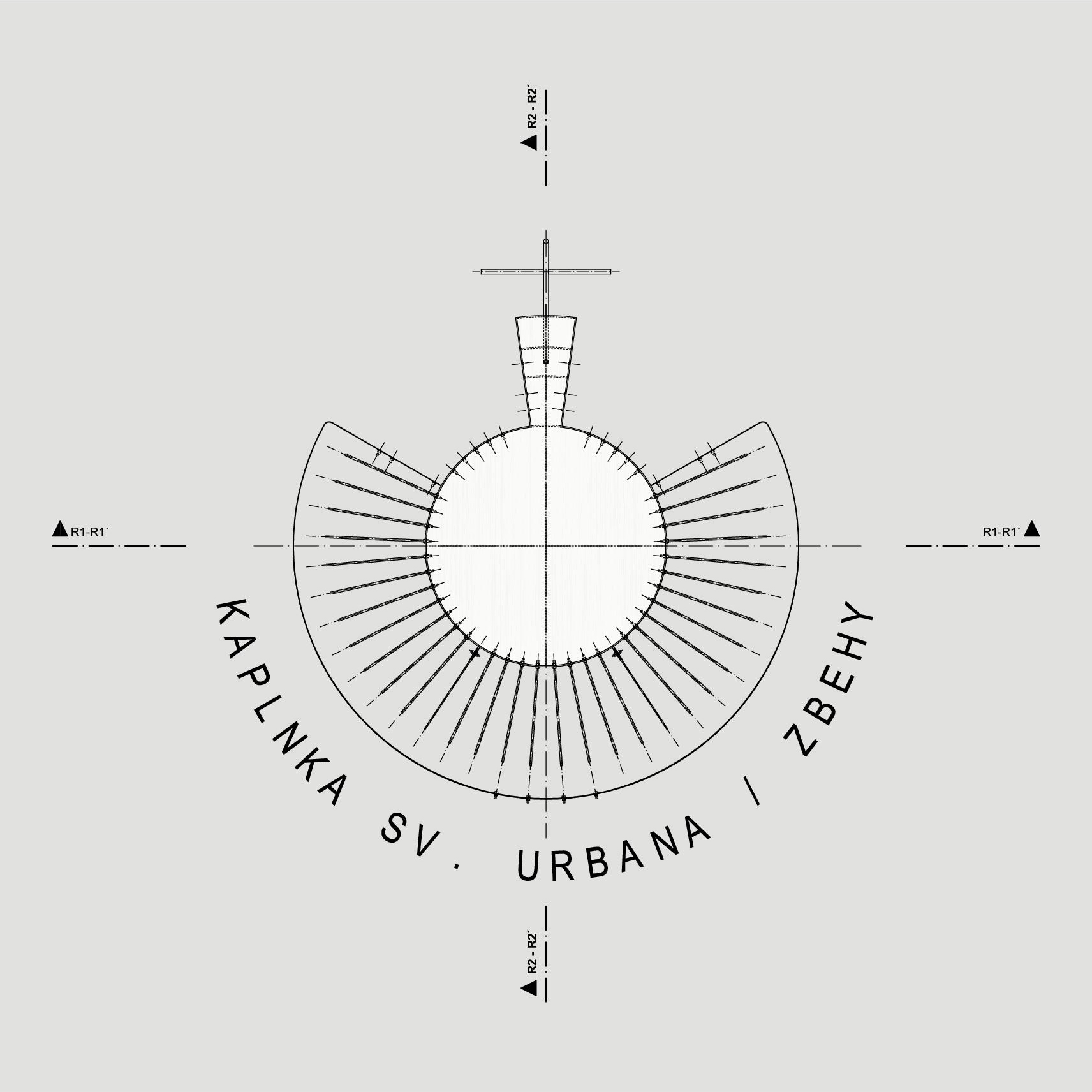Architektúra pretavenej idey ponúka priehľady do panoramatického obrazu historicky vyvinutej krajiny. Kruhová kompozícia stavby s priezormi lamiel „prešu“ otvára priestor rovnocenne do všetkých smerov. Formou rozširujúceho sa obráteného kužeľa sa čiastočne uvoľnený „strop“ kaplnky otvára k nebeskej vertikále, s umocňujúcim účinkom kríža. Zároveň vytvára intímnu náruč (objatie) pre práve prítomného človeka. Jednému veľká nie je, rodine nie je malá. Komorná atmosféra je znásobená skvelou akustikou. čIstota a vyrovnanosť zvuku sa cielene prejavuje v centrálnom bode priestoru kaplnky. Hlavná os kaplnky je orientovaná na vežu miestneho kostola povýšenia sv. Kríža, kde je dodnes uchovávaná jediná relikvia z pôvodnej kaplnky - obraz sv. Urbana. Práve tento artefakt bol podnetom k výstavbe tak, aby zaujal svoje pôvodné miesto v transpozičných priestorových vzťahoch. V novej kaplnke je reprodukcia obrazu sv. Urbana vyhotovená v skle (odkaz na vitráž) už ako reflexia na časy minulé, a vytvára metaforickú líniu pokračovania. Pred vstupom do kaplnky je osadený "kameň zbytočnej tiaže - nežiadúcej záťaže mysle". Spočíva na historickej stope - základoch pôvodnej starej kaplnky.