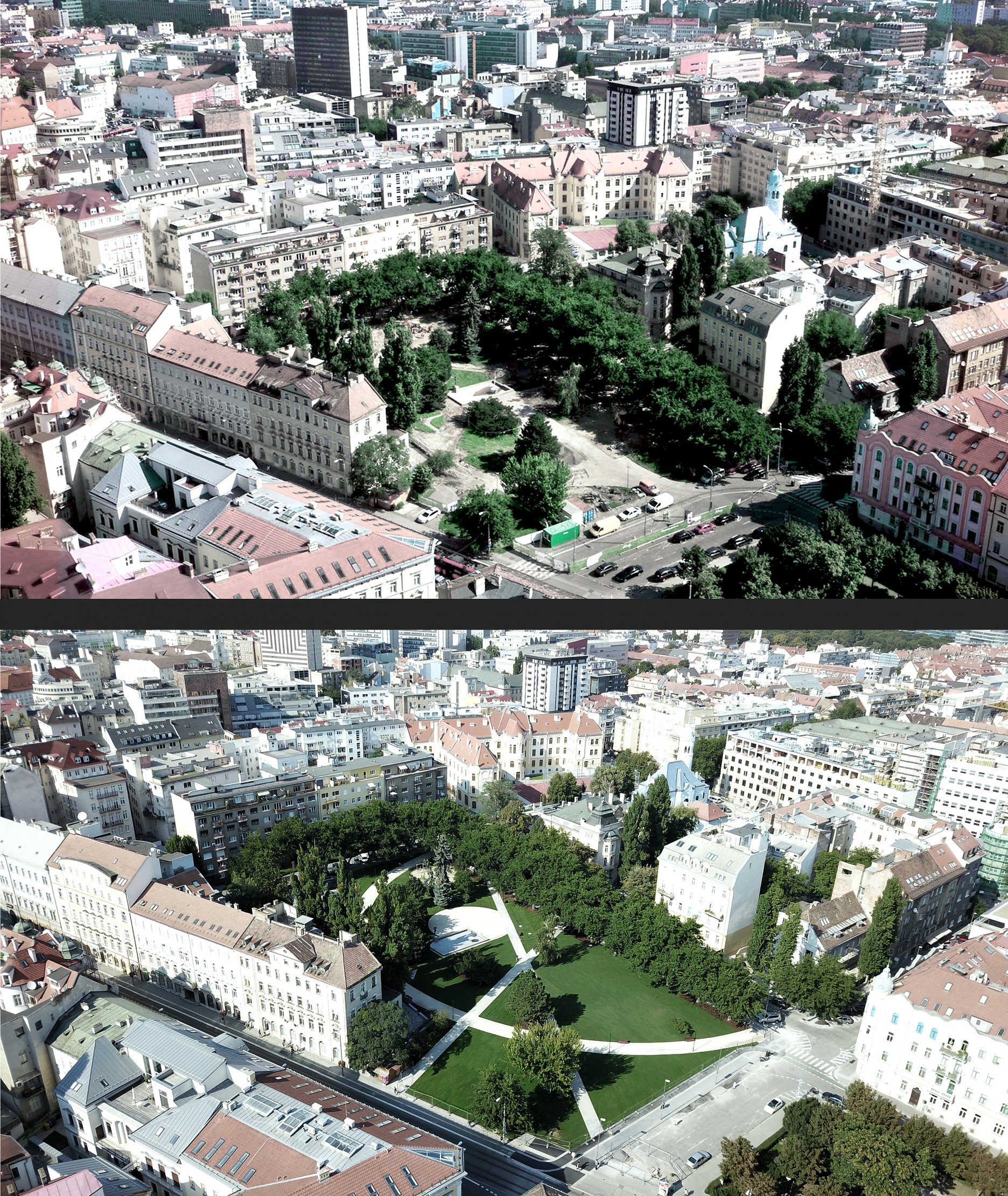 Na území vymedzenom ulicami Dobrovičova, Gajova a Alžbetínska s rozlohou bezmála osemtisíc metrov štvorcovýh zmizol asfalt, nahradila ho zeleň a dláždené plochy. V Starom meste vznikol nový kompaktný mestský park.