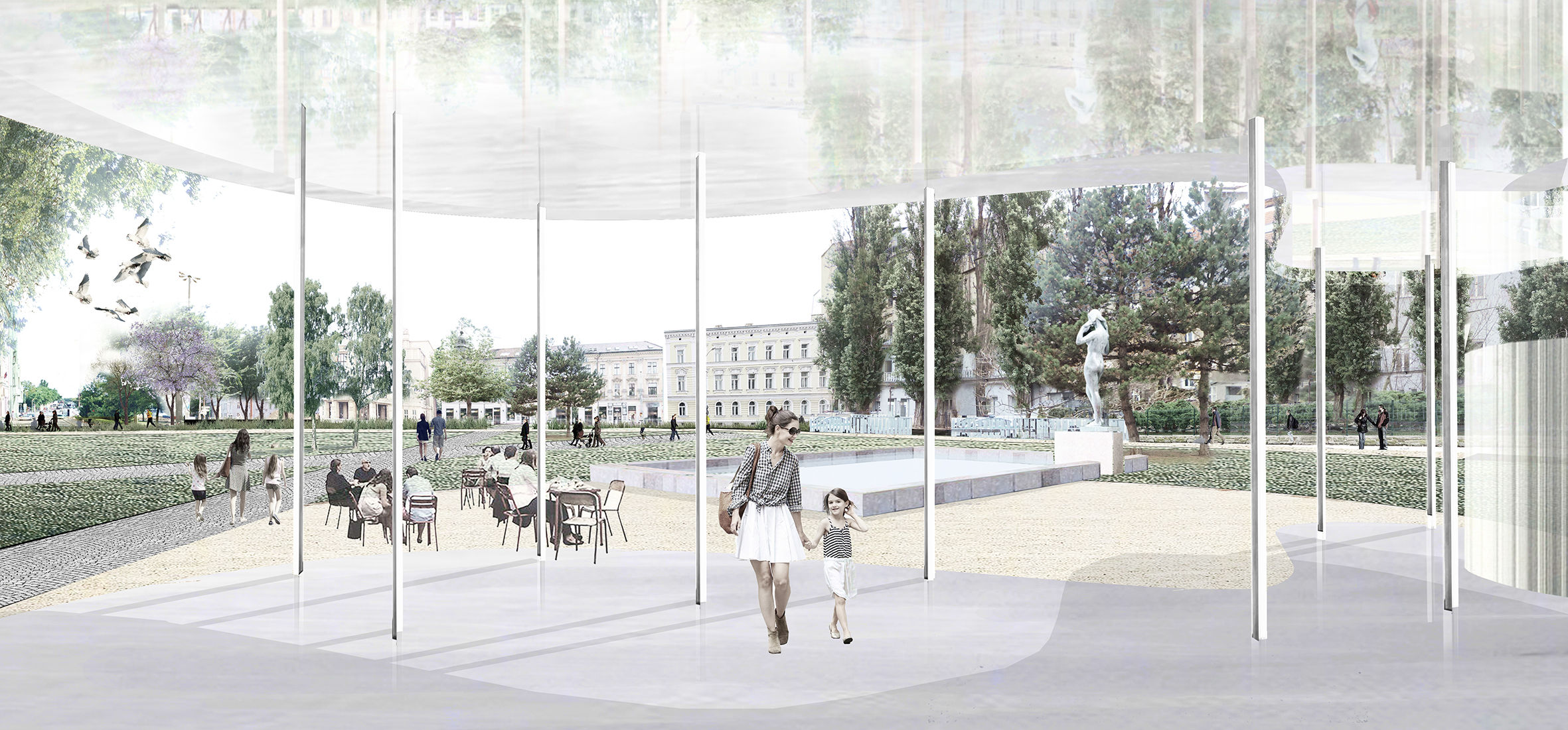 V centrálnom priestore parku ostala zachovaná pôvodná fontána, na ktorú nadväzuje priľahlá zhromažďovacia plocha. Práve na tomto mieste by mal v budúcnosti pribudnúť ľahký pavilón. Drobná stavba má slúžiť pre kultúrne podujatia, v lete v nej bude kaviareň.