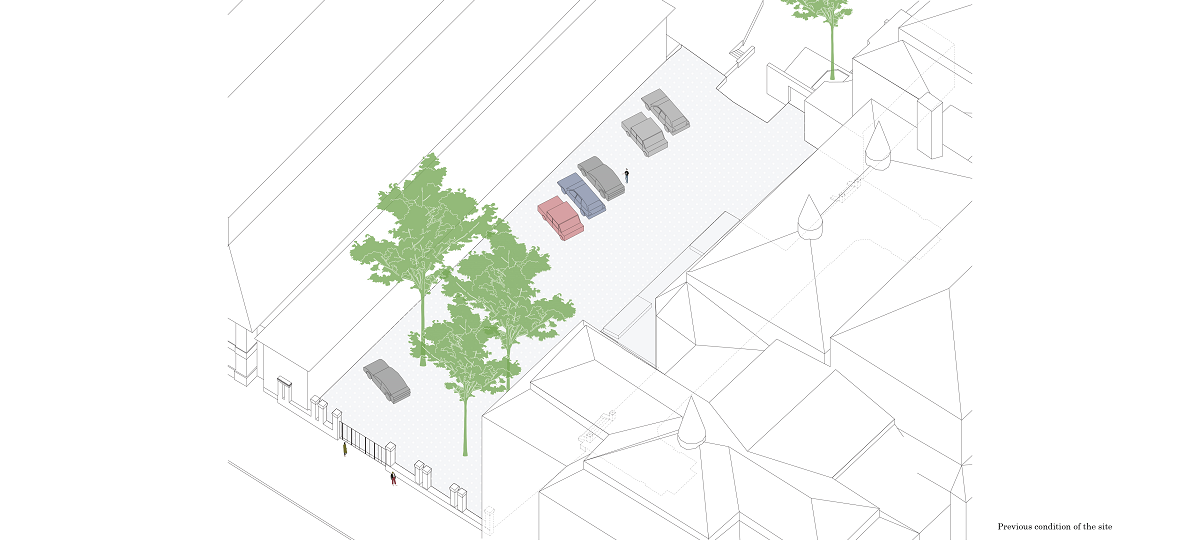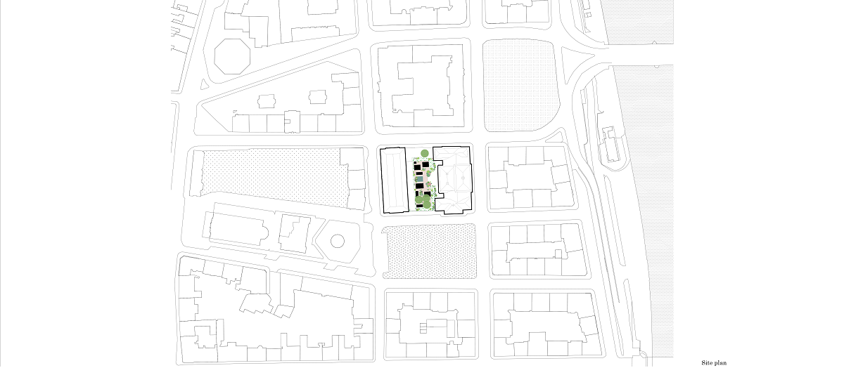 Market sa nachádza v susedstve objektov, ktoré patria medzi hodnotné príklady pražskej architektúry 20. storočia. Projekt nadväzuje na prítomné vrstvy. Analýza histórie lokality bola preto nevyhnutnou súčasťou tvorivého procesu. Až donedávna bol pozemok využívaný ako parkovisko a servisný vchod, ukrytý medzi bývalou tržnicou a smíchovským Národným domom. Pôvodne sa na tomto mieste nachádzala botanická záhrada a vonkajšia reštaurácia, vymedzená pravouhlým rastrom stromov. Celé okolie s parkovými plochami a jednoduchým prístupom k vltavskému nábrežiu bývalo vyhľadávaným miestom pre rekreáciu. Práve botanická záhrada dominovala celej štvrti.