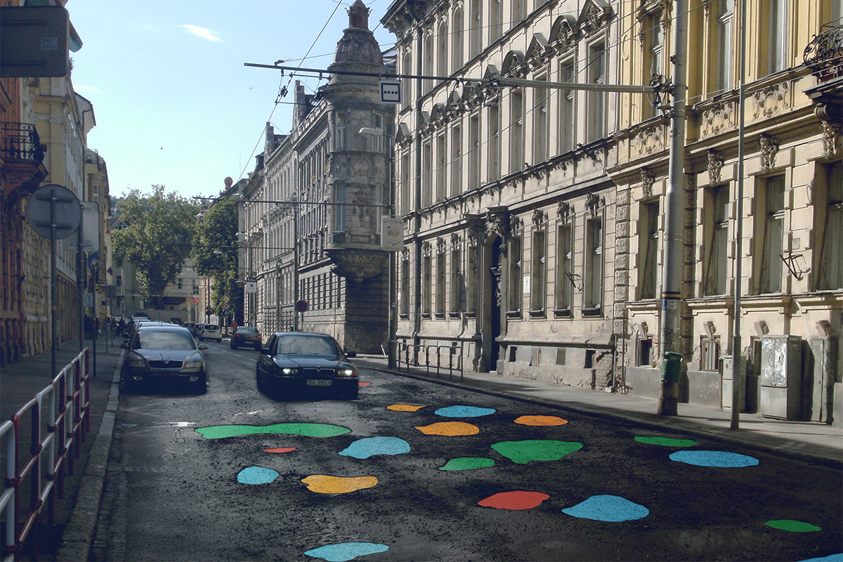 Navrhujeme kampaň pre politické strany, nezávislé subjekty i záujmové skupiny z širokého farebného spektra. Vyplniť dieru, škáru, prasklinu, medzeru v meste „farebnou hmotou”.