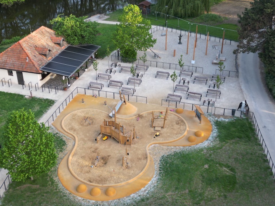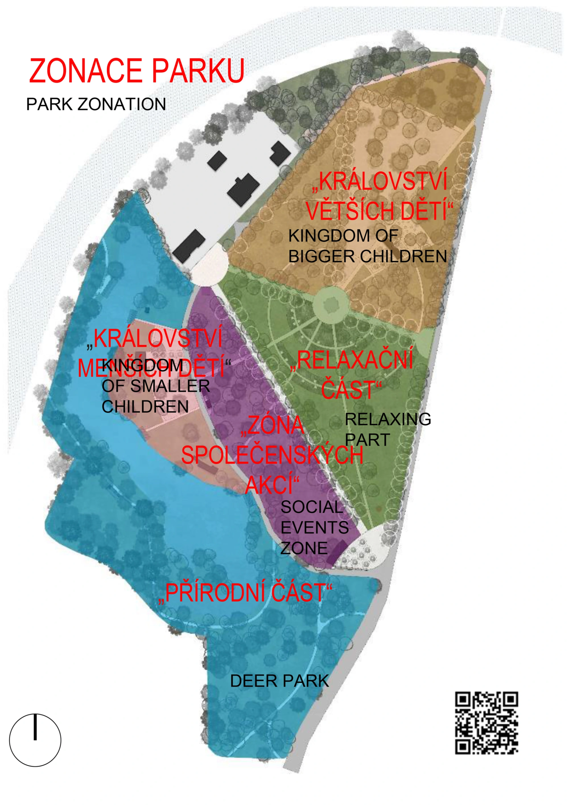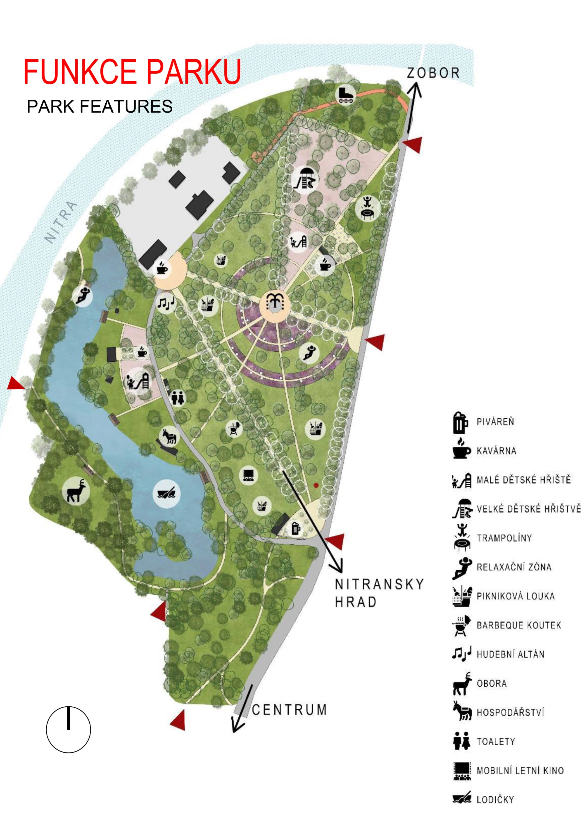 Ateliér Krejčiříkovi nadviazal na pôvodnú kompozičnú kostru parku a doplnil ju o prehľadný systém chodníkov, nové funkčné zóny a prácu s modro-zelenou infraštruktúrou. Úpravy prinášajú priestor pre detské hry, šport, komunitné podujatia aj kľudný pobyt pri vode a medzi trvalkovými záhonmi, pričom zachovaná zostáva aj historická vrstva parku vrátane Žabej fontány a chovu zveri...