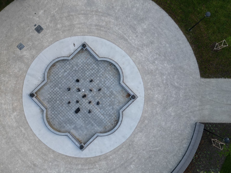 Do centra s fontánou Žabka sme vložili nový prvok v podobe špirály ciest, ktorá sa rozvíja od stredu parku. Špirála nám umožnila vložiť do parku oddychový program. V trvalkových záhonoch okolo cesty sú lavičky slúžiace na oddych počas športovania.