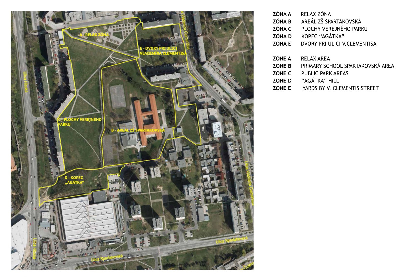 Areál nesie svoje meno podľa kopca Agátka, ktorý sa nachádza v juhozápadnej časti riešeného územia, v bezprostrednej blízkosti zimného štadióna a OC Aréna. Súťaži predchádzalo príkladné participatívne plánovanie s občanmi, vďaka ktorému sa vytvorili podmienky, ktoré boli následne zapracované do súťažného zadania. Projekt je spoločným dielom mesta, autorov a obyvateľov.