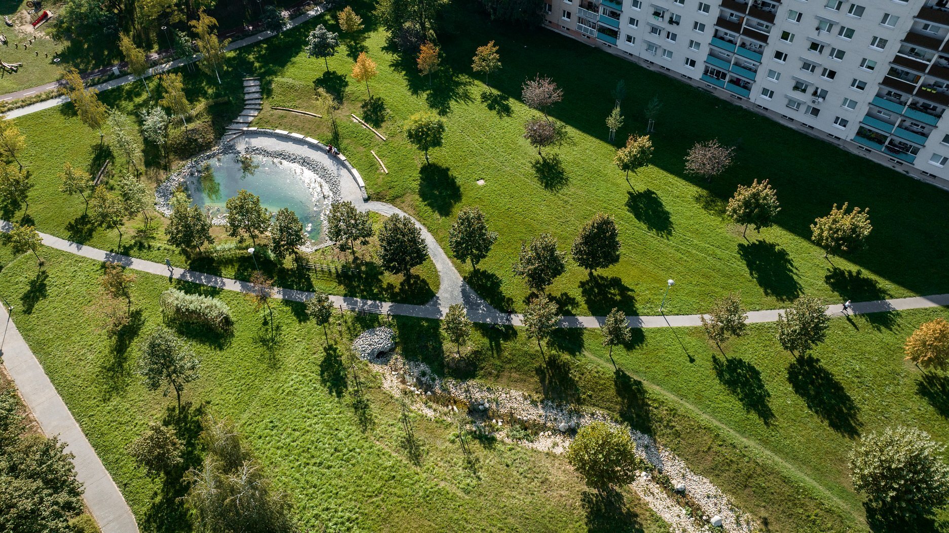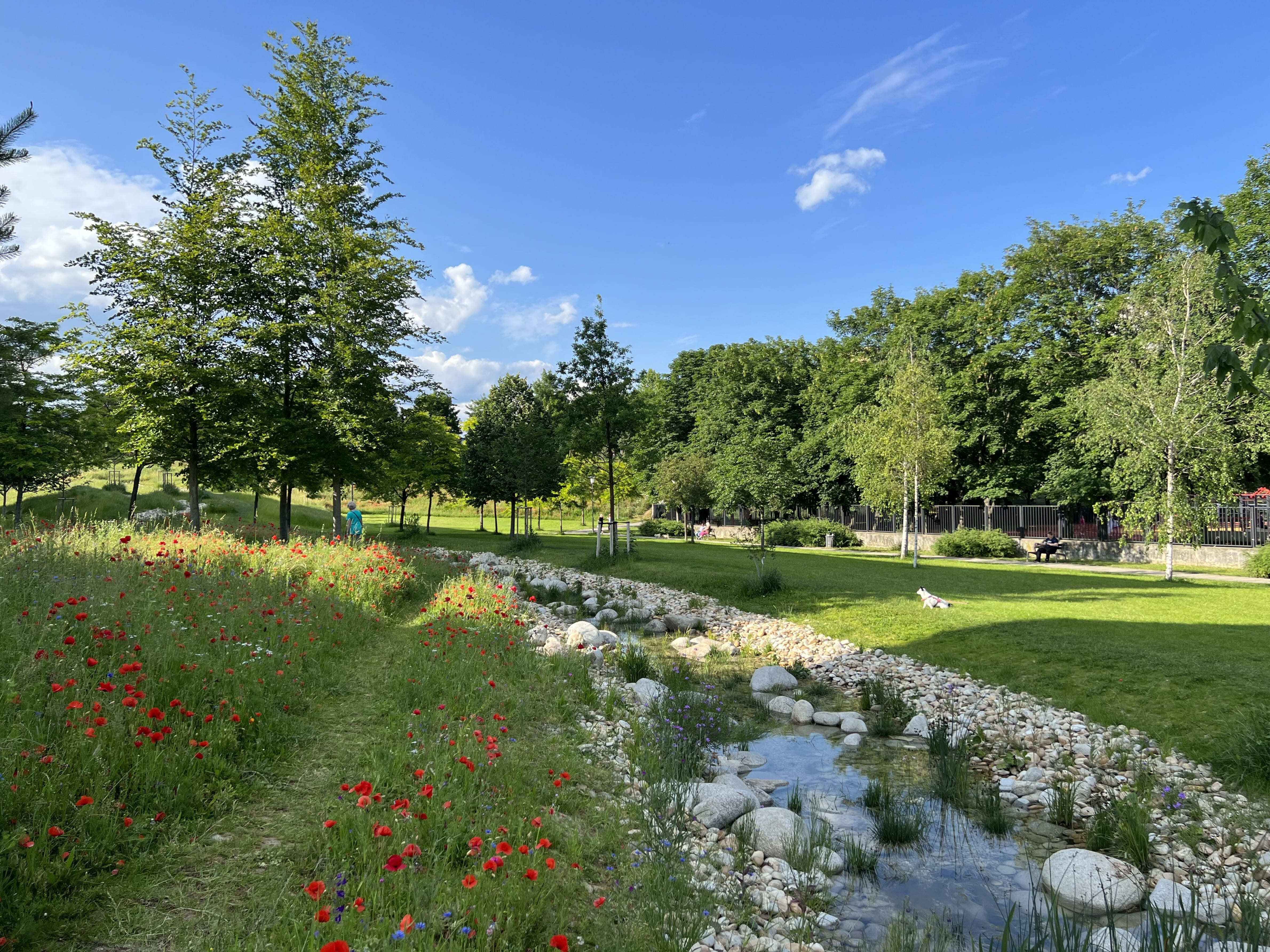 Územie bolo obohatené o kvetinové lúky s upraveným režimom kosenia, čím vznikli „pobytové lúky“ ako alternatíva k formálnym trávnikom. Okrem zlepšenia mikroklímy a vodozádržnej funkcie vodného toku projekt prispel aj k zvýšeniu biodiverzity a estetickej hodnoty priestoru.