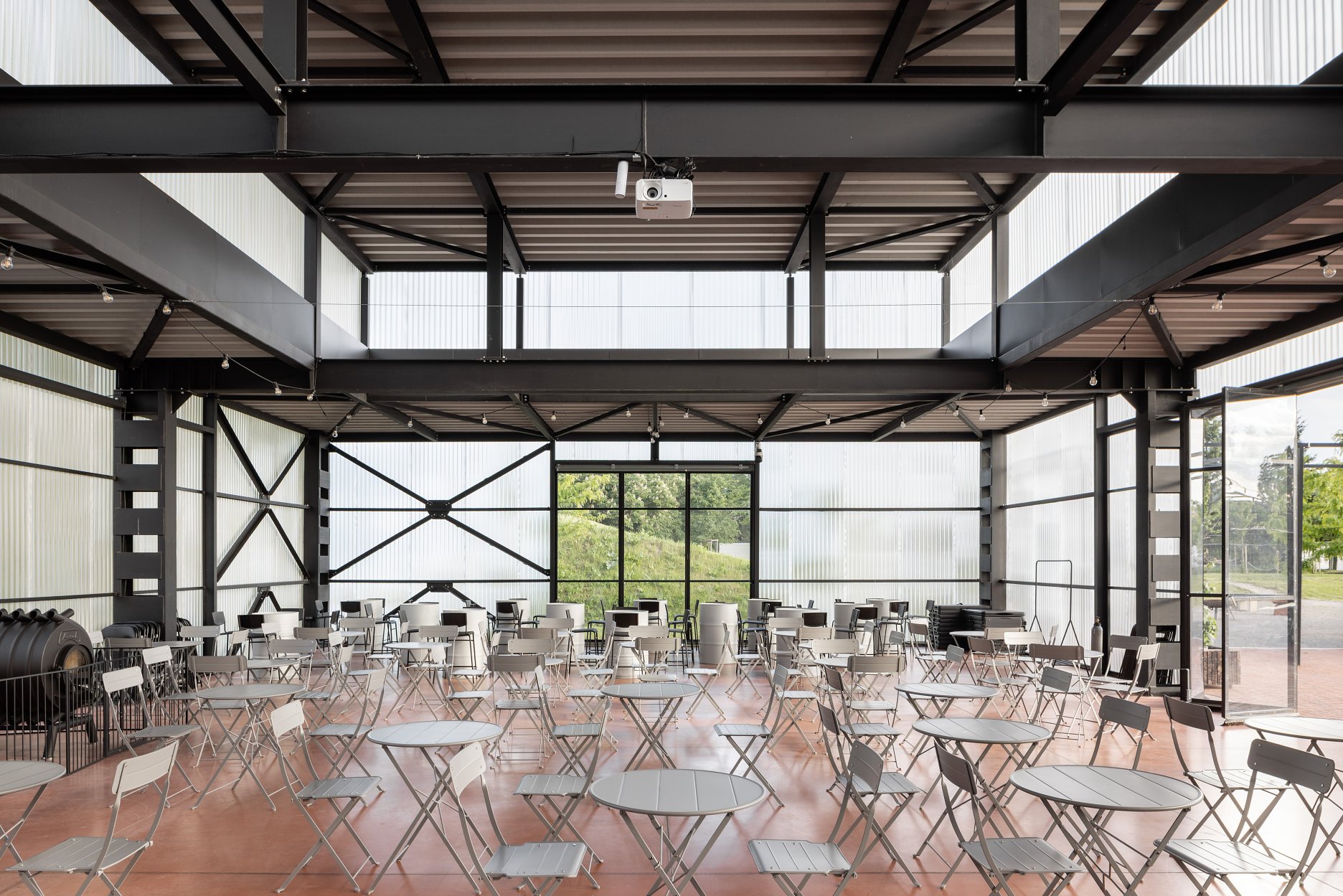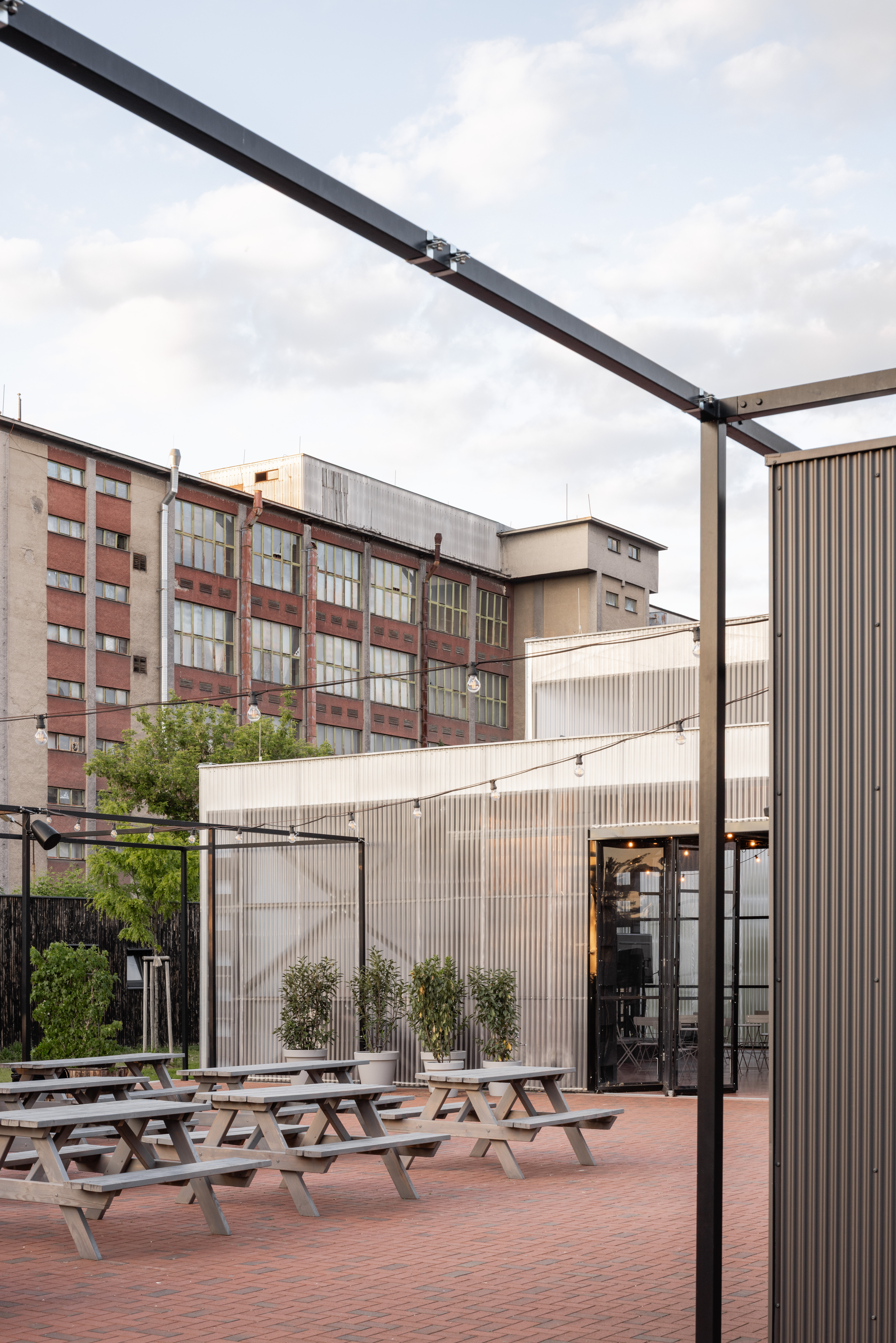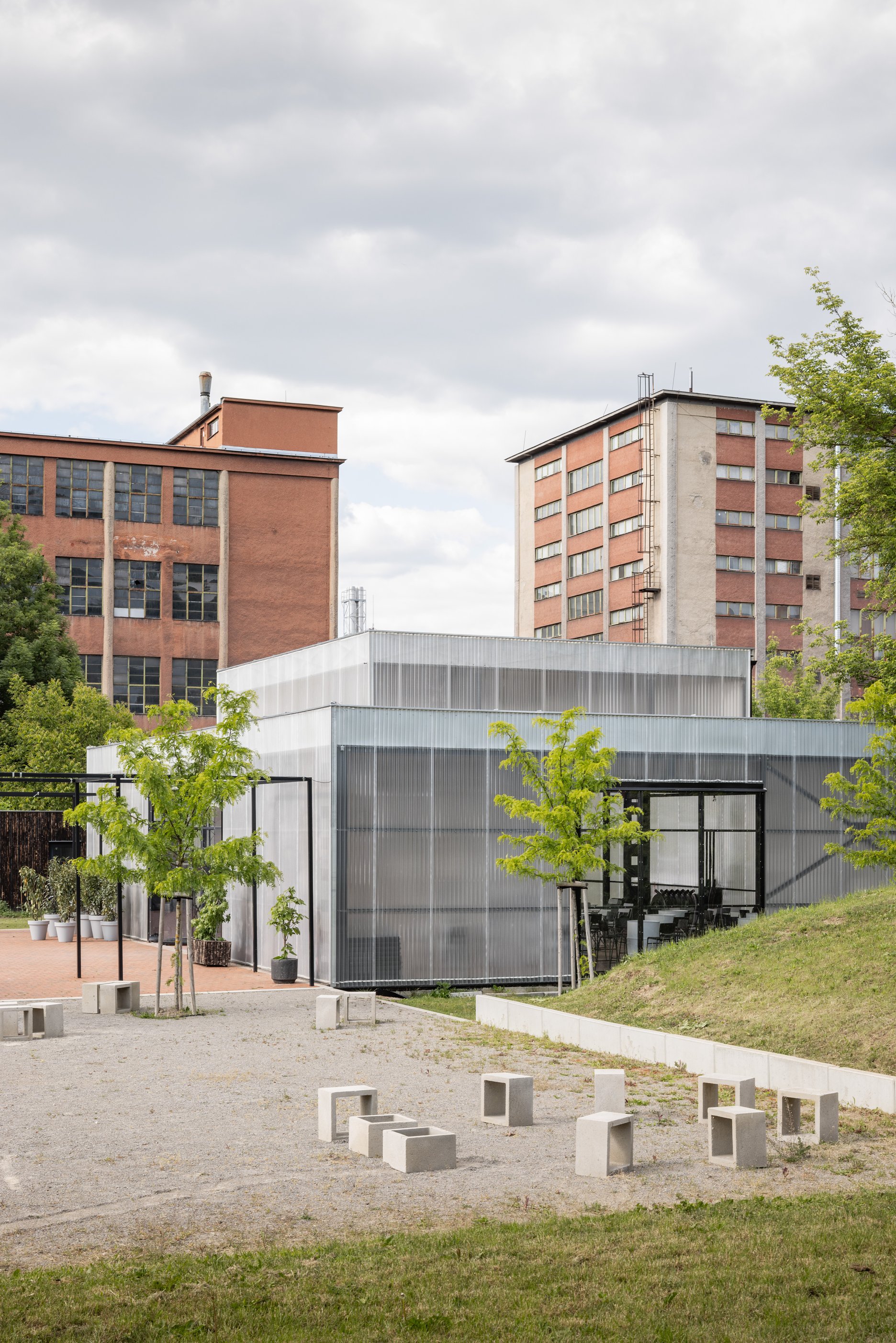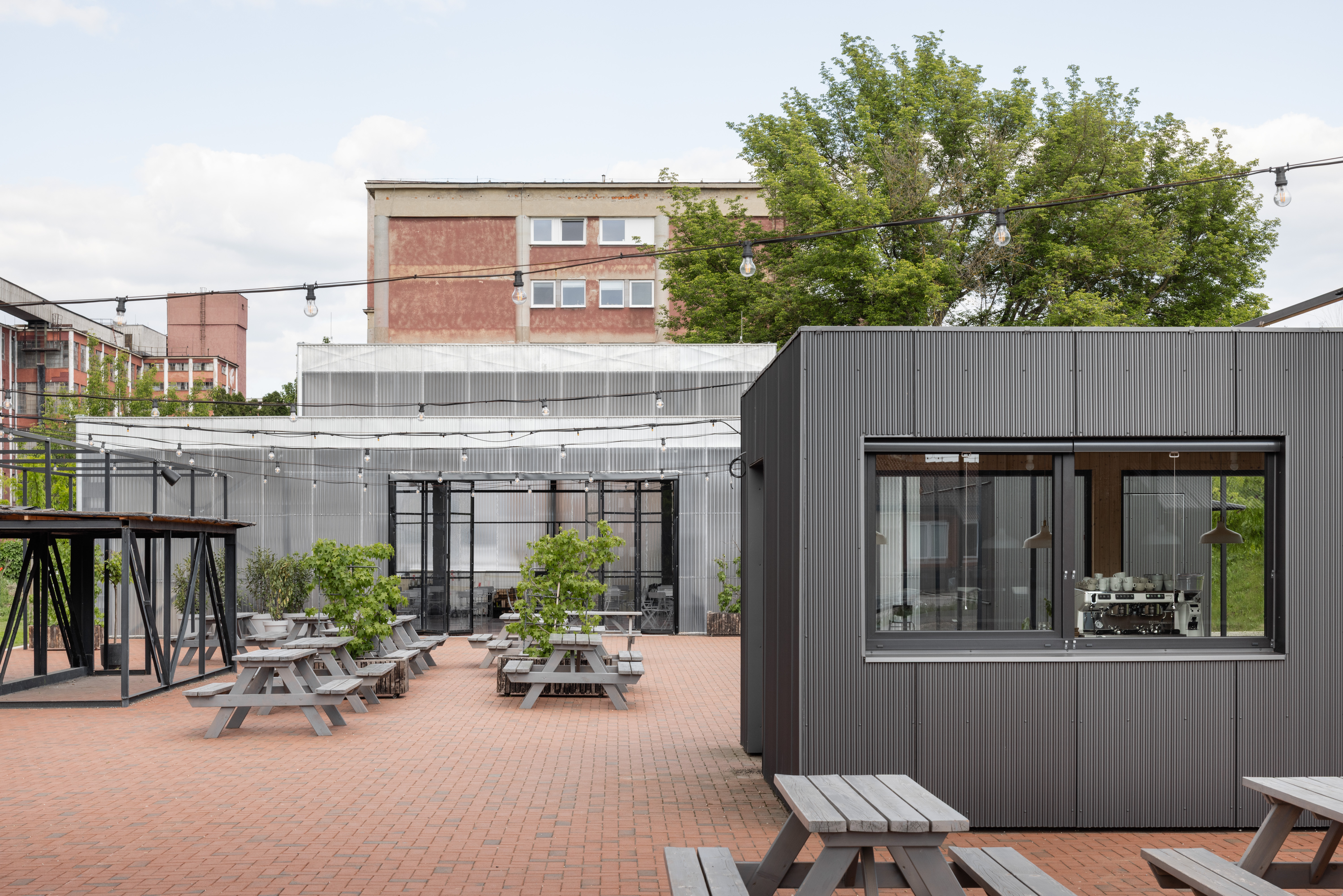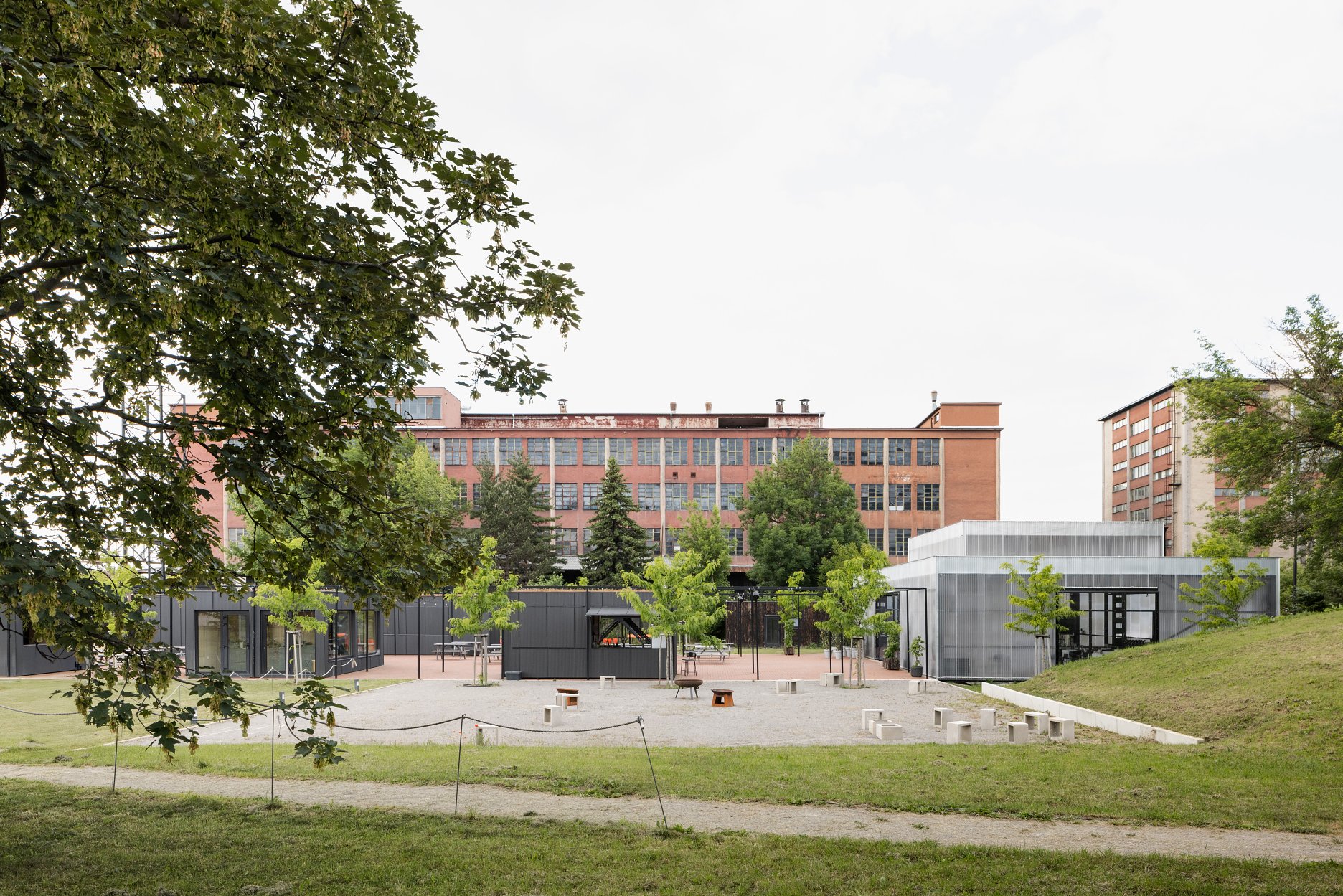 Projekt v areáli bývalých baťovských tovární v Partizánskom z dielne Hubinský atelier vracia do brownfieldu mestskosť prostredníctvom účelne navrhnutých prvkov drobnej architektúry.