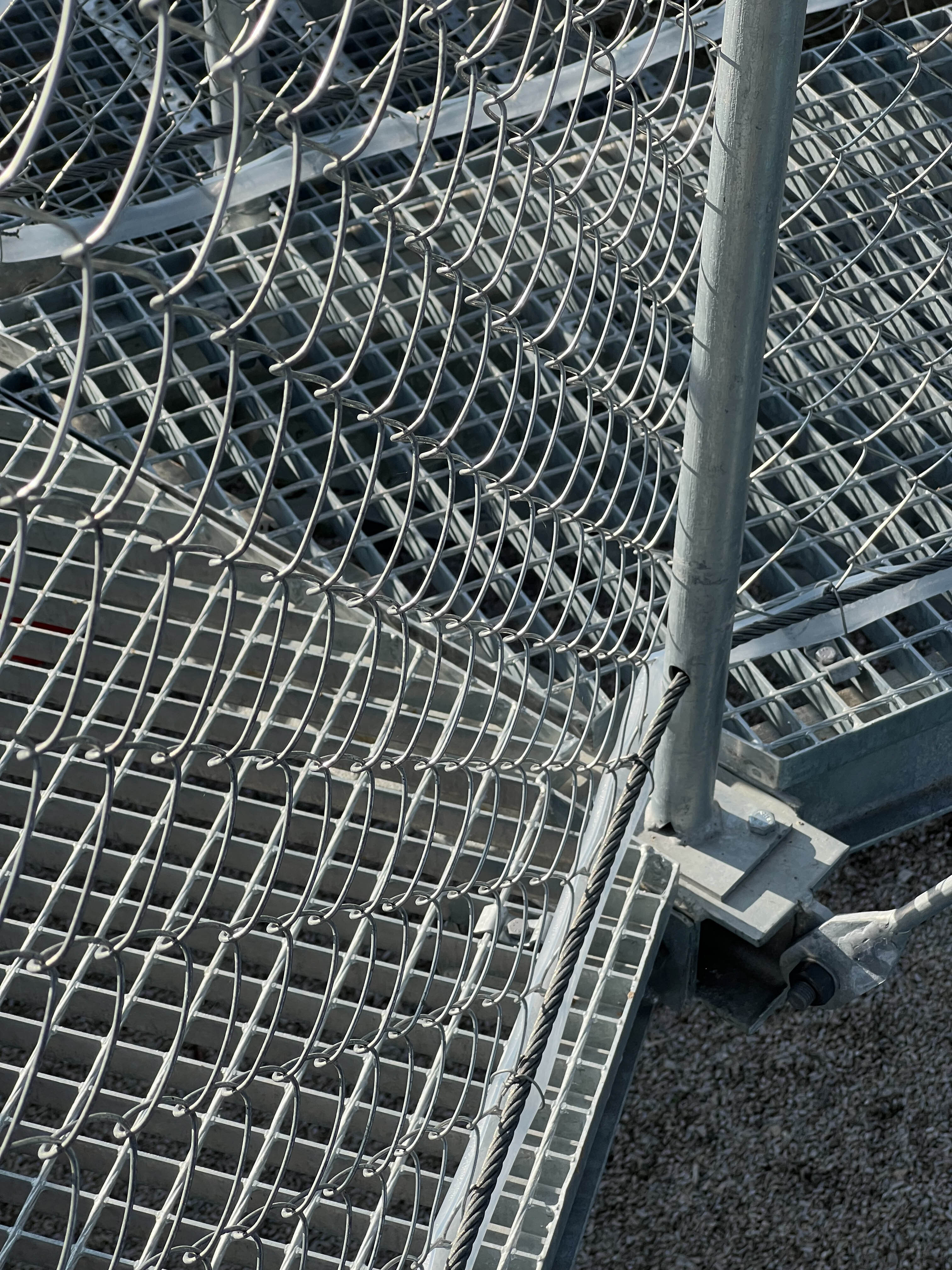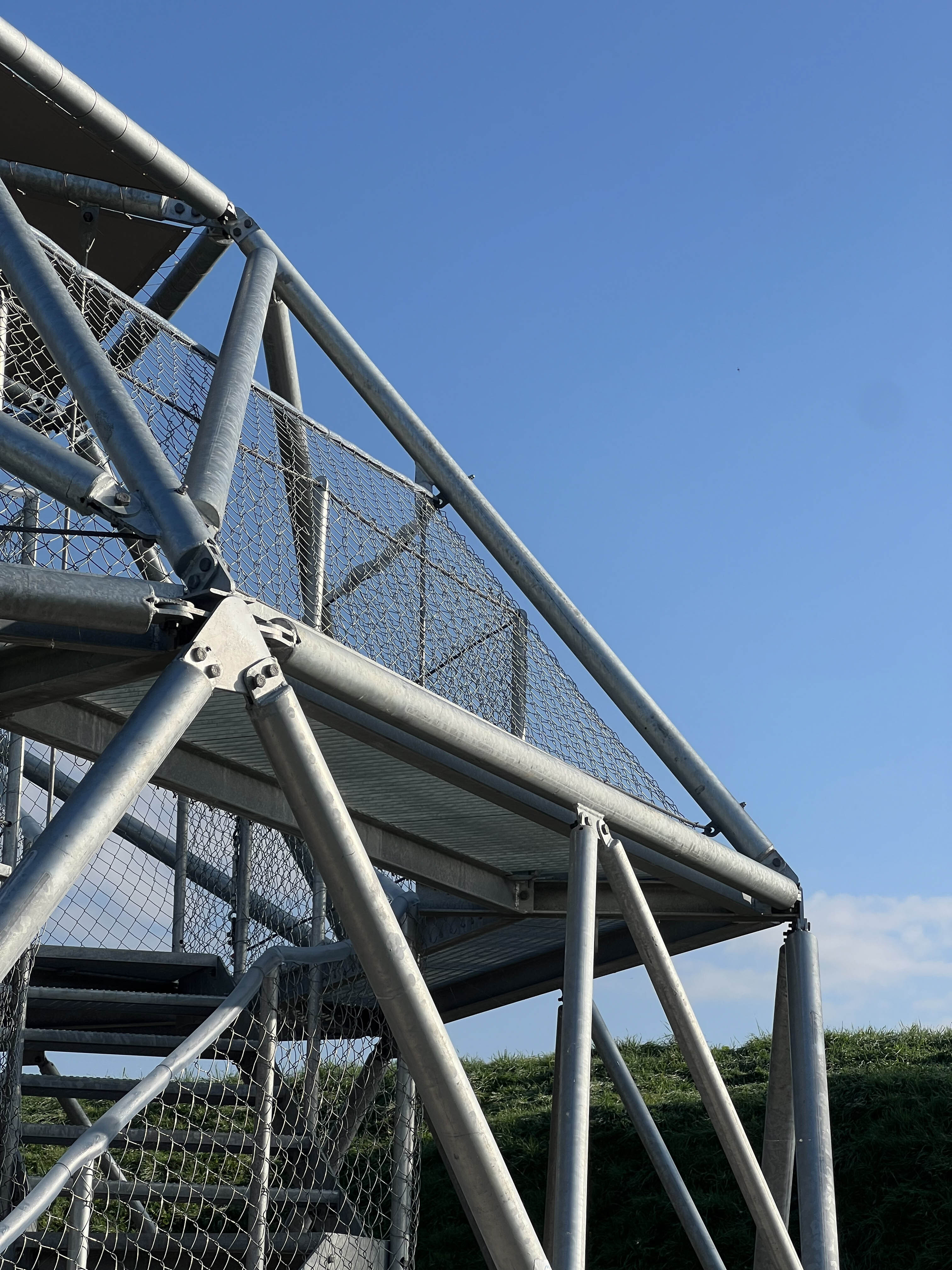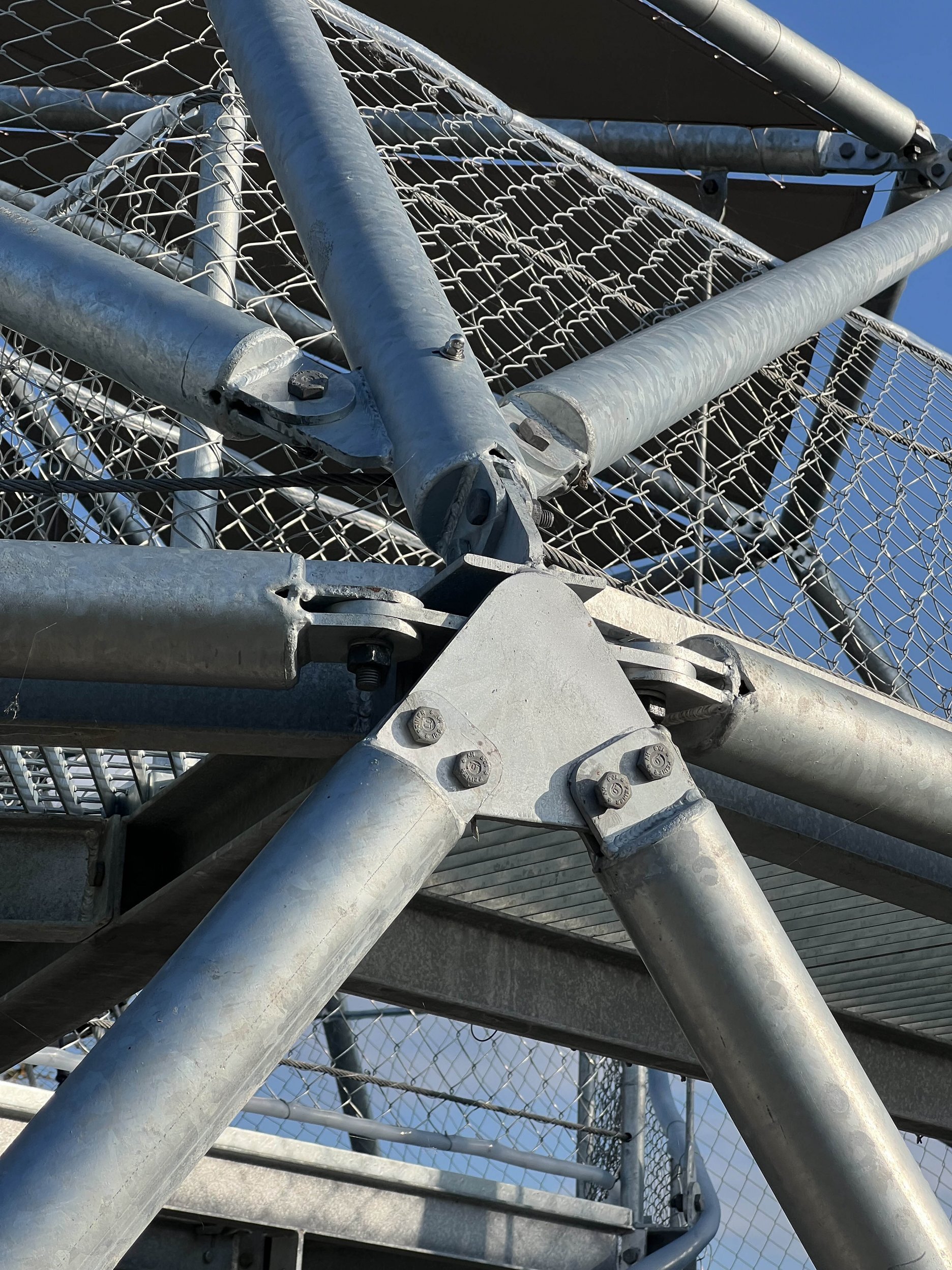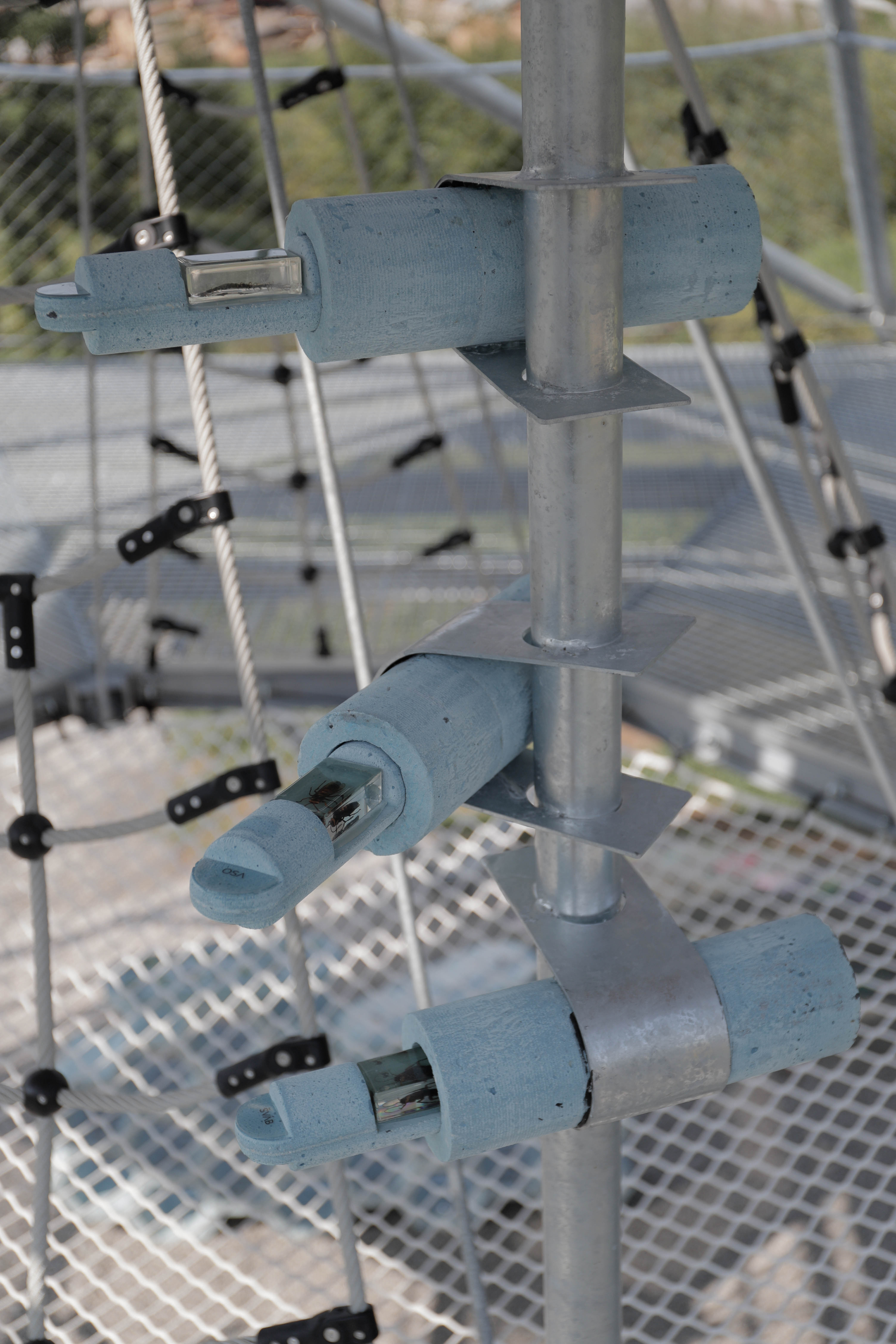 Pavilóny majú fasádu z nevyplnených lomených trojuholníkov, ktoré zodpovedajú exteriérovému charakteru prvkov. Konštrukcia a podlaha sú pozinkované, bez farebnej úpravy. Objekty sú vybavené oceľovým schodiskom a šmykľavkou. Celá konštrukcia je postavená na železobetónových pätkách s uzemnením.