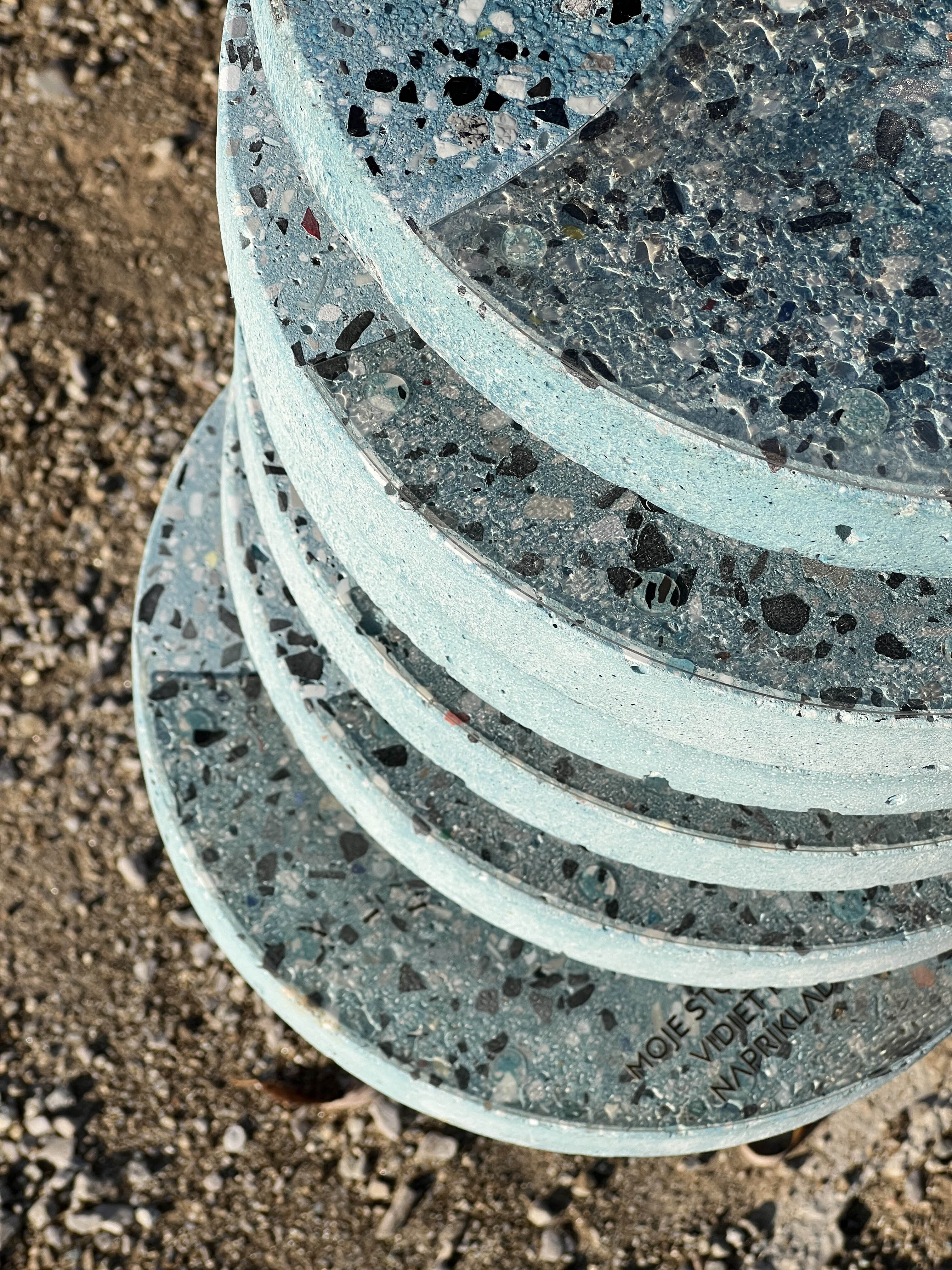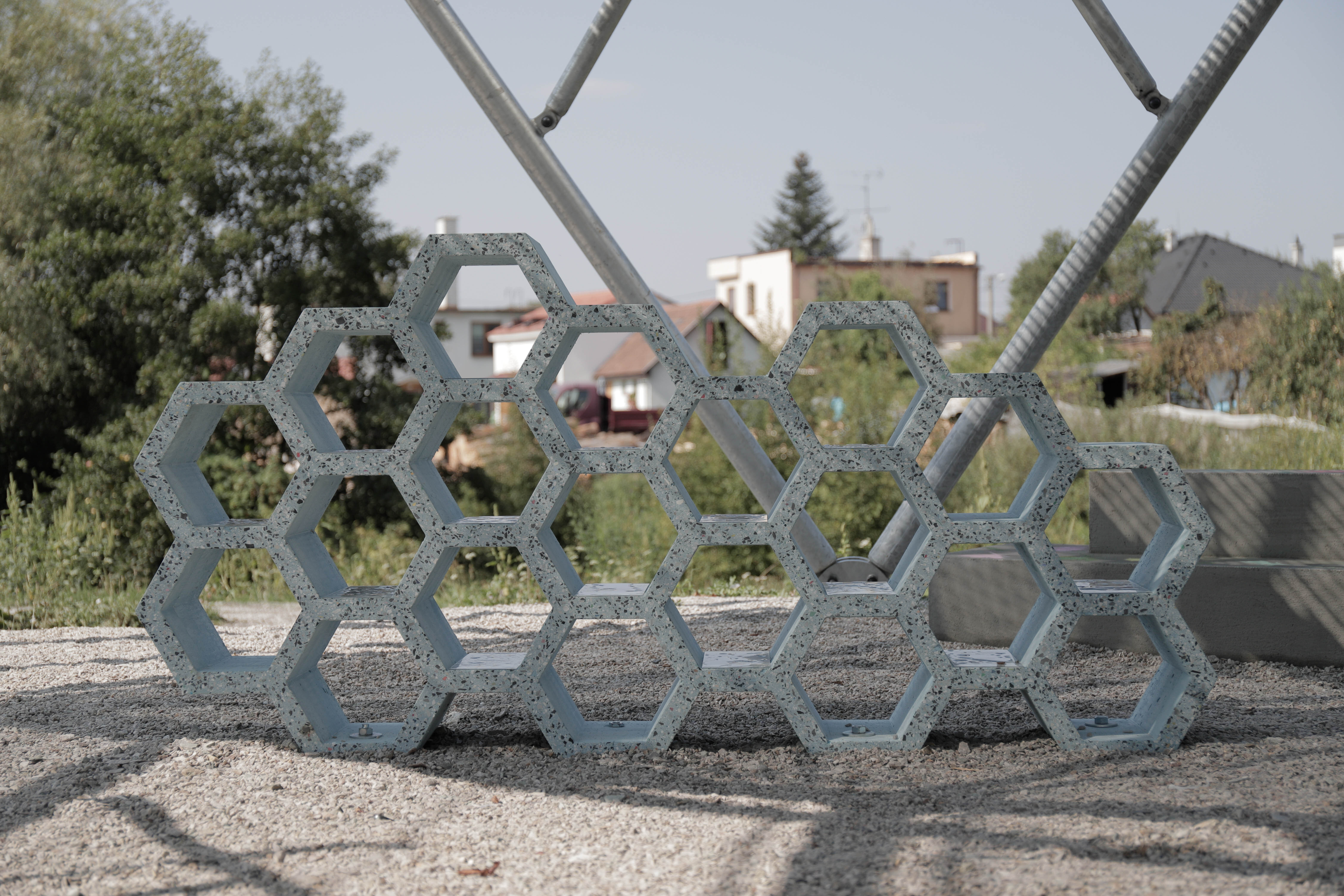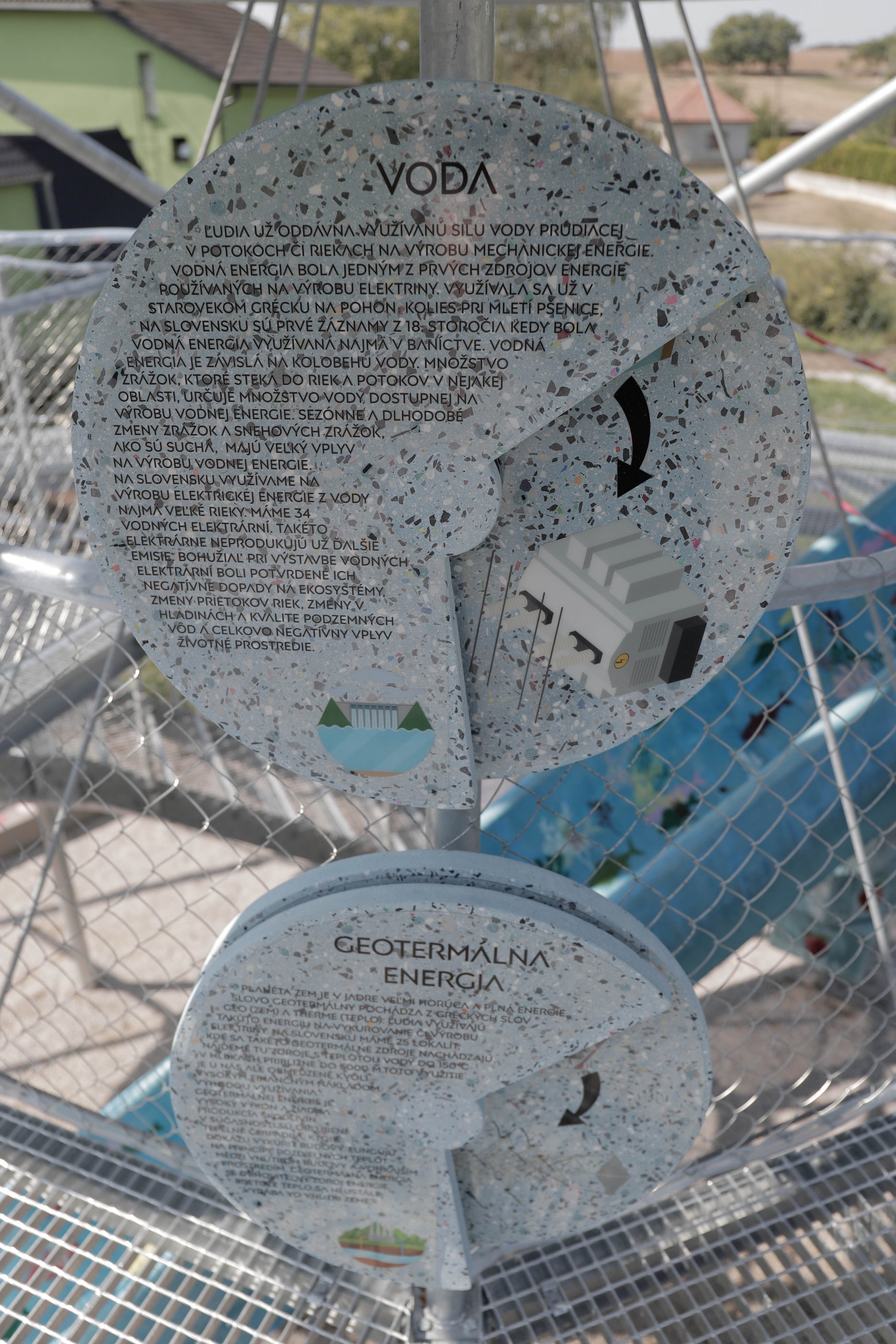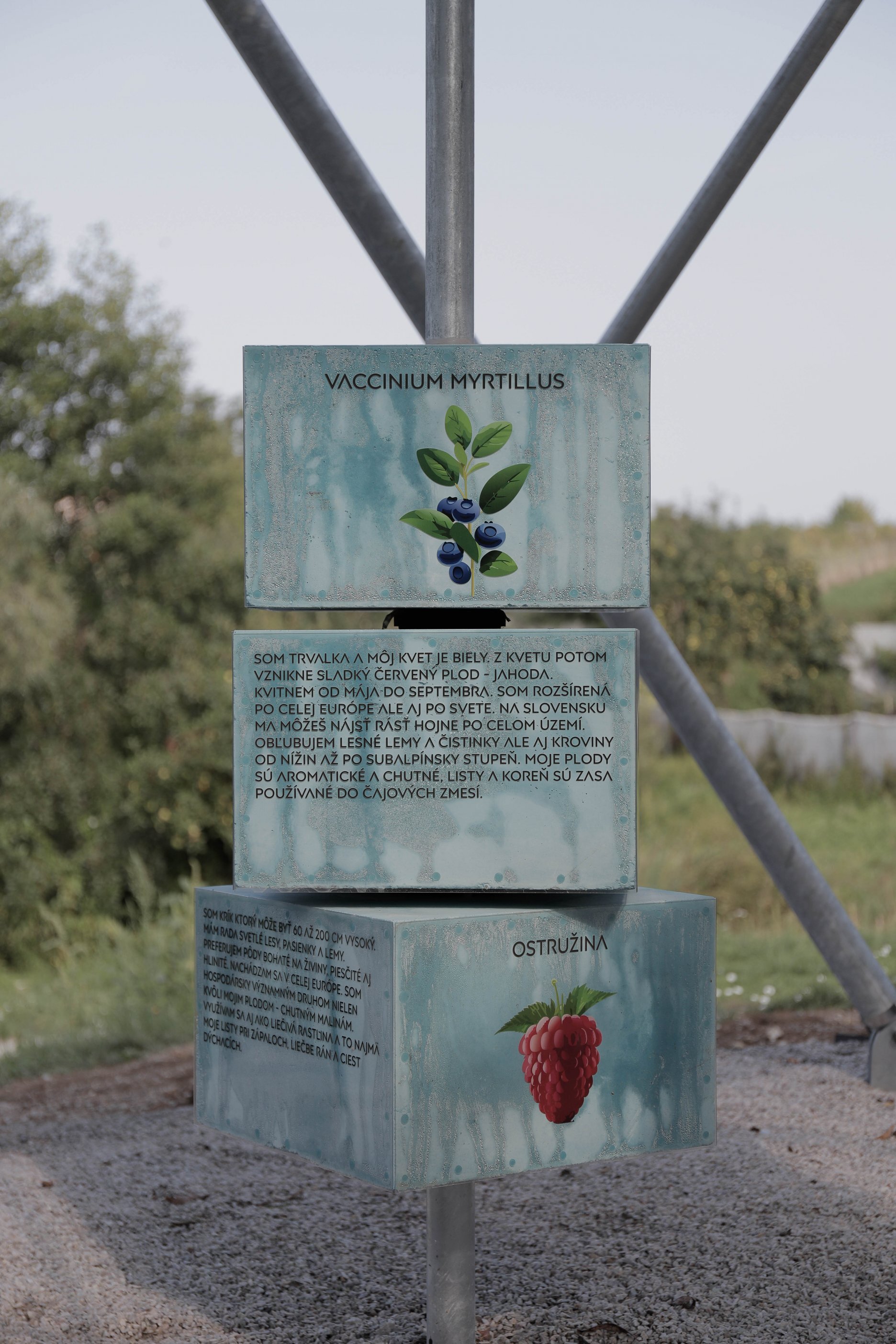 Atypické náučné prvky sú vyrobené z odľahčeného plast-betónu, ktorý je plne recyklovateľný. Návrh počíta s možnosťou výmeny aplikovanej grafiky tak, aby pavilóny nestratil aktuálnosť v rámci stále sa rozvíjajúcej environmentálnej témy.