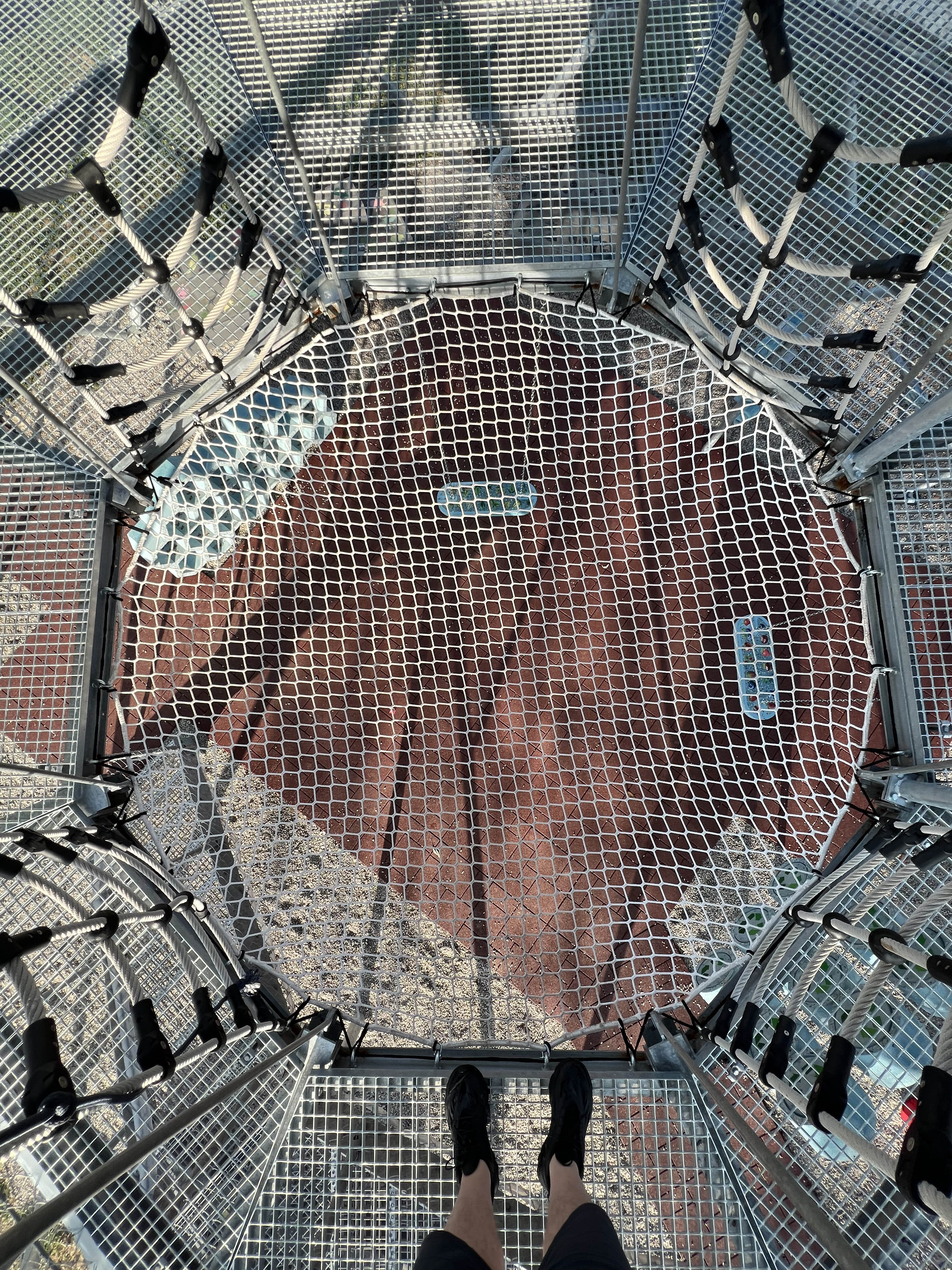 Exteriérové plochy boli ponechané bez úpravy, aby sa nenarušila miestna fauna a flóra, vzhľadom na blízkosť mokrade. Komunikácie sú mlatového charakteru, v pavilónoch doplnené o gumovú podlahu kvôli dopadovým plochám a bezpečnosti.