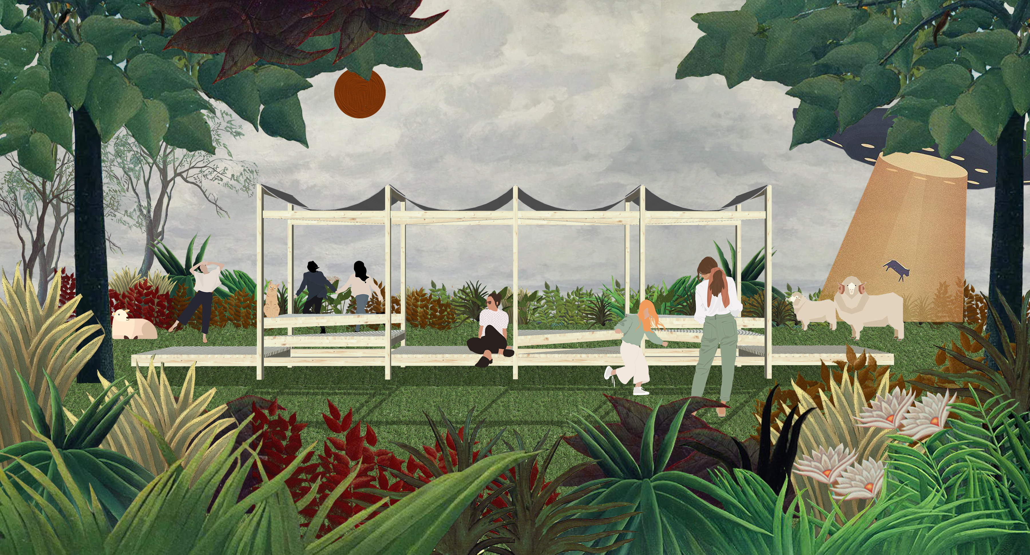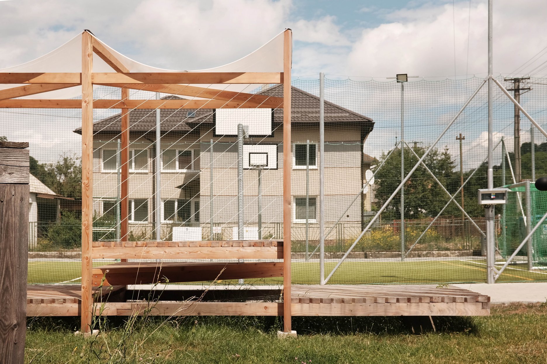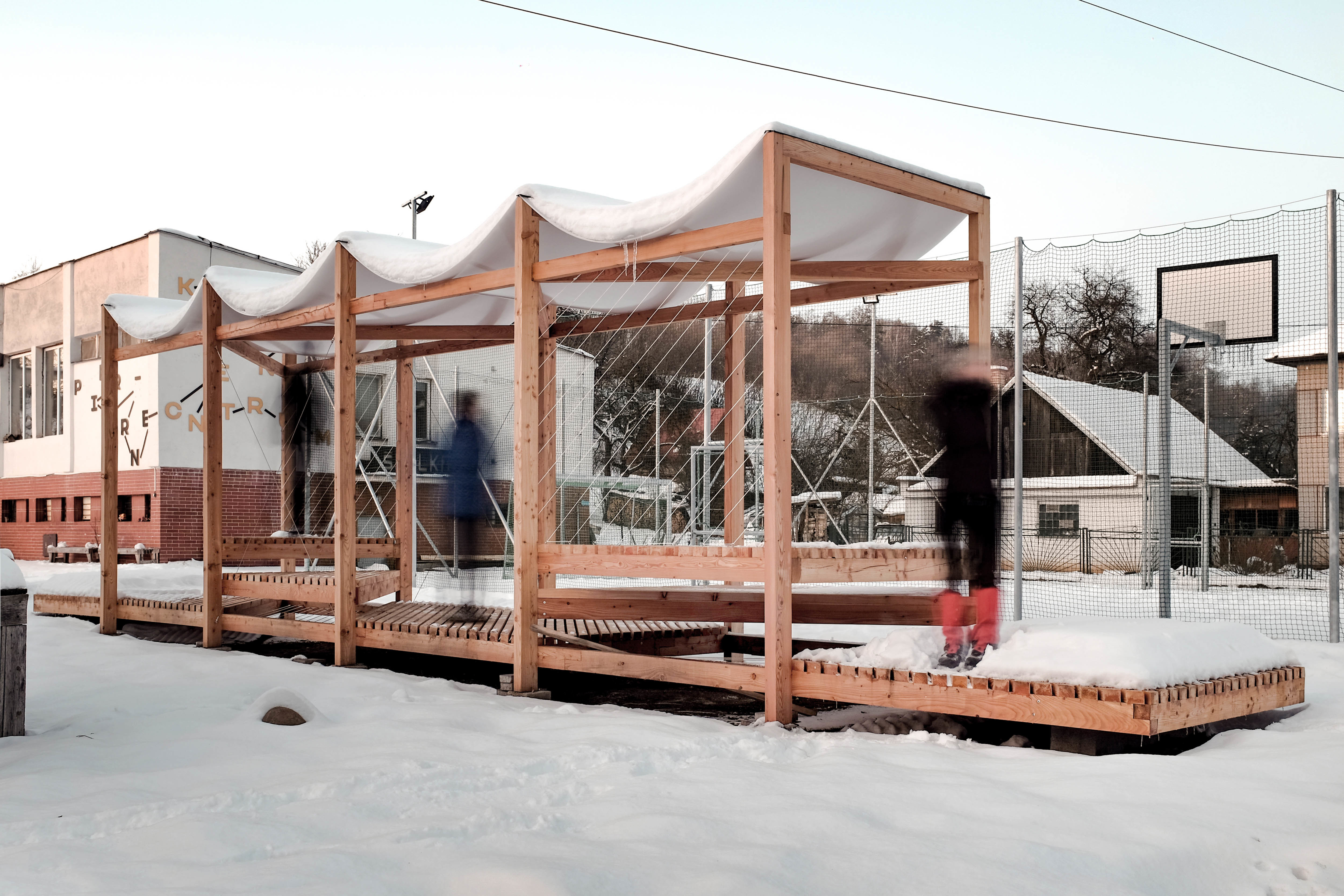 Objekt pavilónu vznikol v predpolí bývalej materskej školy, dnes už kultúrneho centra Škôlka, ktoré majú o.z. Periférne Centrá v dlhodobom prenájme. Požiadavka na vybudovanie pavilónu prišla z obecnej iniciatívy počas letnej rezidencie našeho ateliéru vrámci "Dielňa architektúry a dizajnu“ v kultúrnom centre Škôlka. Obecná požiadavka vyplývala z potreby vybudovania zázemia pre (predvolebne) budované obecné multifunkčné ihrisko v predpolí kultúrneho centra. Osadenie multifunkčného ihriska značne zmenšilo plochu, zmenilo vstupy a fungovanie areálu. Pavilón vznikol ako usmernenie verejného priestoru a vytvorenie neformálneho zázemia pre túto časť areálu.