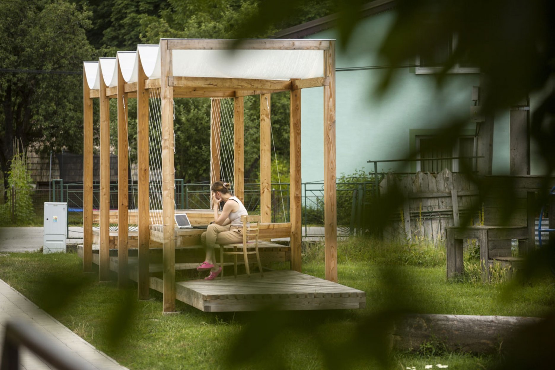 Drobná realizácia kolektívu Guča architektúry vznikla v rámci rezidencie ateliéru v malej stredoslovenskej obci. Platforma z masívneho smrekovcového reziva rozšírila zbierku "funkčného umenia" v Dúbravici.