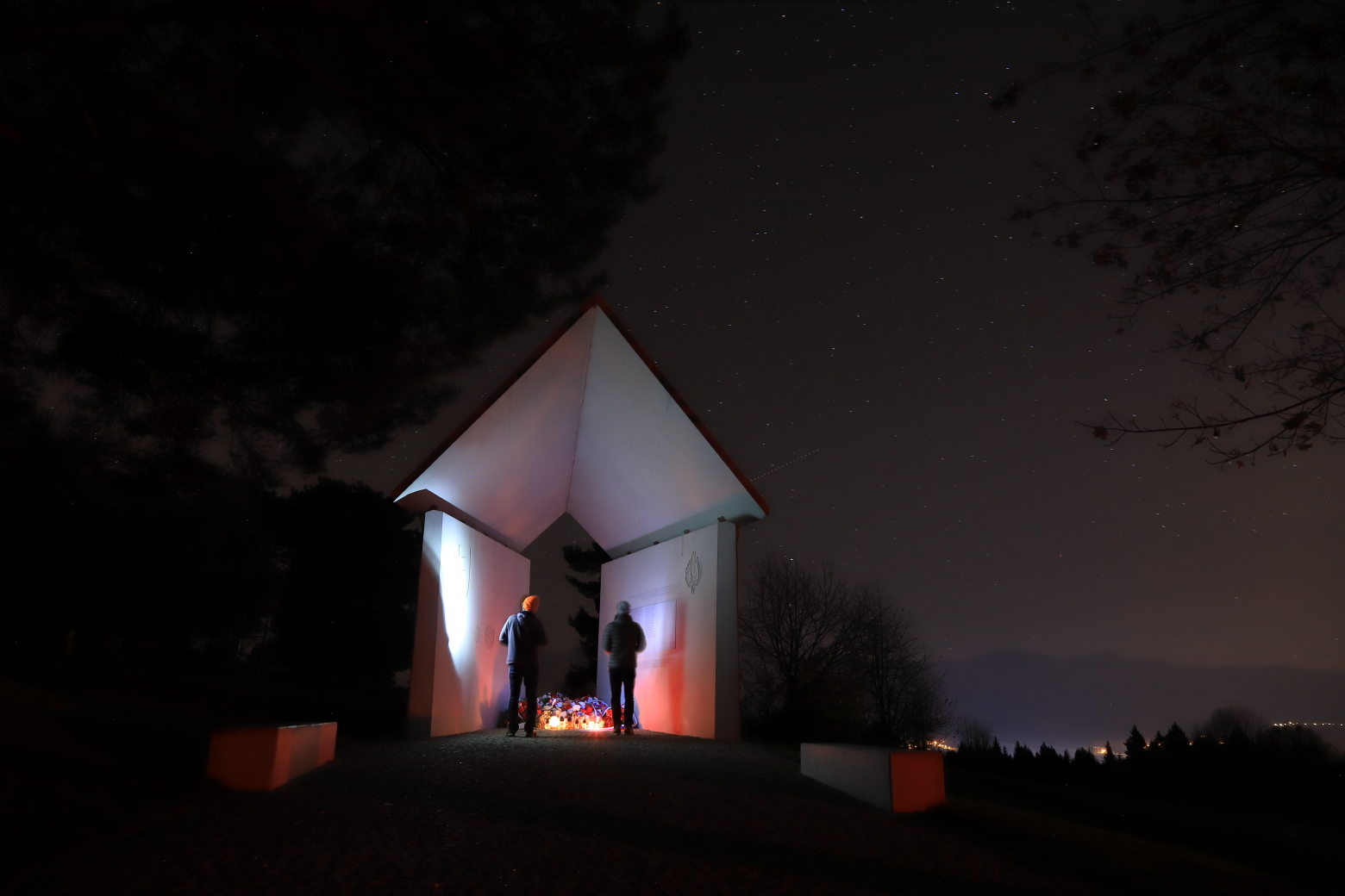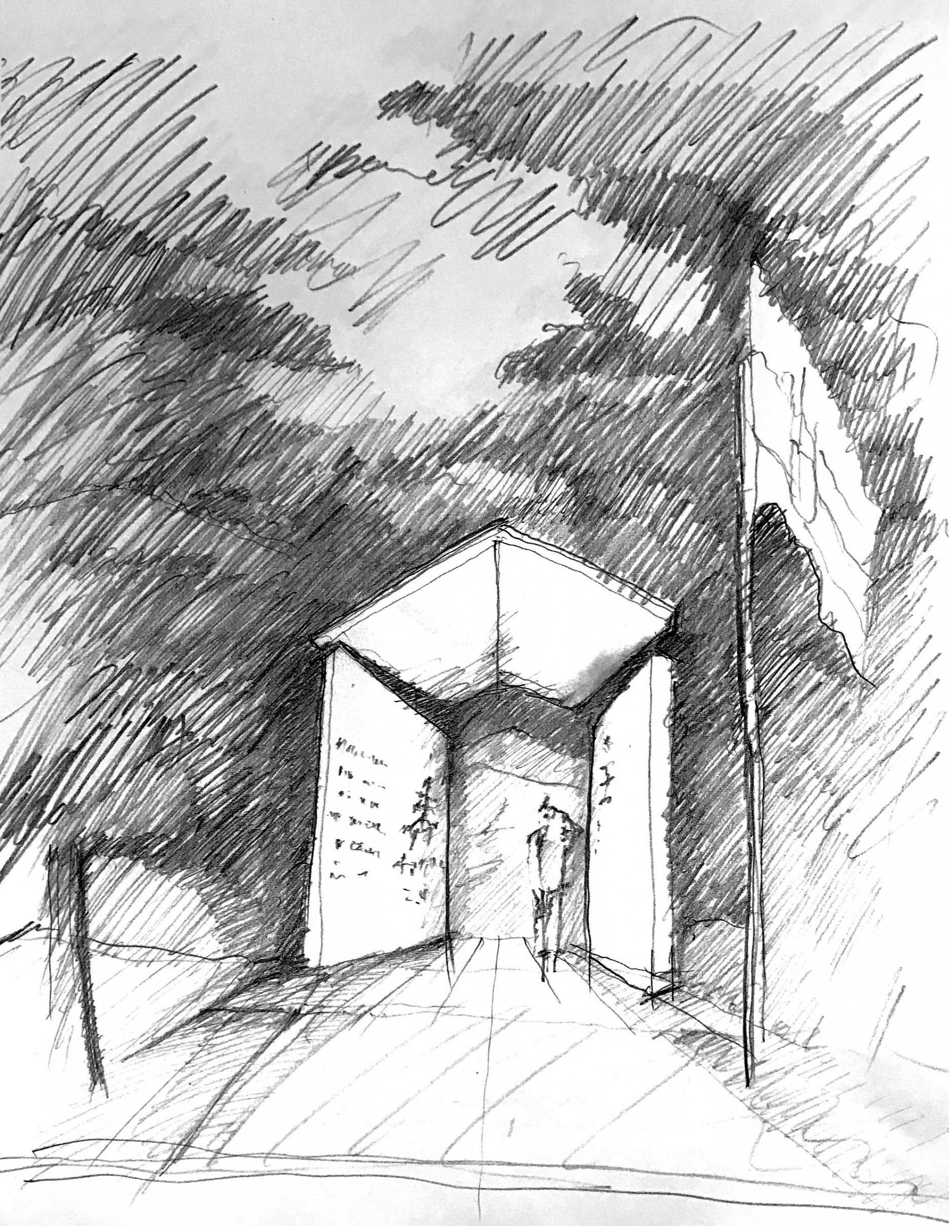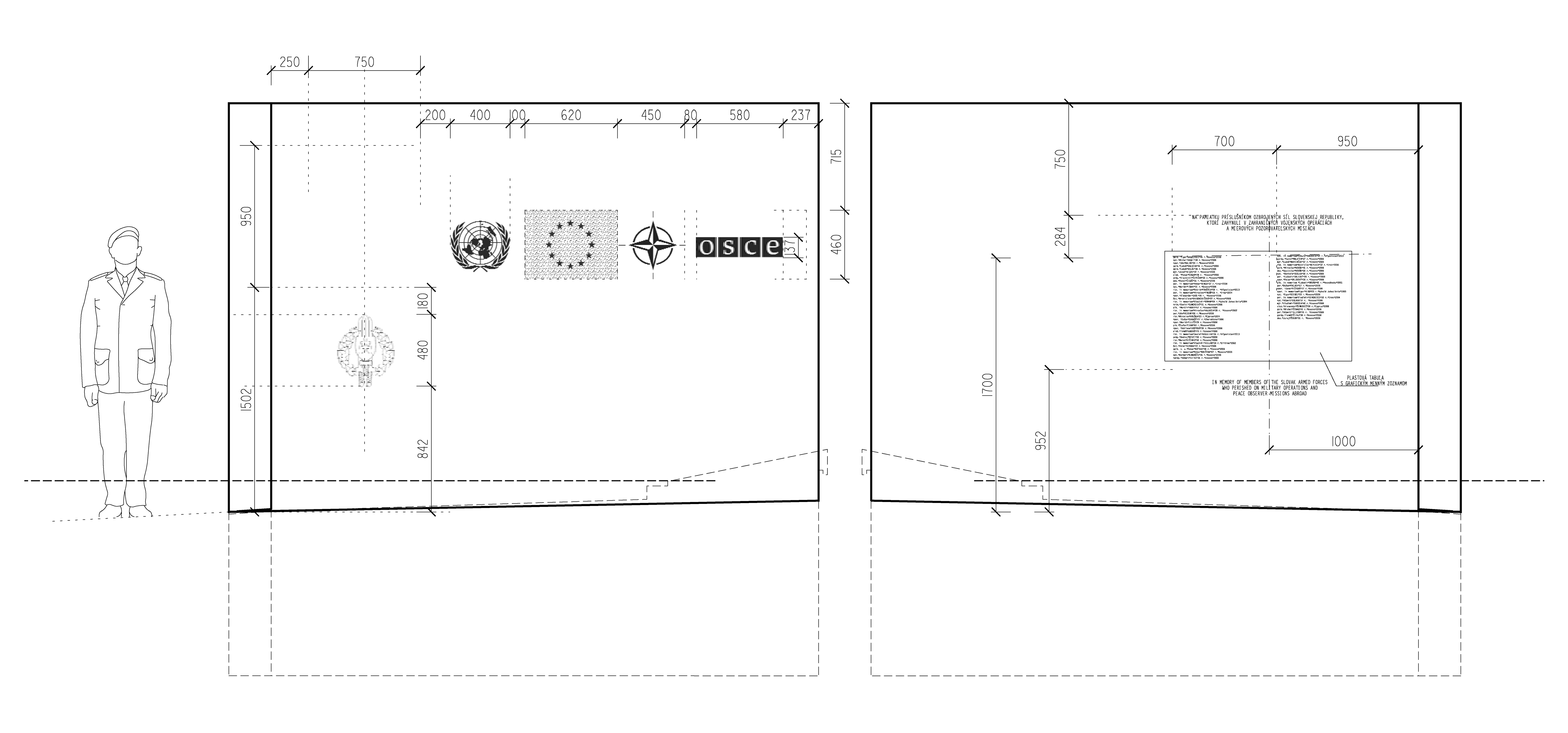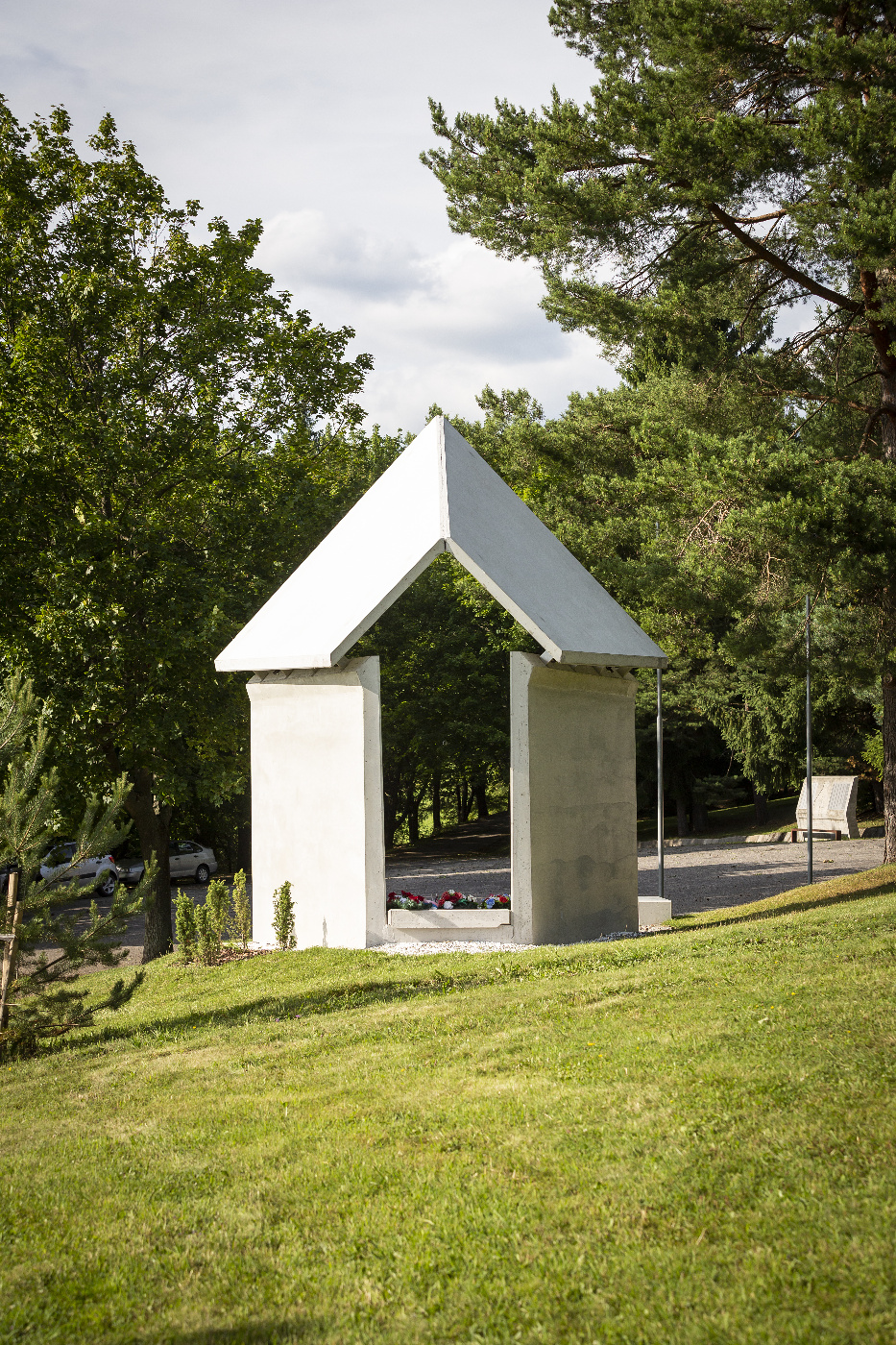 "Mená aj symboly som umiestnila dovnútra, nech spolu pôsobia ako fresky v skutočnom chráme. Rovnako 'levitujúca' strecha dovolí citom plynúť. Biela podlaha s miernym sklonom podčiarkuje perspektívu." dopĺňa architektka.