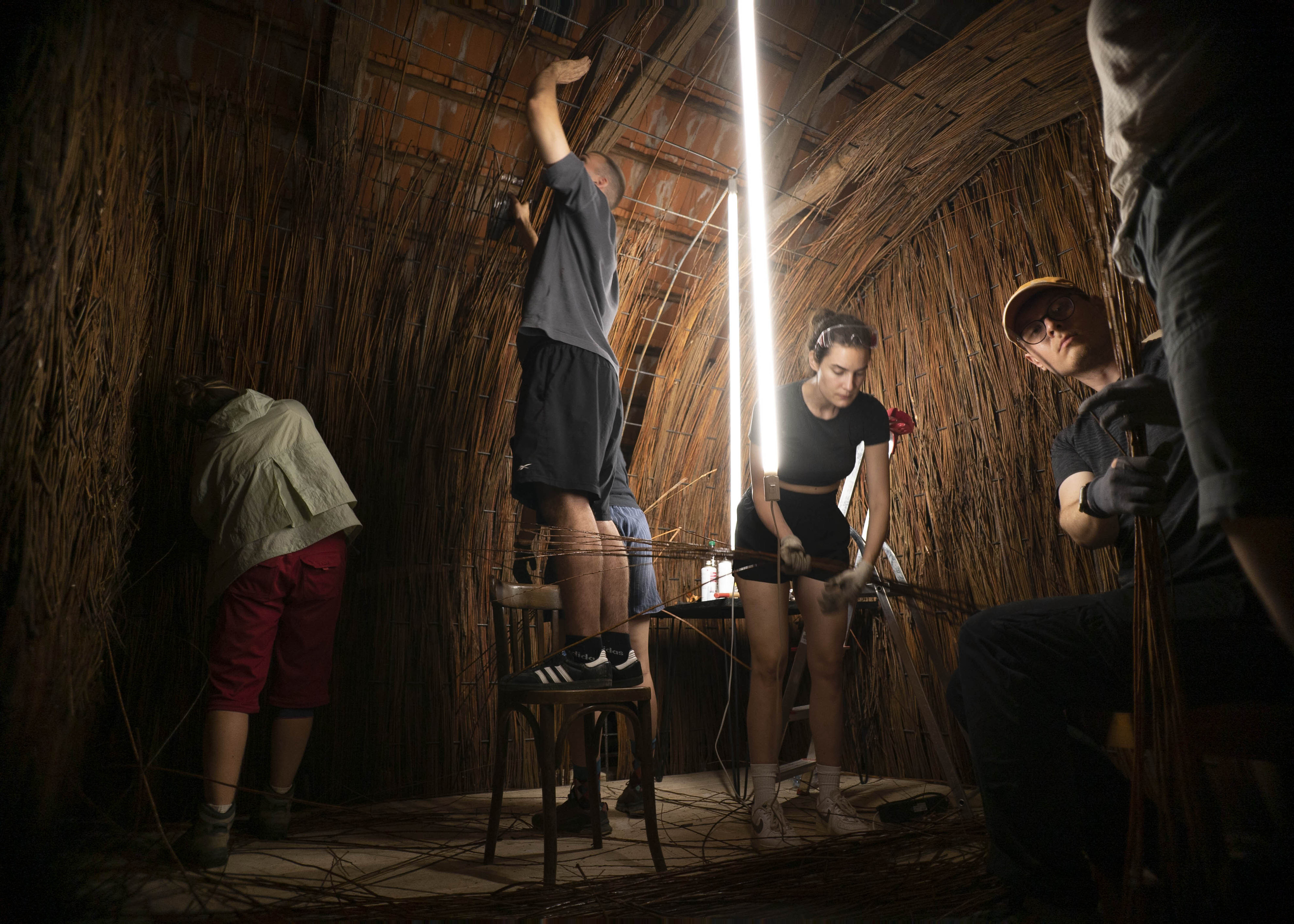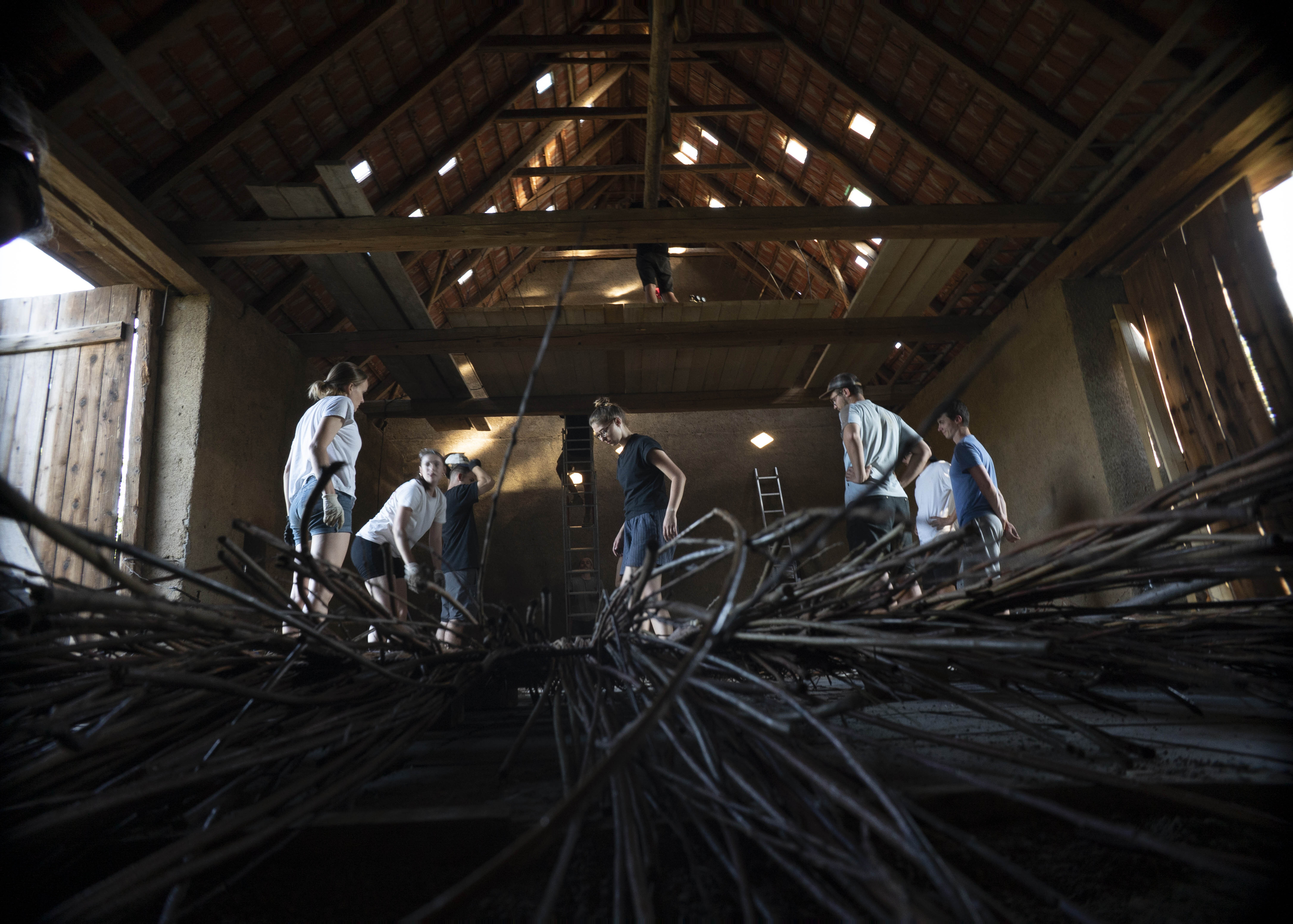 Desať študentiek a študentov prišlo zo slovenských aj zahraničných vysokých škôl: SVF STU Bratislava, FAD STU Bratislava, VŠVU Bratislava, UMPRUM Praha. Dielo bolo realizované v priebehu štyroch dní, s minimálnym rozpočtom a s využitím lokálnych materiálov. Okrem realizácie diela boli súčasťou programu pre desiatich účastníkov workshopu aj odborné praktické prednášky, premietanie filmu, ochutnávka vína v lokálnych tufových pivniciach a koncert o piatej ráno v miestnom kostole. Ďakujeme všetkým účastníkom, sponzorom, lektorom aj všetkým inak zapojeným!