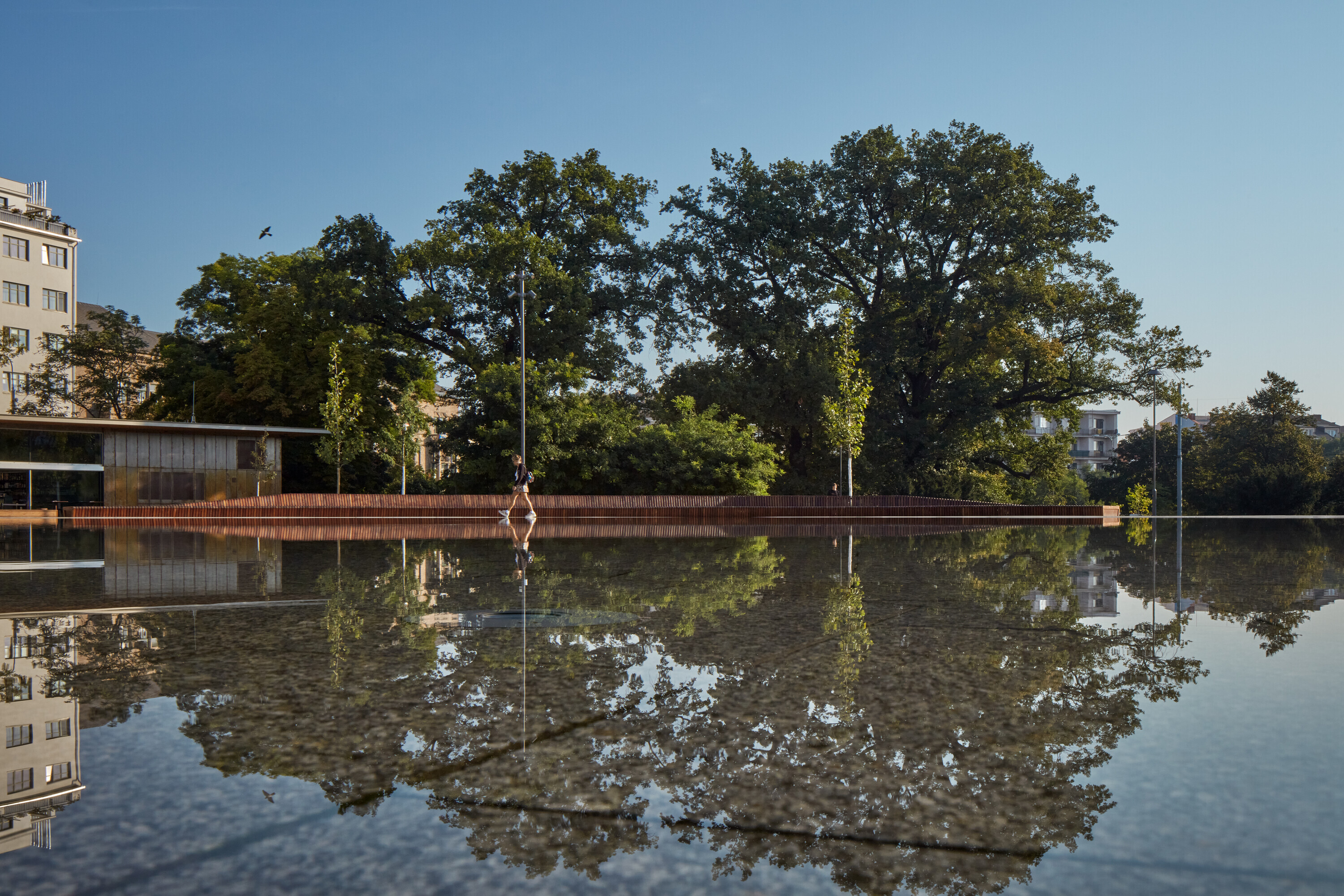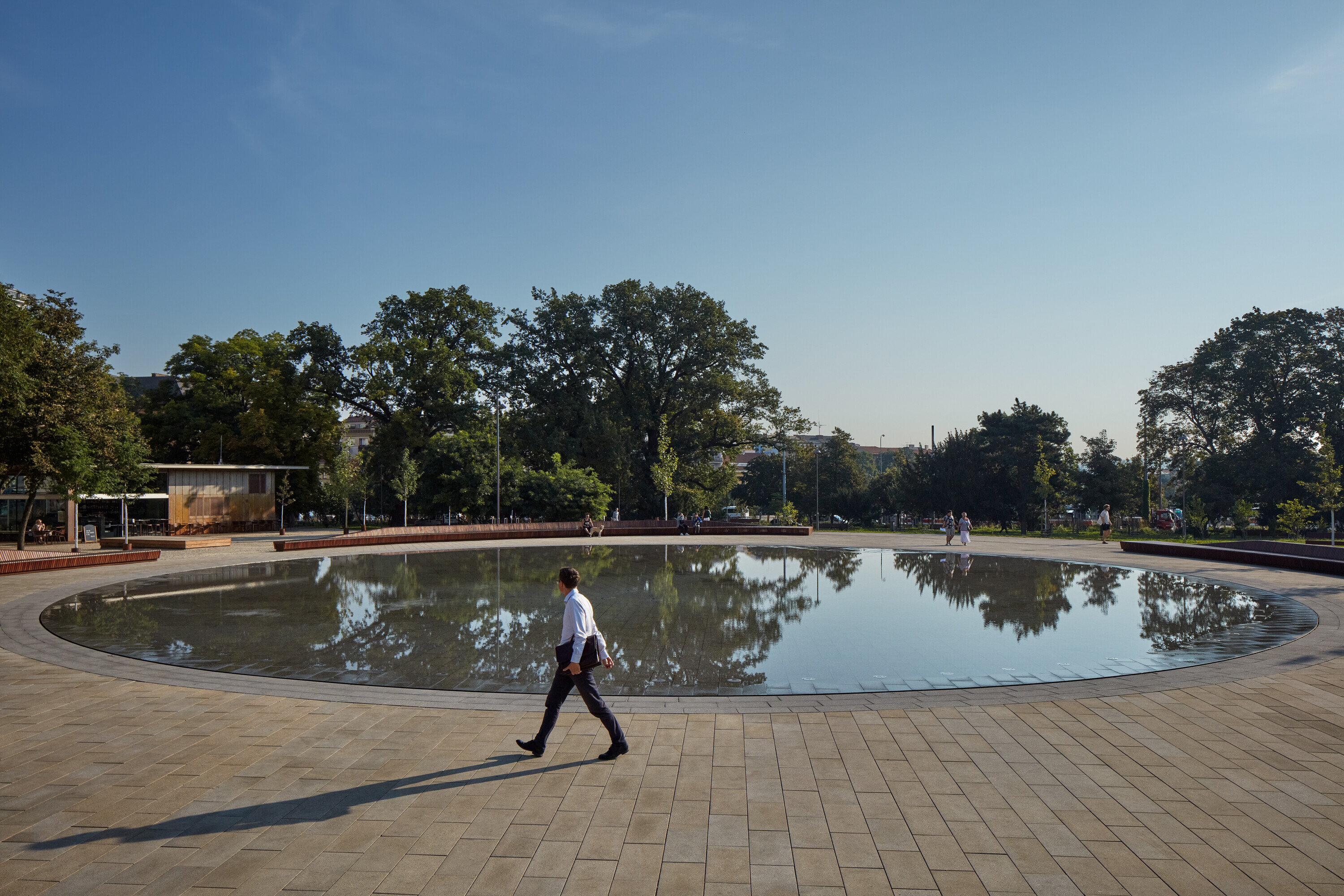 Dlhé roky zanedbávaná plocha v centre mestskej časti Brno-stred sa vďaka realizácii ateliéru Consequence forma architects zmenila na obľúbený pobytový park s dominantnou vodnou plochou, kvetinovými záhonmi a zázemím v podobe objektu kaviarne. O forme Moravského námestia sa diskutovalo prakticky od konca druhej svetovej vojny, kedy z verejného priestranstva zmizol Nemecký dom. Predchádzajúce stvárnenie parku, ktorý členilo kríženie komunikácií, smerujúcich do ťažiska s fontánou, výrazne limitovalo potenciál zóny vo väzbe na centrum mesta.
