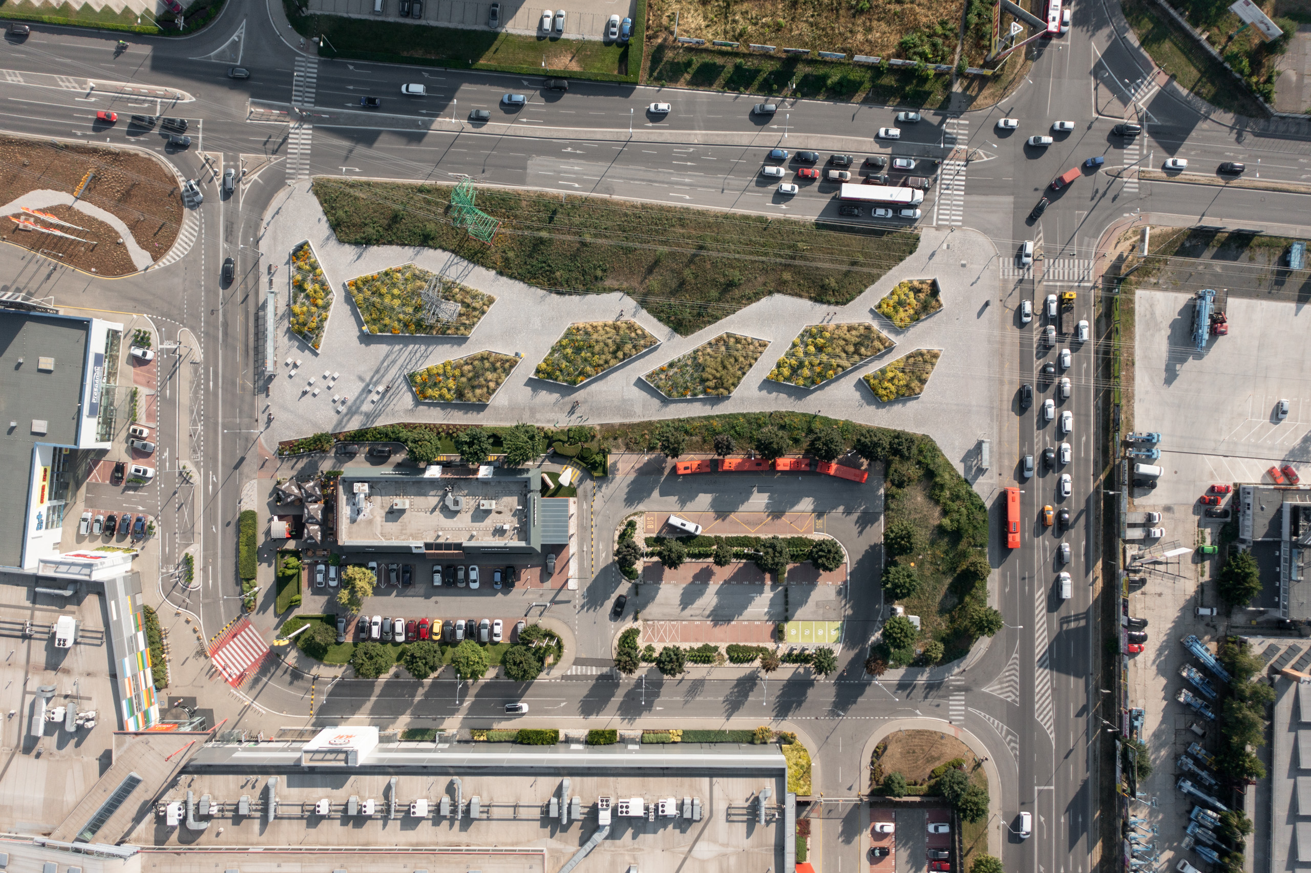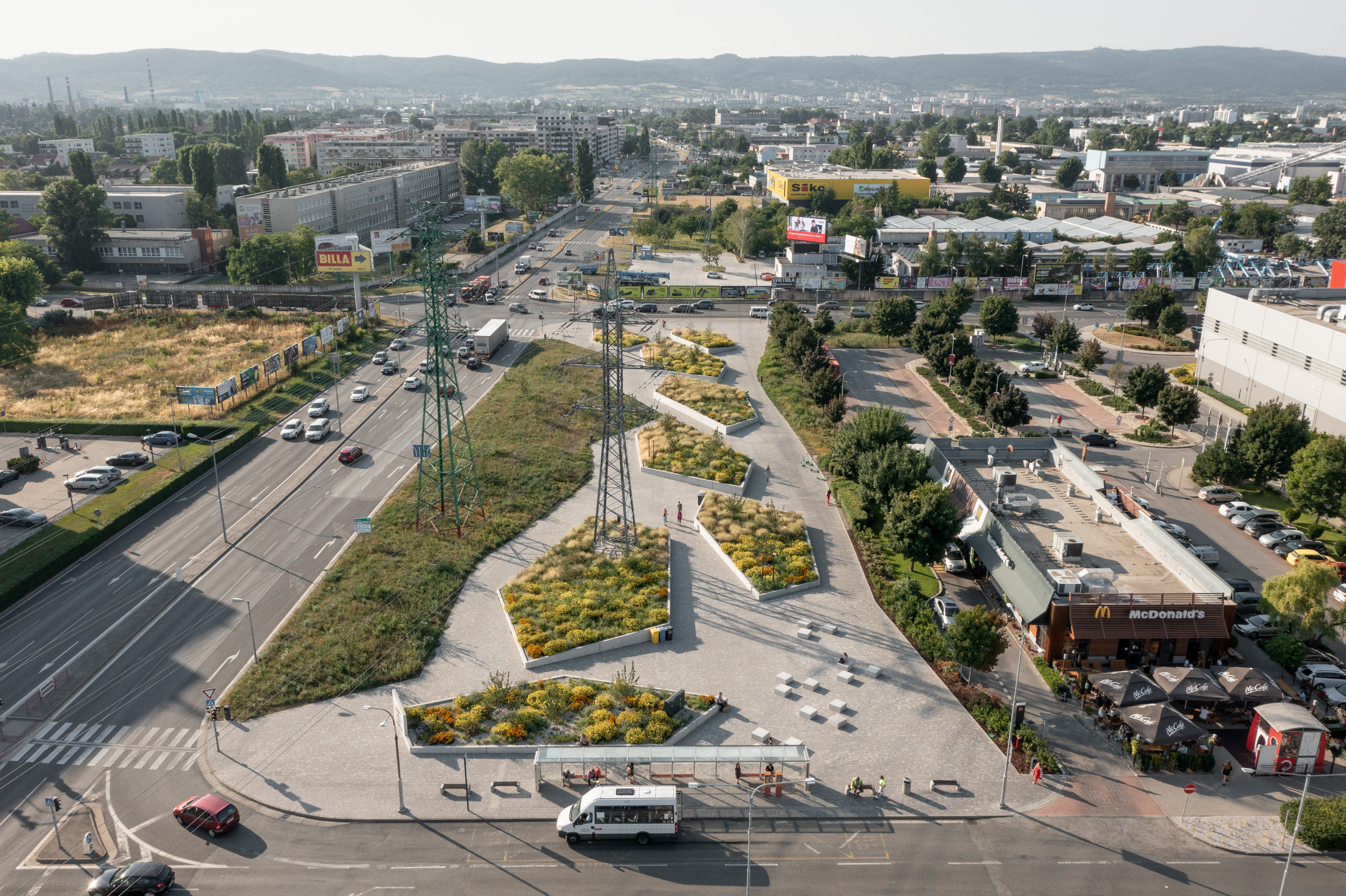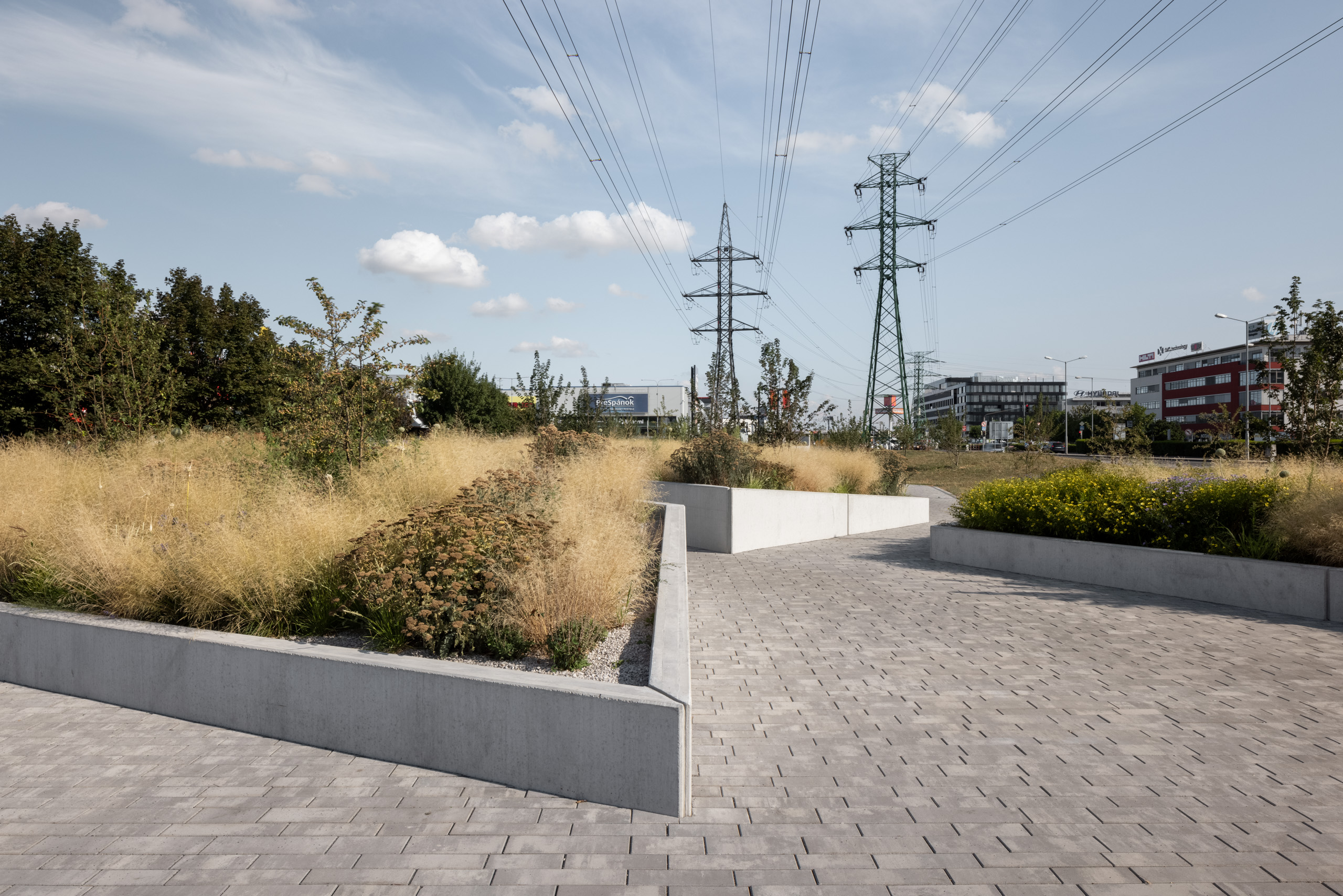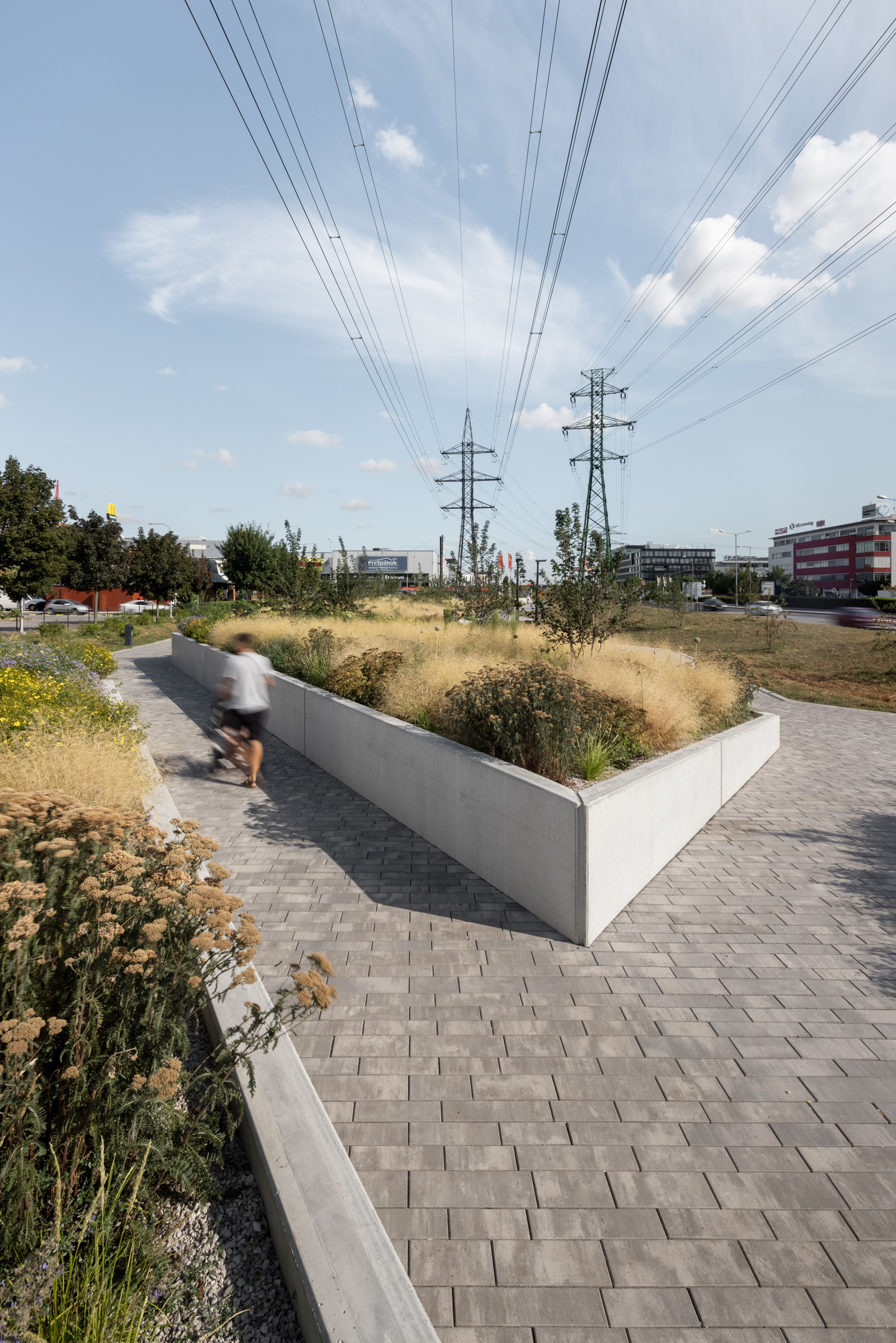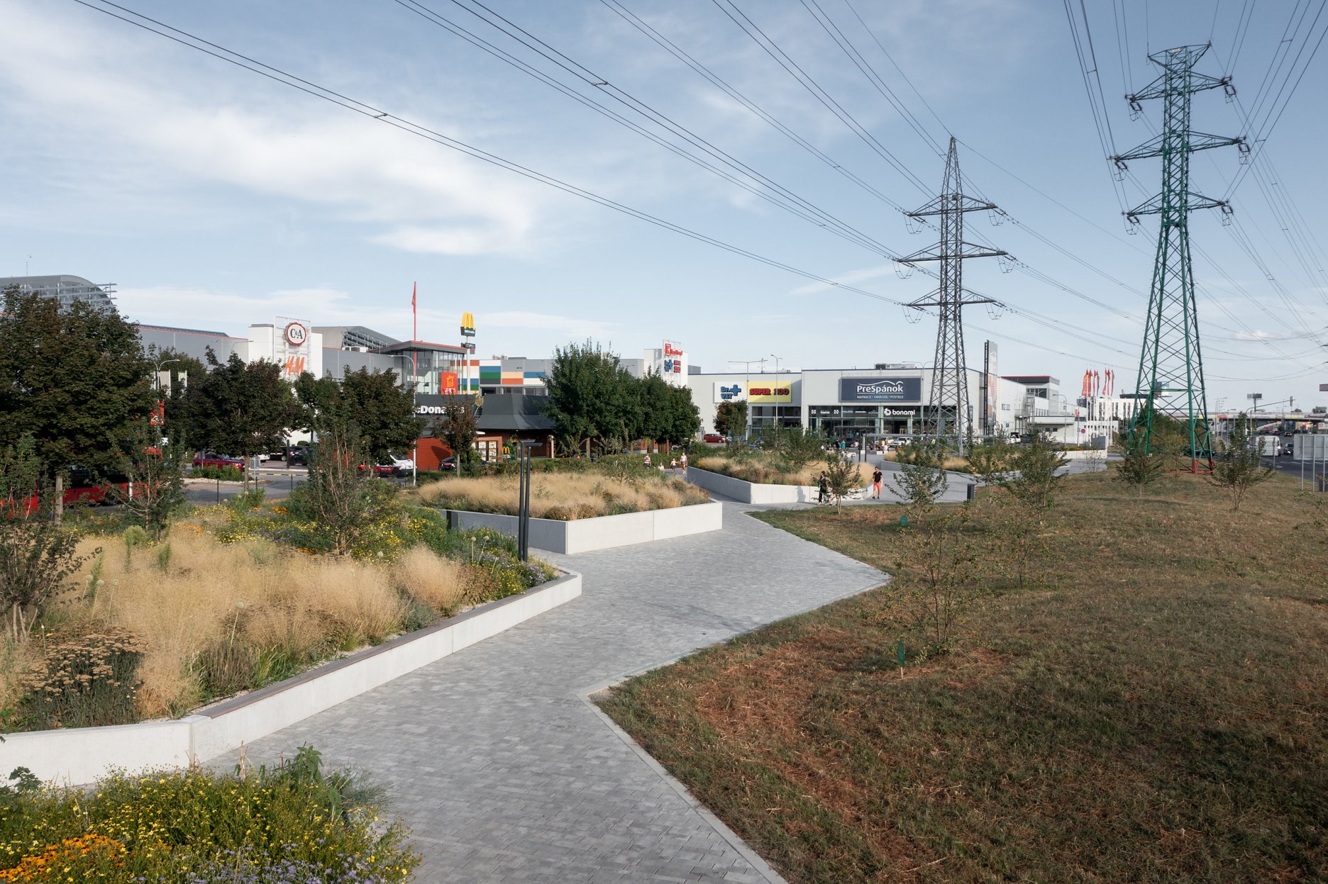 Vytvoriť park na predmestí pri najväčšom nákupnom centre na Slovensku nie je ľahké zadanie. O to viac, keď predmetné miesto lemujú križovatky, viacprúdové komunikácie, parkovisko, či dokonca stĺpy elektrického vedenia. Mohlo by sa zdať, že je to nemožná misia, no z dlhého zoznamu obmedzení vytvorili KubisArchitekti príjemné miesto, ktoré je výsledkom výškových a programových regulácií, ktoré však autori vidia ako možnosti. Je aj akýmsi filtrom a snaží sa o autonómny priestor v pomerne jednotvárnom prostredí okolia obchodného centra, ktoré Koolhaas tak rád označuje za brakové priestory (junkspace), nezapamätateľné, plné absencií, bez pravidiel a vnútorného poriadku, eliminujúce realitu.