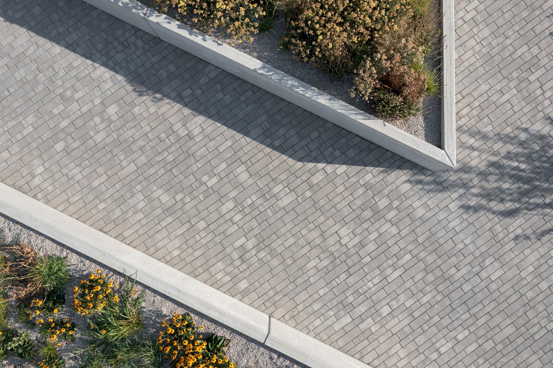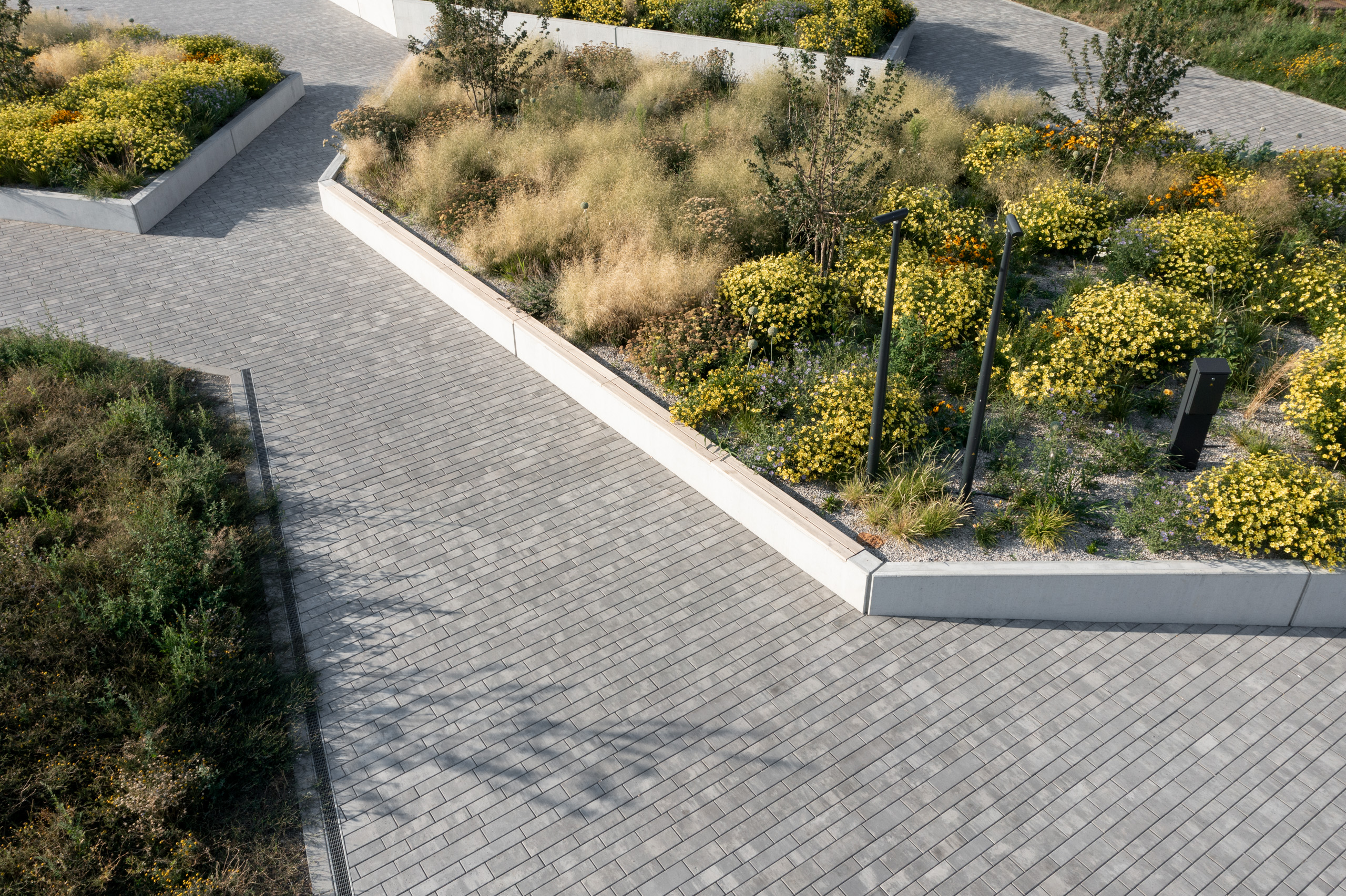 Opakovanie niektorých dimenzií a betónových segmentov vzniklo s cieľom čo najväčšej optimalizácie výroby. Výšky betónových stien ale reagujú aj na kontext, niekde sa zvažujú až na úroveň chodníka pre lepšiu dostupnosť či údržbu, inde spolu s vyššou výsadbou tvoria zelenú stenu, bariéru voči hlučnému a rýchlemu okolitému svetu.