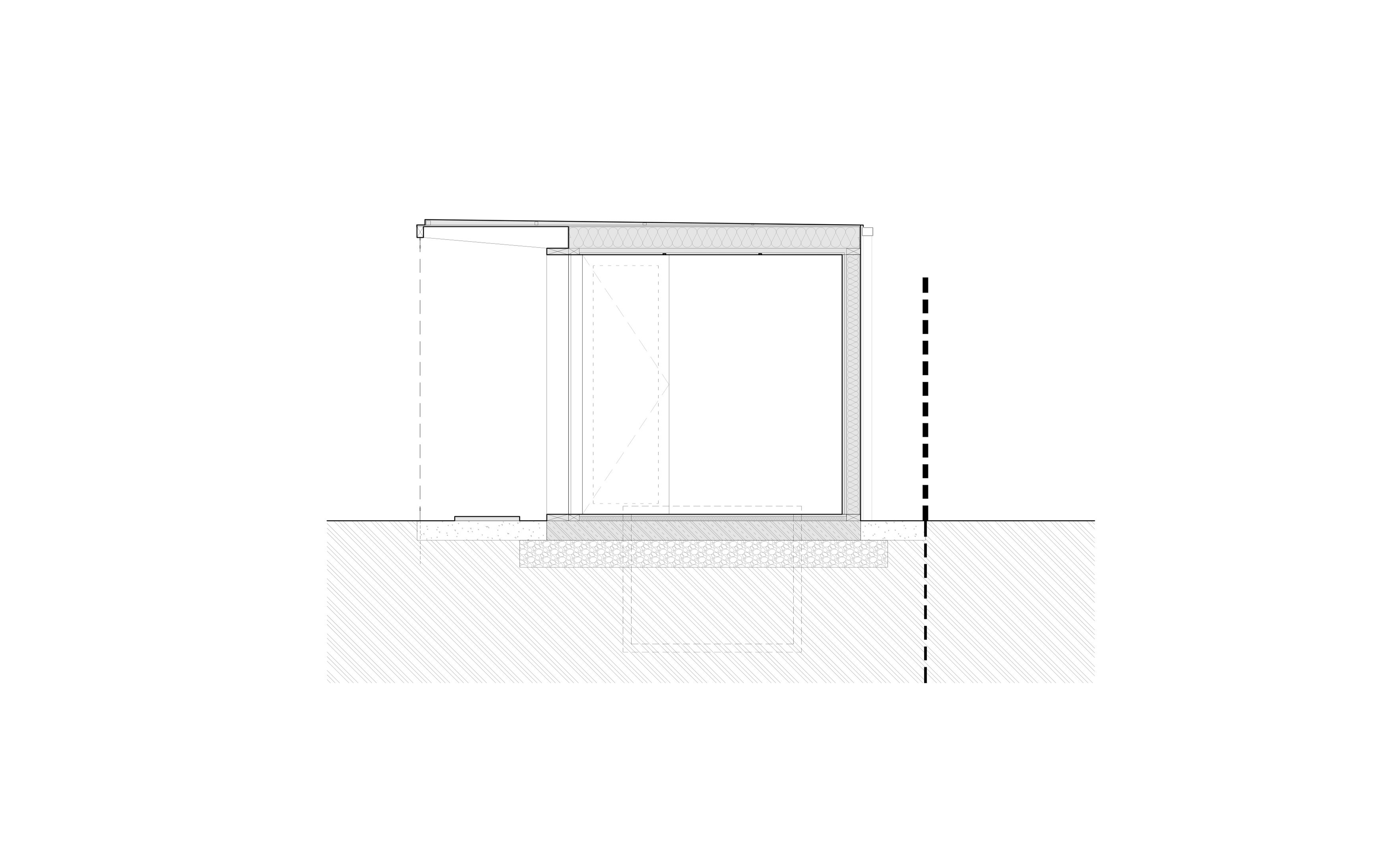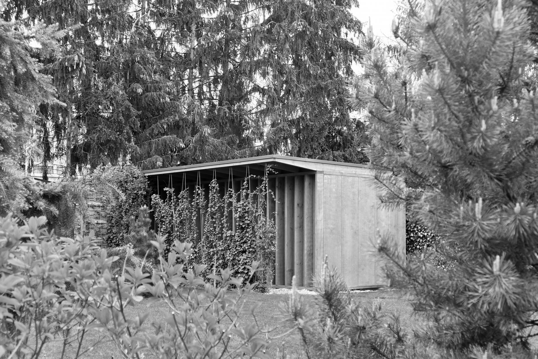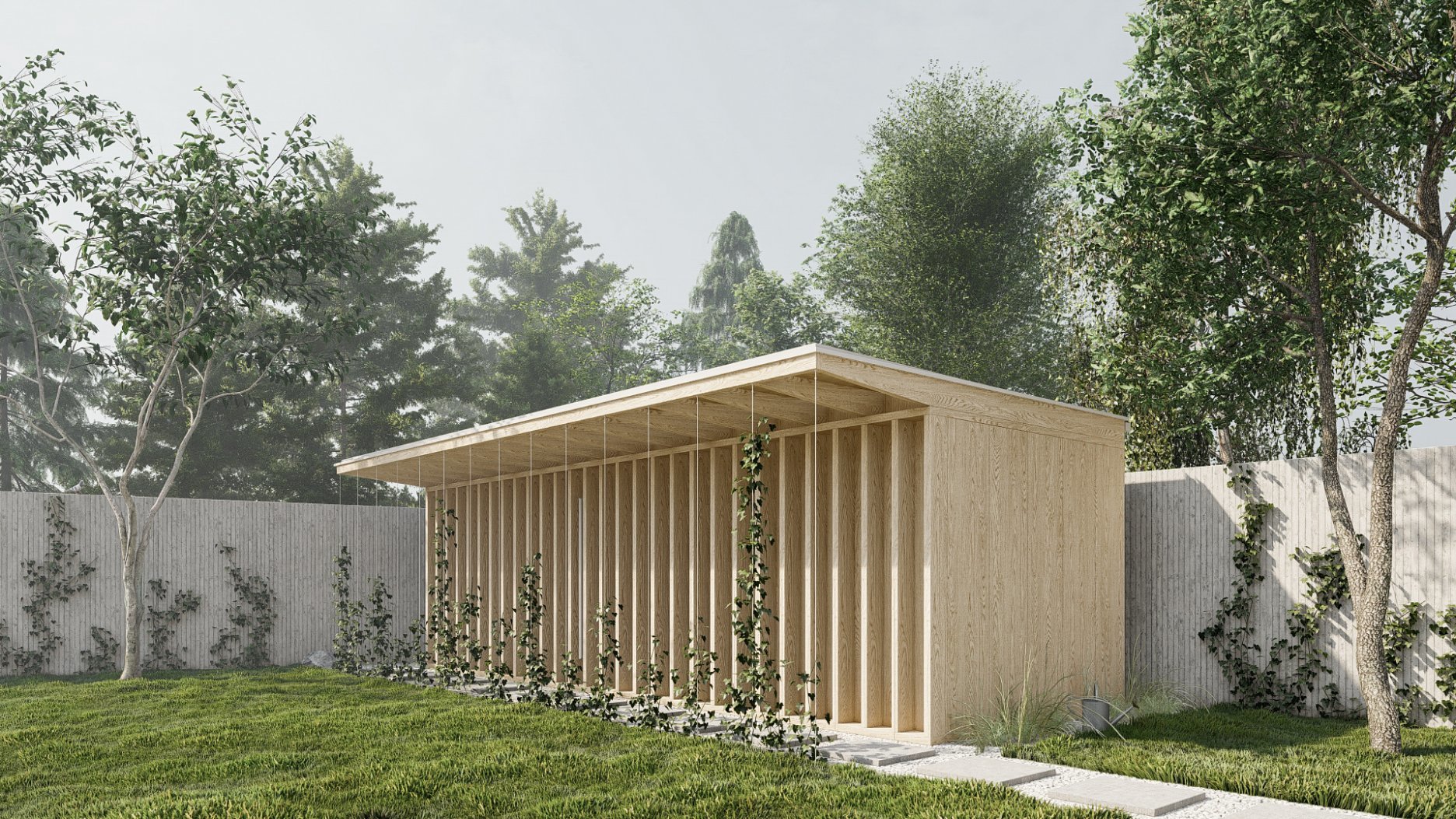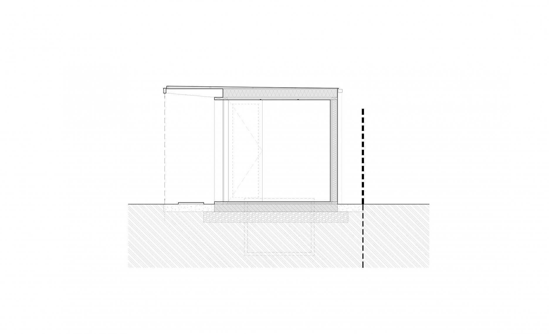 Skromná architektúra sauny má ambíciu citlivo dotvárať drobnú záhradu. Byť jej nenápadným doplnkom a účelným objektom. Jednoduchá drevená skeletová konštrukcia priznáva svoju tektoniku a materiály do celej fasády. Podklad tvorí betónová doska. Previs strechy vytvára krytý vstup, ktorý je doplnený popínavými rastlinami ako ďalšou vrstvou prírody.