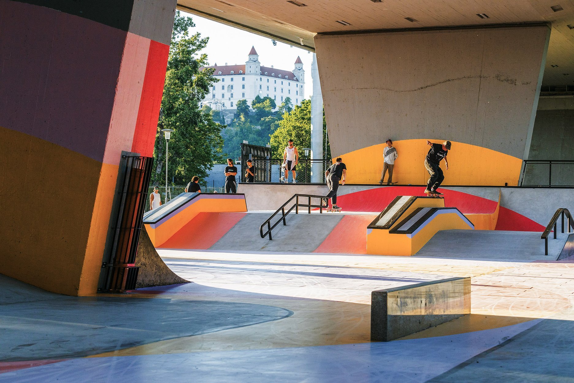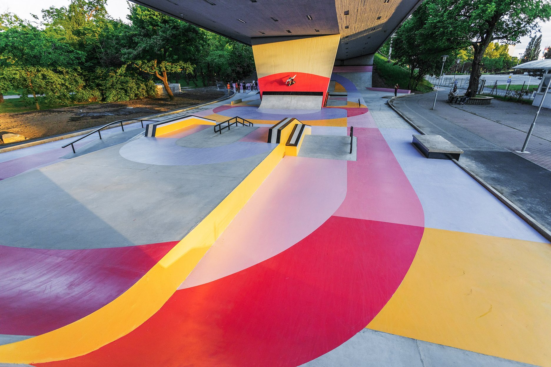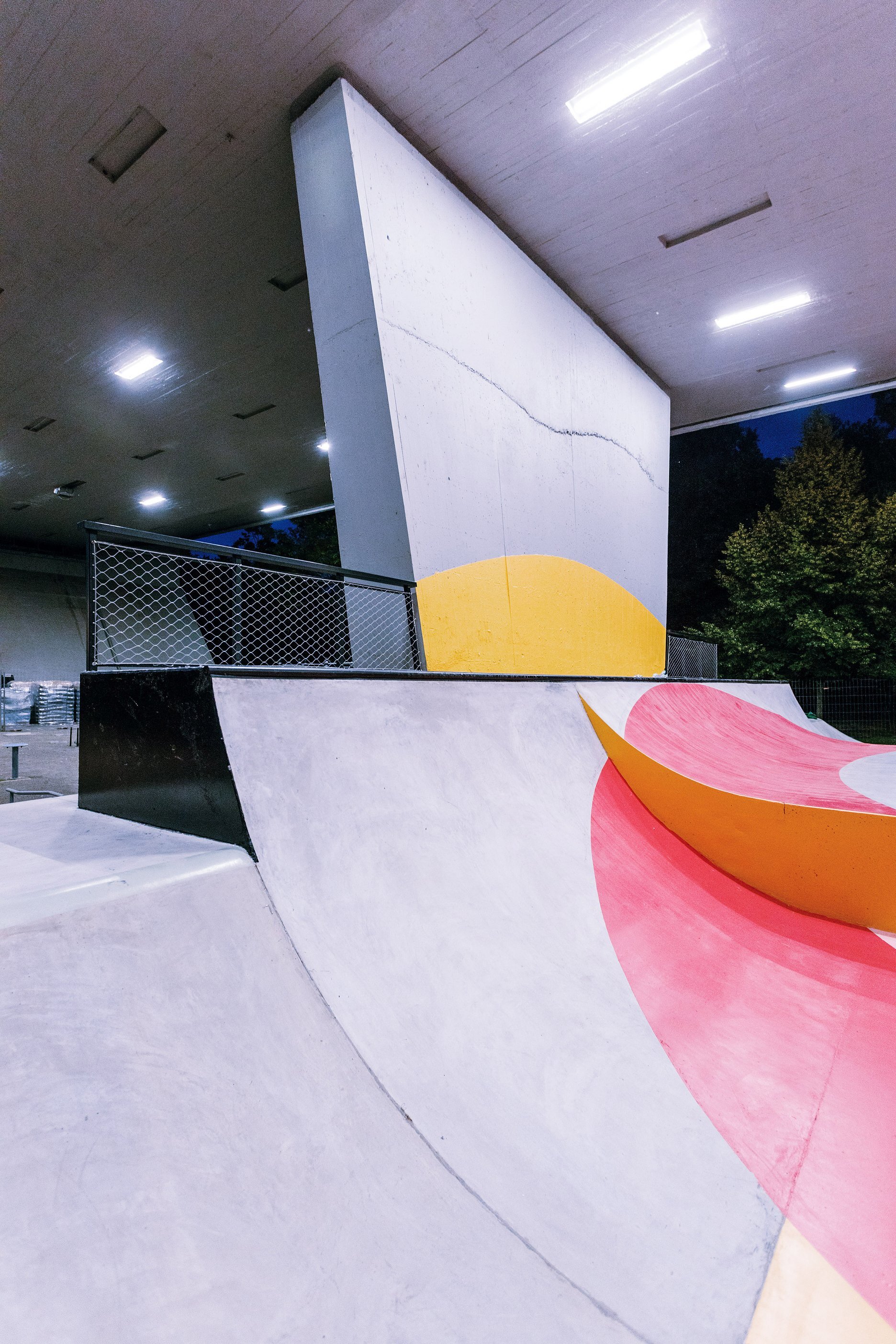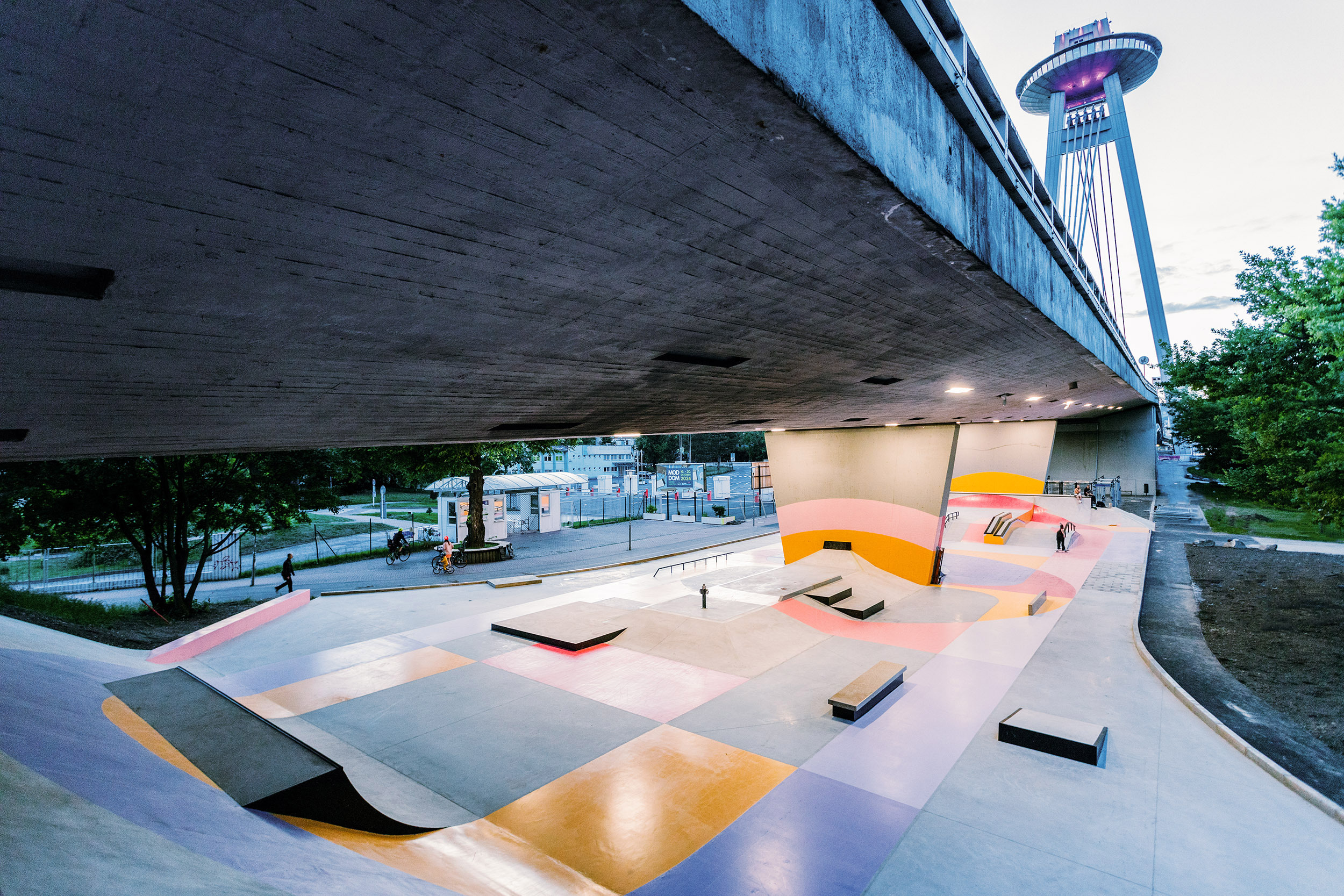 V bezprostrednom kontakte so Sadom Janka Kráľa a výhľadmi na dominanty Bratislavy navrhujeme krytý celobetónový skatepark, ktorý sa s plochou 1350 m2 zaradí medzi najväčšie na Slovensku.