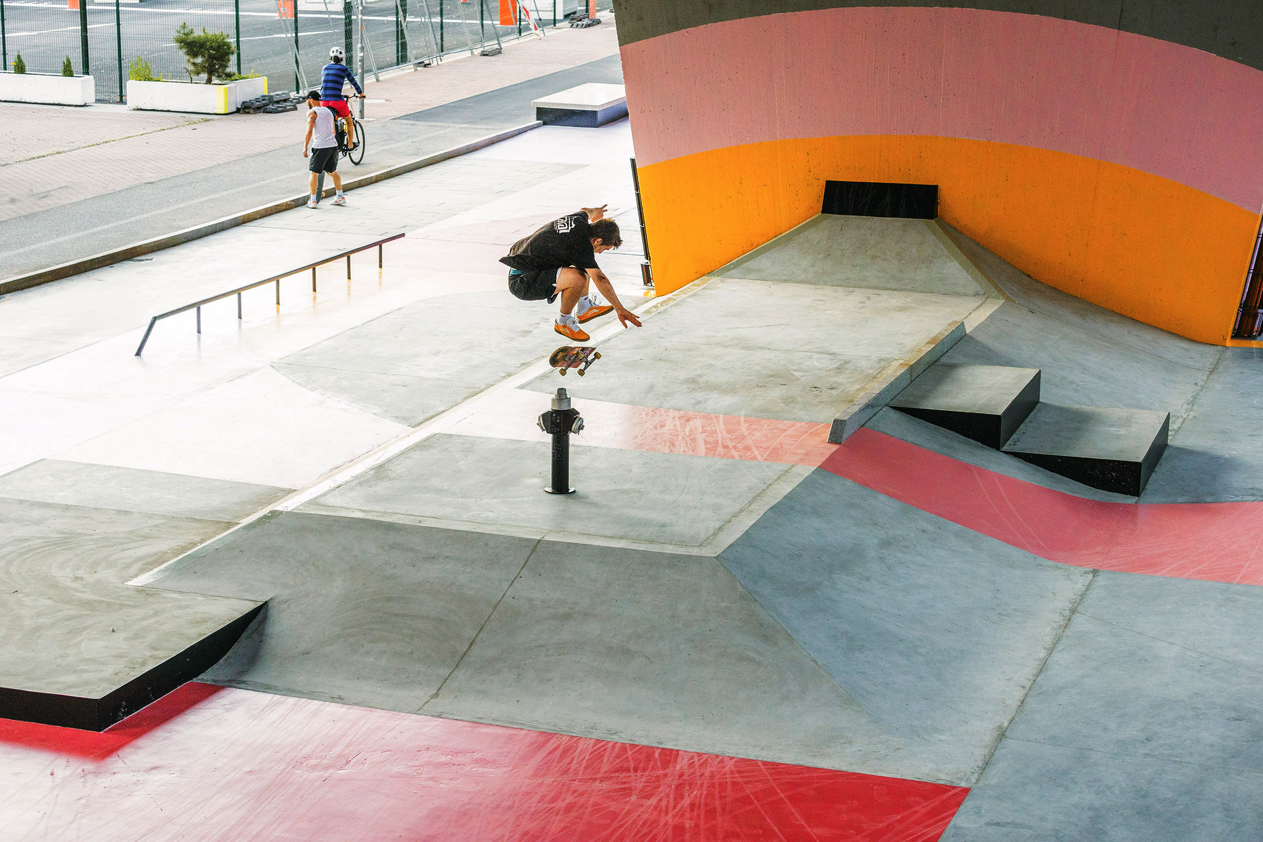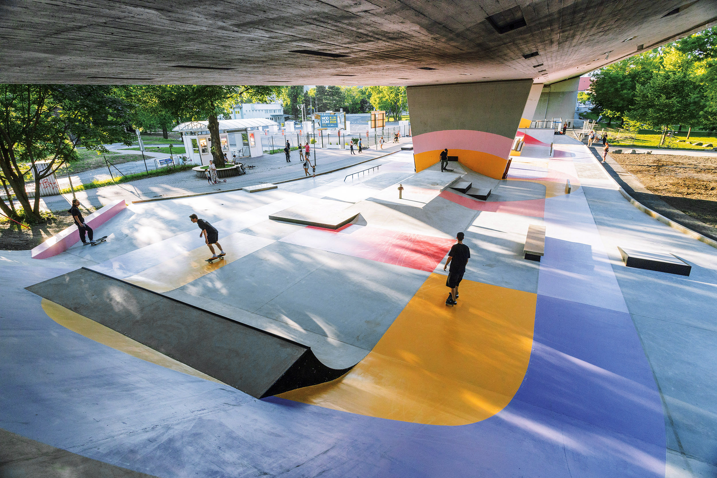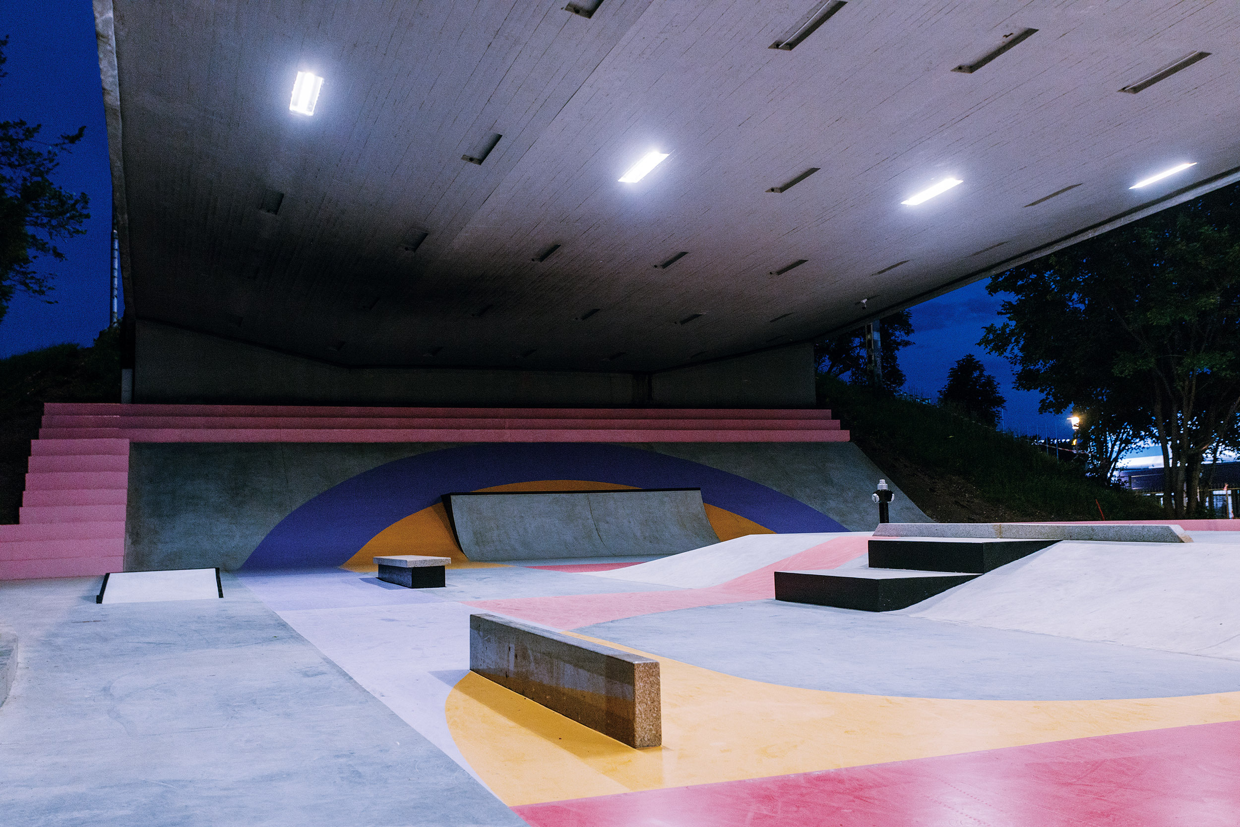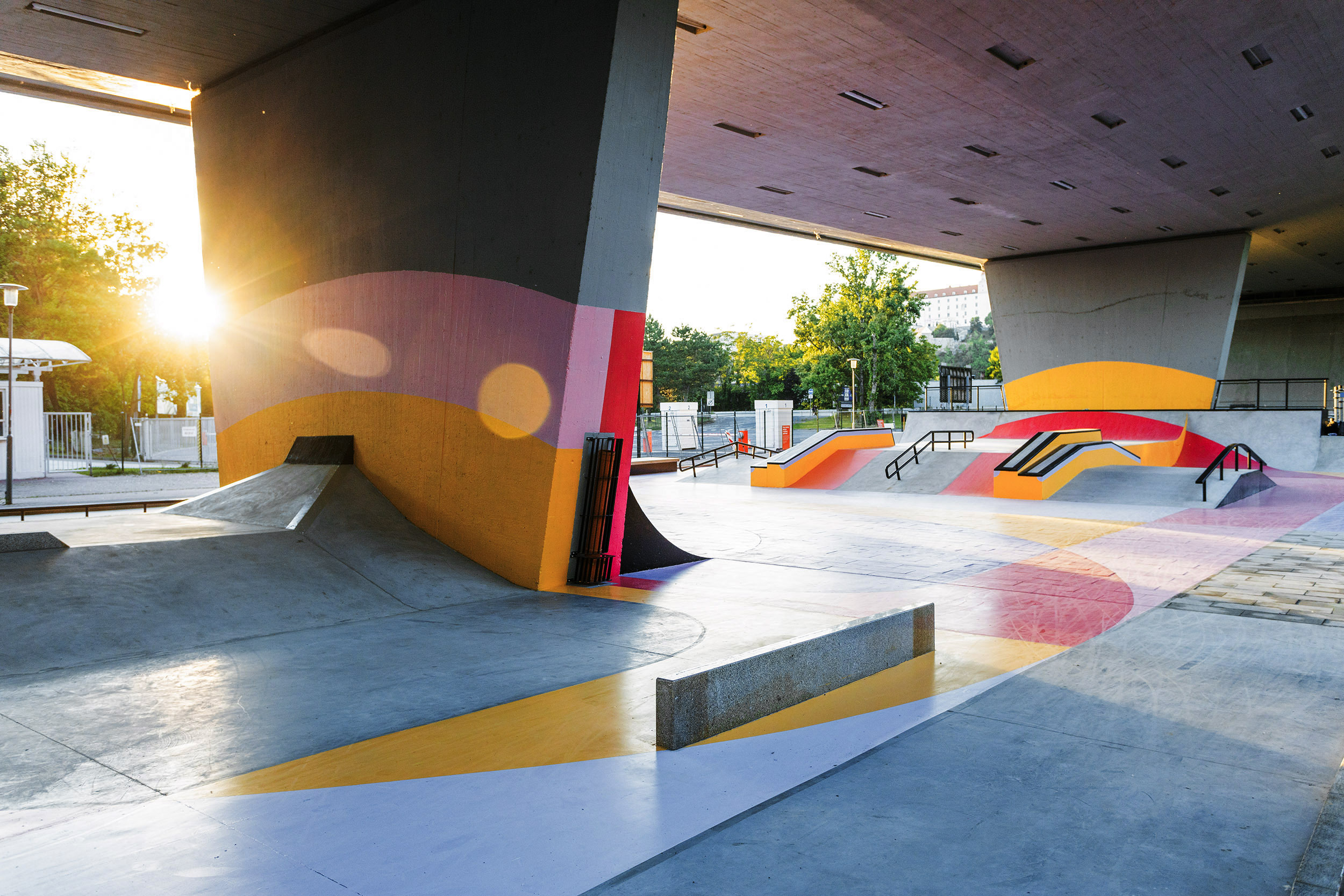V bezprostrednom kontakte so Sadom Janka Kráľa a výhľadmi na dominanty Bratislavy navrhujeme krytý celobetónový skatepark, ktorý sa s plochou 1350 m2 zaradí medzi najväčšie na Slovensku.