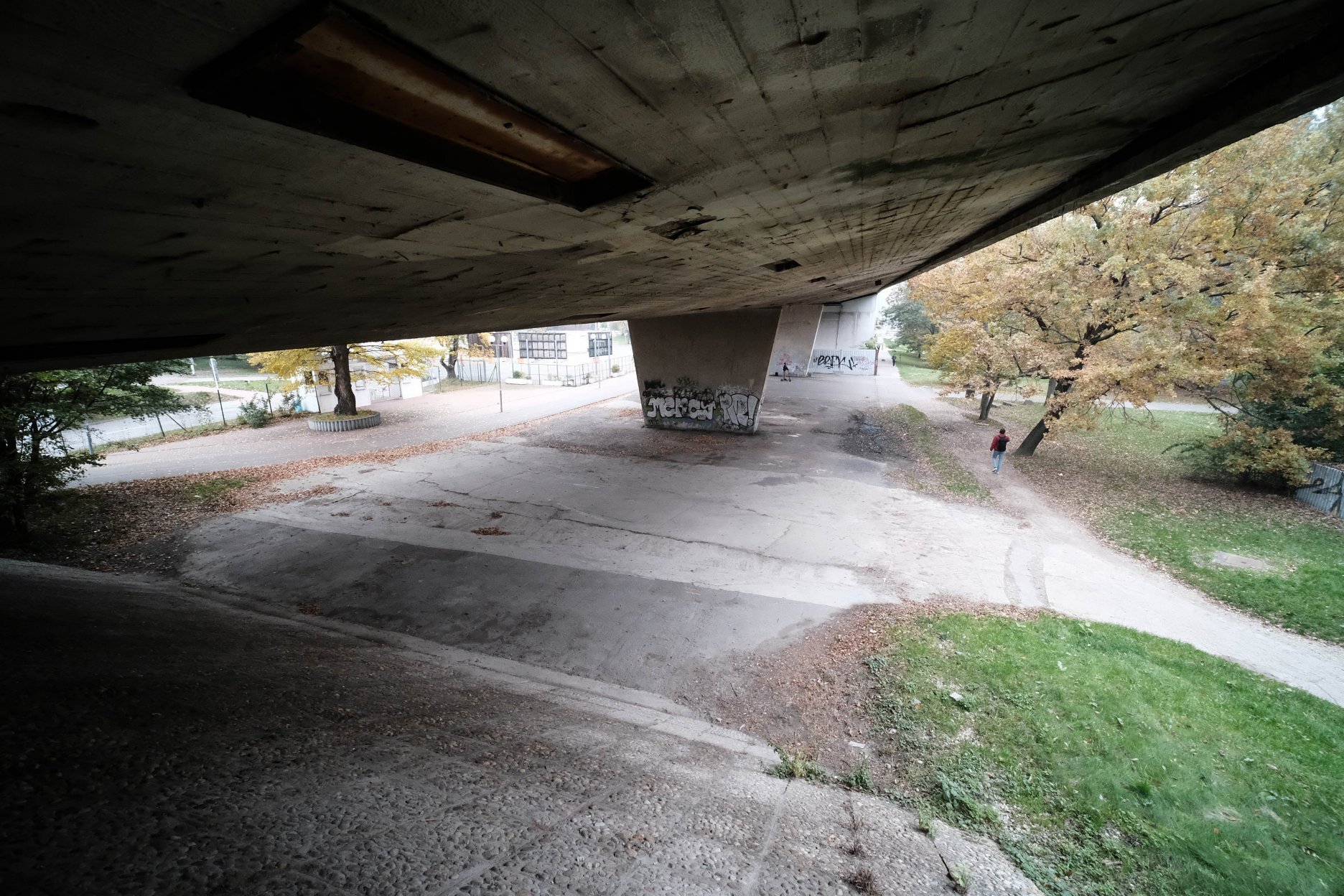 Jedným z dôvodov dlhoročnej absencie využitia lokality v kontakte so Sadom Janka Kráľa je komplikovaná situácia s inžinierskymi sieťami. "V konštrukcii mosta a následne pod plochou, kde sa aktuálne športovisko nachádza totiž prechádzajú všetky potrubia a káble, ktoré spájajú centrum mesta s najväčším bratislavským sídliskom Petržalka," vysvetľuje jeden z autorov projektu Lukáš Kalivoda. Návrhu športoviska pod mostom preto predchádzalo zdĺhavé a komplikované vyjednávanie podmienok so správcami inžinierskych sietí. Výsledkom je veľké množstvo revizných otvorov a úprav povrchov, ktoré sú citlivo zakomponované do materiálov návrhu.