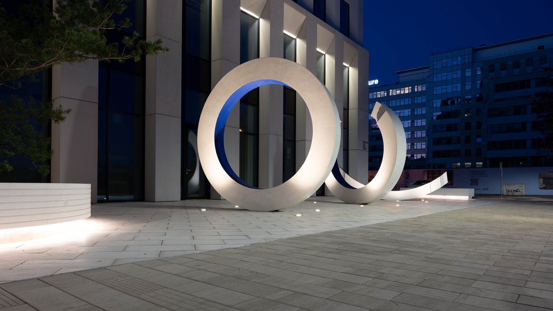 Každý začiatok má svoj koniec a každý koniec vedie k novému začiatku. Dva pevné body – zrodenie a zánik – sú reprezentované formami kvádra a horizontalneho kruhu, ktoré sú akcentované podsvietením.