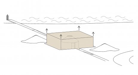 OCHRANA – chrániť to čo je nám blízke, domov, rodinu, priateľov. Racionálna hmota kocky reaguje na súčasné jednoduché formy. Je v kontexte so súčasným hmotovým riešením novostavieb v obci. Zvyšuje plošnú kapacitu objektu o ďalšie priestory a jej tvar chráni priestory pre vetrom, dažďom a hlukom z cesty. Dva menšie priestory slúžia na skladovanie a dva väčšie priestory môžu byť vďaka racionálnemu pôdorysu transformované pre rôzne účely. Priestor na juhu môže byť využívaný na stále i dočasné umelecké diela. Priestor na severe je určený na šírenie povedomia, učenie sa, semináre, alebo prezentácie.