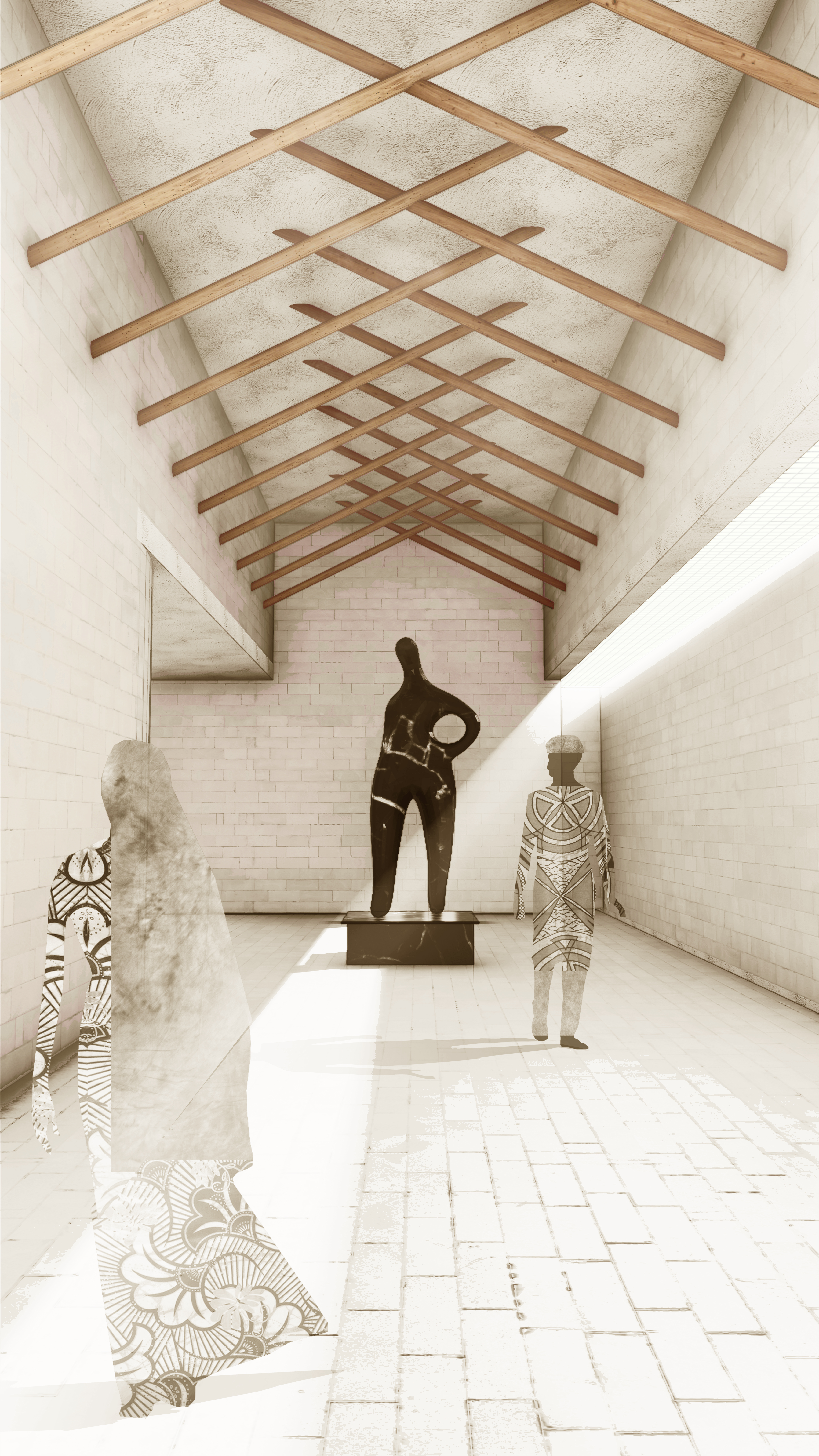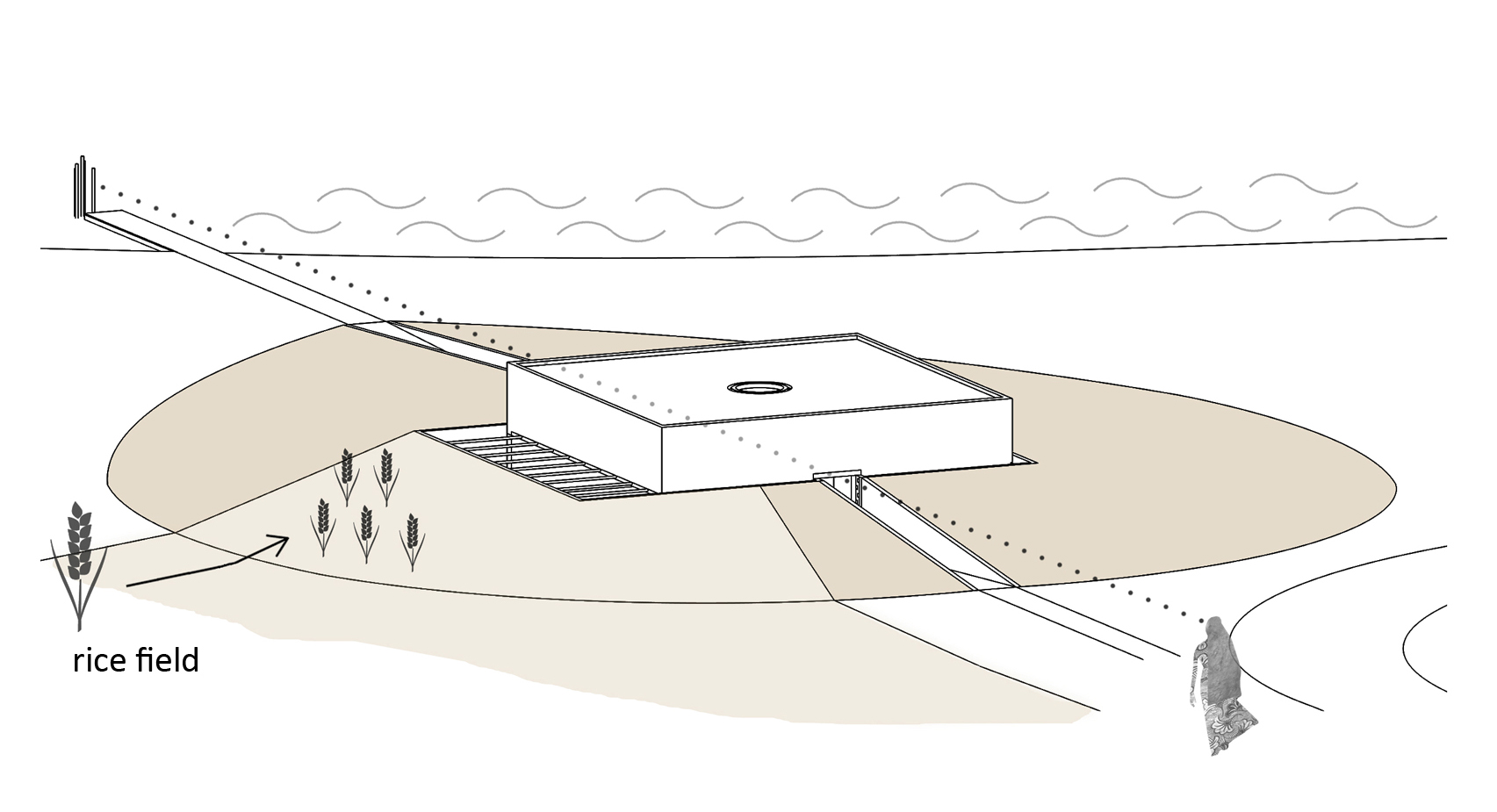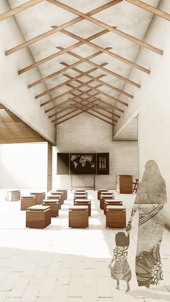 PRÍRODA – africkí ľudia sú úzko spätý s prírodou a jej živlami, v našom návrhu sme preto tieto aspekty pokladali za dôležité. Vykopanie jamy, následné vrátenie pôdy k budove, reakcia na ryžové polia v blízkosti a ich integrácia do kopca, zber dažďovej vody, cesta vrcholiaca pri rieke, opálené piliere. Ryha/medzera v území znázorňuje spätosť s pôdou a jazvu, ktorá tu bola nevinnými obeťami zanechaná.