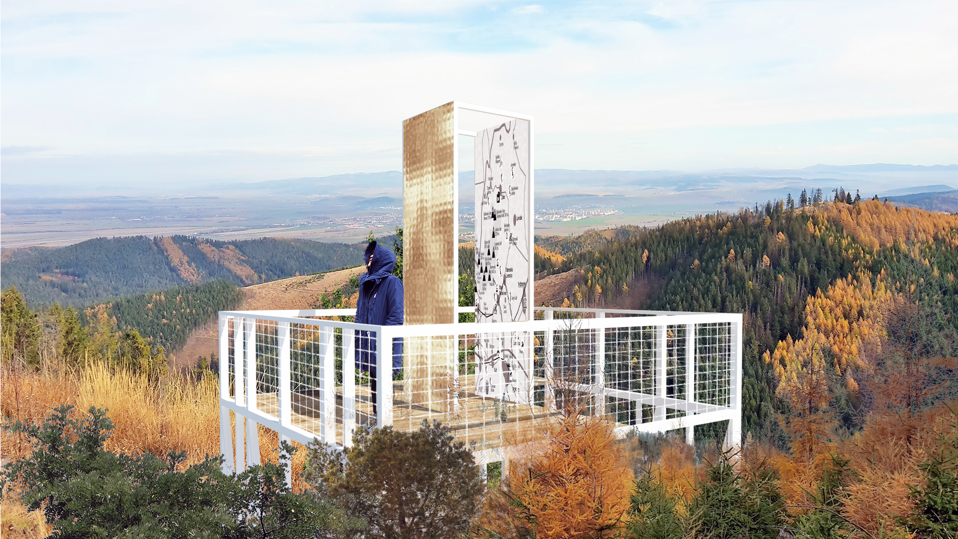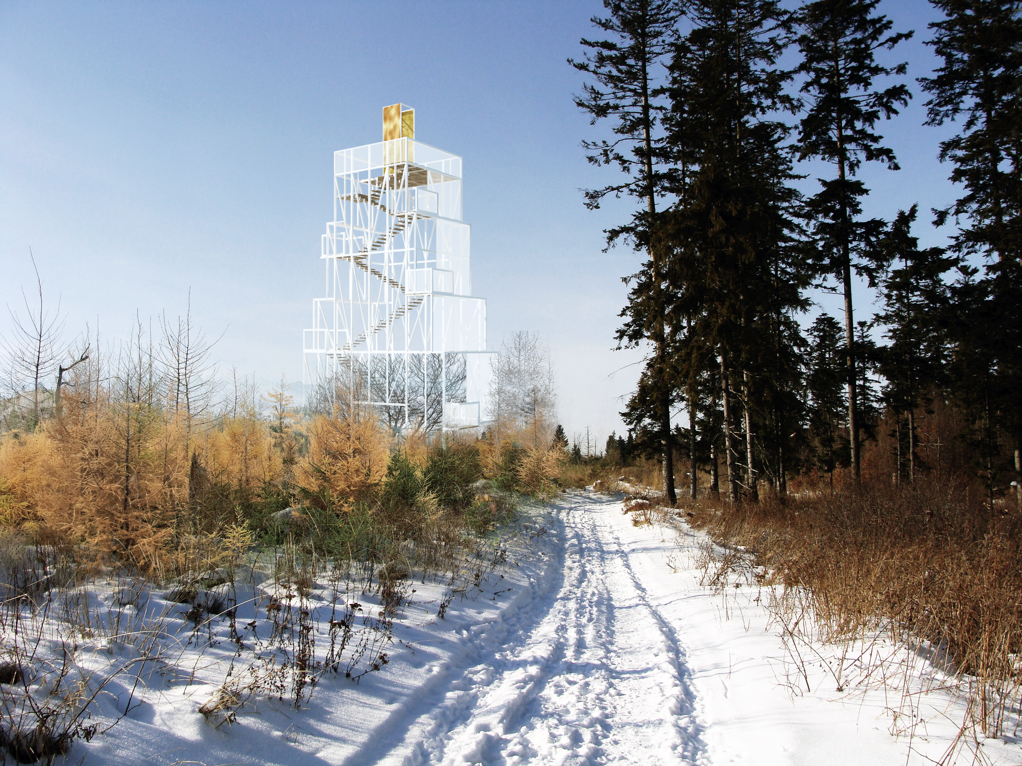 Po spoznaní miesta sme hneď pochopili že náš návrh nebude "len" vyhliadková veža. Úplne holý vrchol a totálny výhľad – len vyhliadka, to by bolo príliš zjednodušené. Ako popisujeme v texte o osadení veže a širších súvislostiach, pri návrhu sme vychádzali z viacero bodov: množstvo ľudí prechádzajúcich sa po lese bude úplné inak vnímať vežu z blízkosti, ako pozоrоvateľ z mesta Poprad. Práve preto len čistá konštrukcia veže ako vyhliadky nepostačuje a to o to viac, ak uvažujeme v budúcnosti s väčším počtom turistov a vytvorením lesoparku. Náš návrh má za cieľ vytvoriť zaujímavý objekt pre vzdialeného aj blízkeho pozorovateľa. Veža preto musí kombinovať architektúru pre panorámu vrcholu z pohľadu popradskej kotliny ako aj architektúru v súlade s prírodou lesa a jeho návštevníkmi. Aj z tohto dôvodu je veža svojou väčšou plochou orientovaná do dolín a svojou užšou do lesa, rovnobežne so smerom vstupného chodníka z východnej aj západnej strany. Týmto osadením a tvarom sa vystavuje ako vyhliadka – pútač na horizonte pre vzdialeného pozorovateľa ako miesto záujmu a svojou užšou časťou neruší pri prechode po turistickom chodníku.