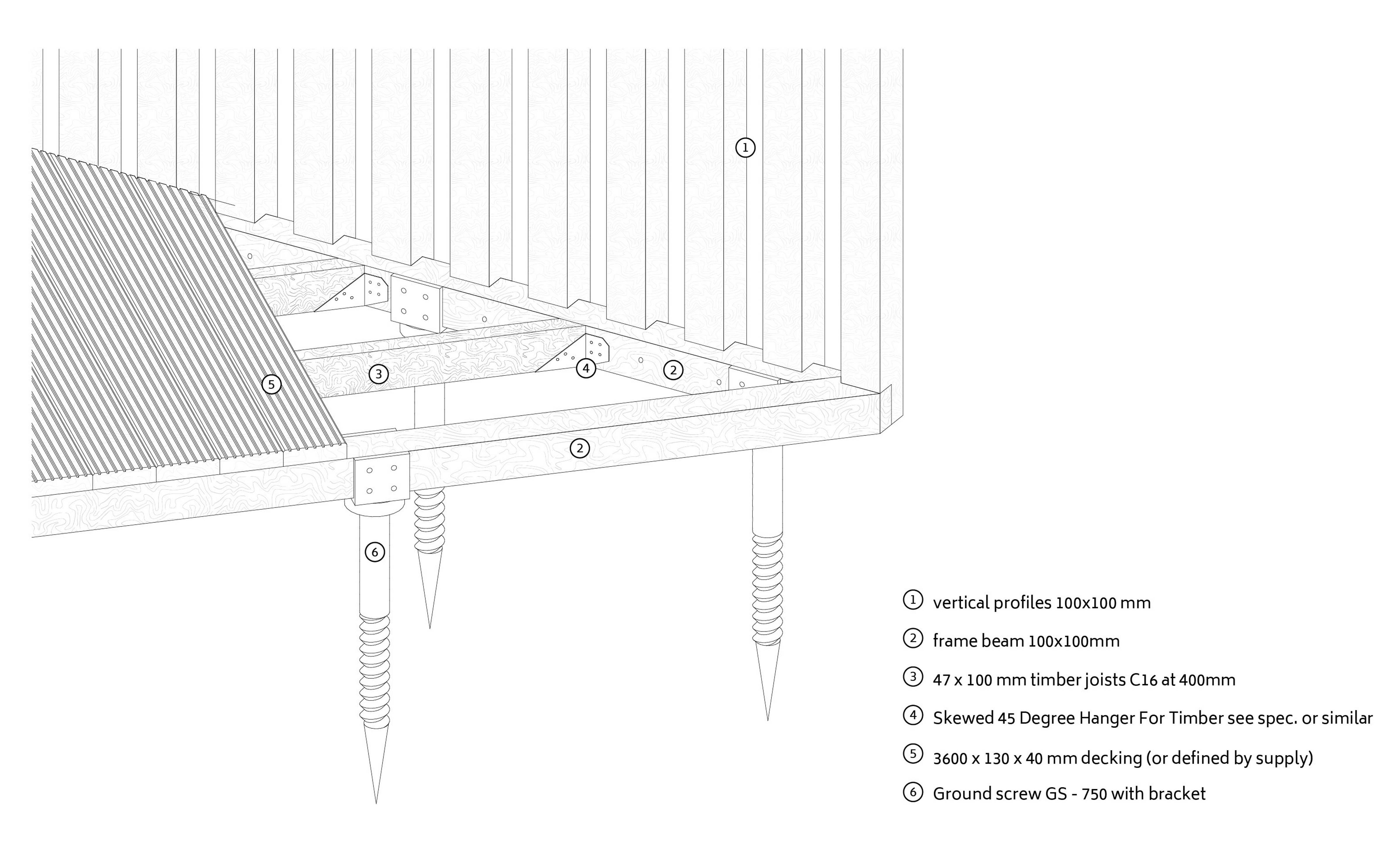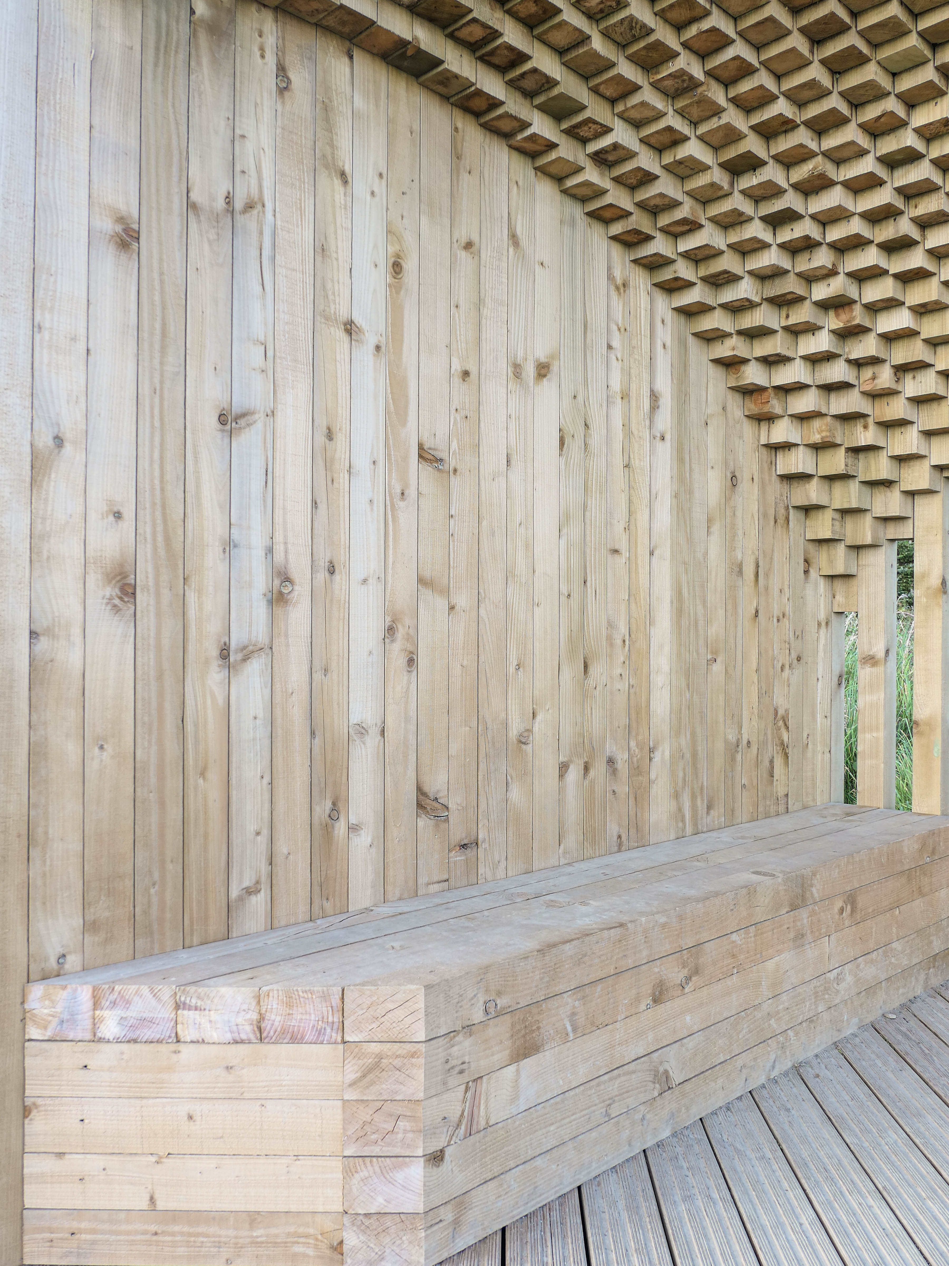 Conrhenny je obľúbené miesto turistov, cyklistov a rodín s deťmi, takže dizajn zahŕňa vyhliadkovú plošinu a lavičku.