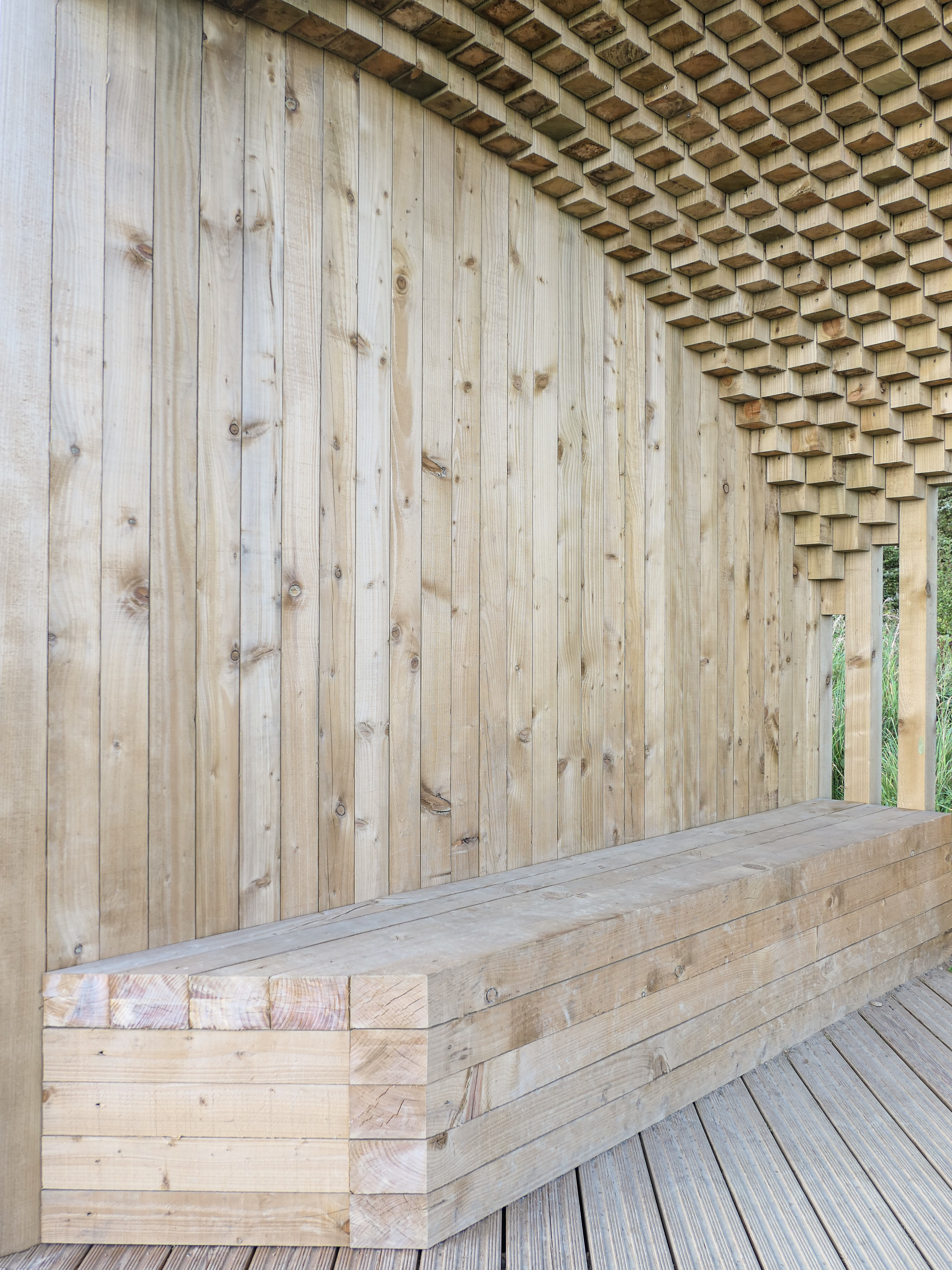 Conrhenny je obľúbené miesto turistov, cyklistov a rodín s deťmi, takže dizajn zahŕňa vyhliadkovú plošinu a lavičku.
