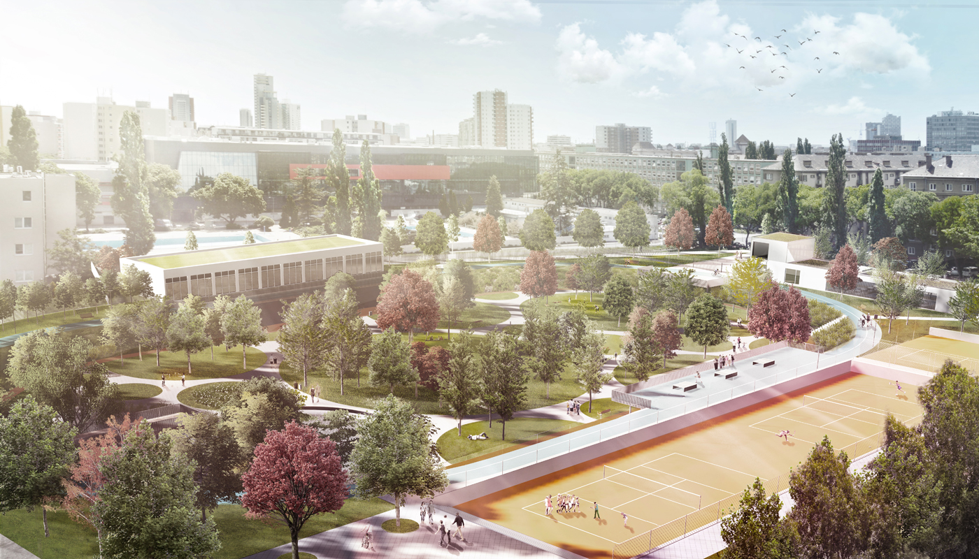 KB: Dôvod, prečo sme sa okrem iného do sútaže zapojili, bolo aj presvedčenie, že parcela bývalého Cykloštadióna môže ponúknuť viac ako len využitie pozemku na vybudovanie podzemných garáží. Súťaž sme považovali za dobrú príležitosť, ako sa zamyslieť nad riešením, ktoré by reagovalo na okolité športové danosti územia NTC, SLovan, NHC, Kúpalisko Tehelné pole. Samotná téma parku bola pre nás zaujímavá aj tým, že sme od samotného začiatku pracovali spôsobom, kedy každú myšlienku a návrh bolo potrebné podrobiť otázke verejného záujmu.