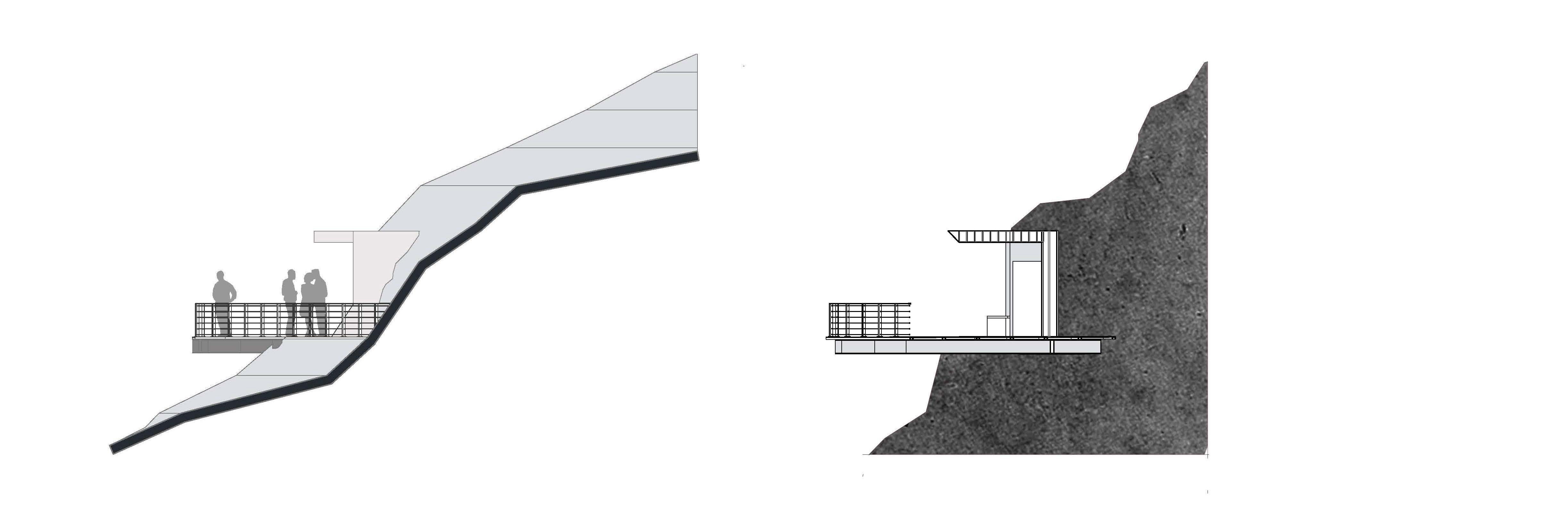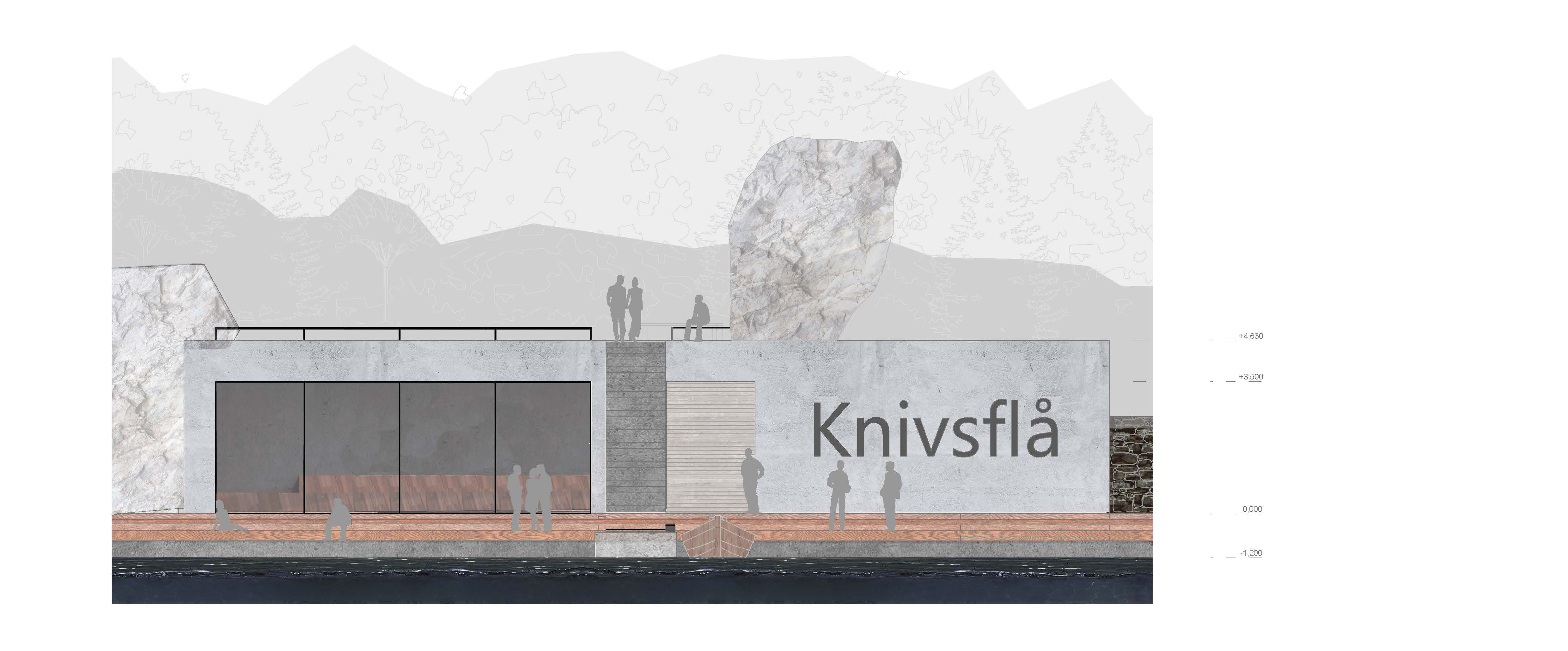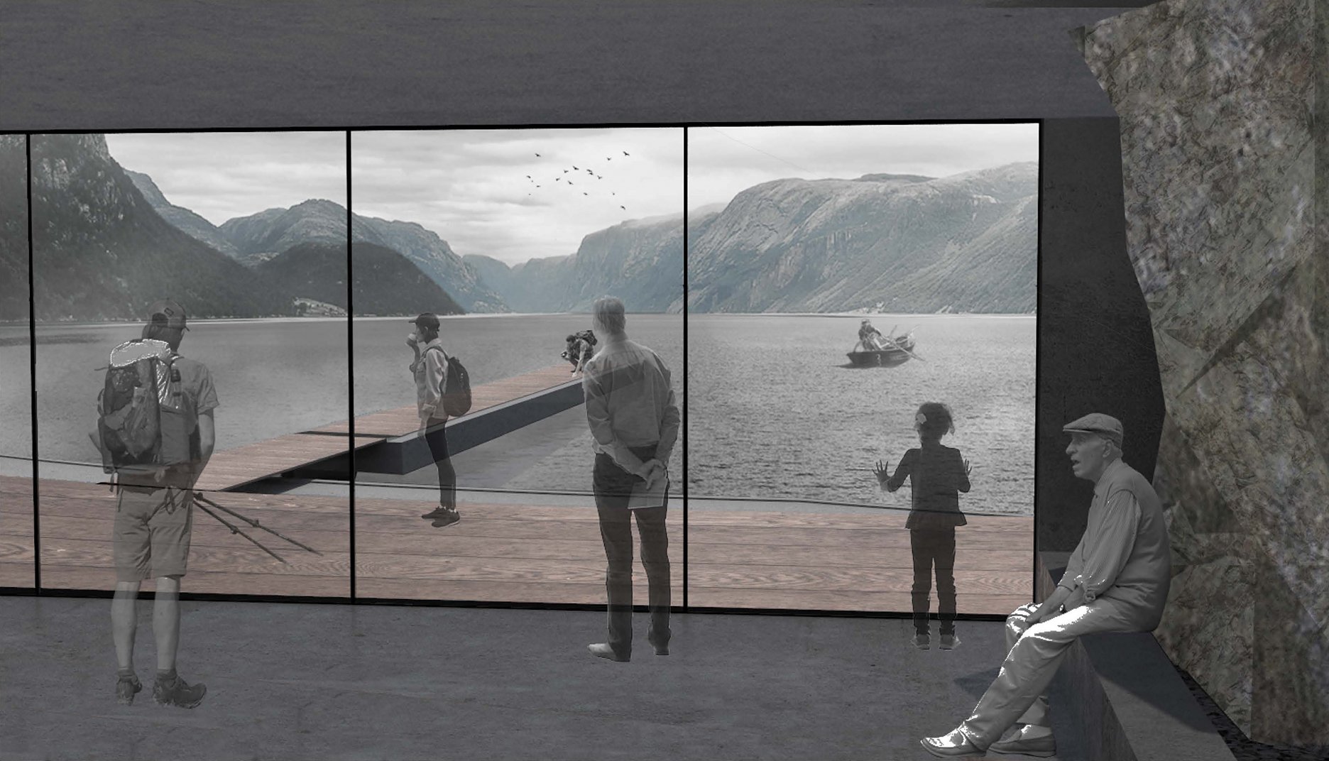 Vyhliadková trasa je delená na tri časti. Časť "A" predstavuje začiatok trasy - je tvorená prístavným mólom pre výletné lode, verejnými toaletami, objektom pre pozorovanie krajiny/čakáreň a promenádou s rekreačnou funkciou. Samotná vyhliadka - časť "B" je situovaná v blízkosti farmy Knivsflå, ktorá sa spája s históriou fjordu. Do historických kamenných múrov neďaleko farmy sú situované objekty tak aby eliminovali periférne videnie vo voľnej prírode, čo má za následok, zmenu vnímania scenérie fjordu a upriamenie pozornosti sledovateľa na hlavné krajinotvorné prvky. Záver trasy časť "C" sa nachádza v blízkosti najznámejšieho vodopádu s názvom Sedem sestier. Táto časť slúži ako vyhliadka avšak primárne ako miesto na možnosť športovej aktivity bezmotorového lietania - paraglidingu. V tomto prípade slúži lietanie ako prostriedok na opätovnú zmenu perspektívy vnímania krajiny fjordu.