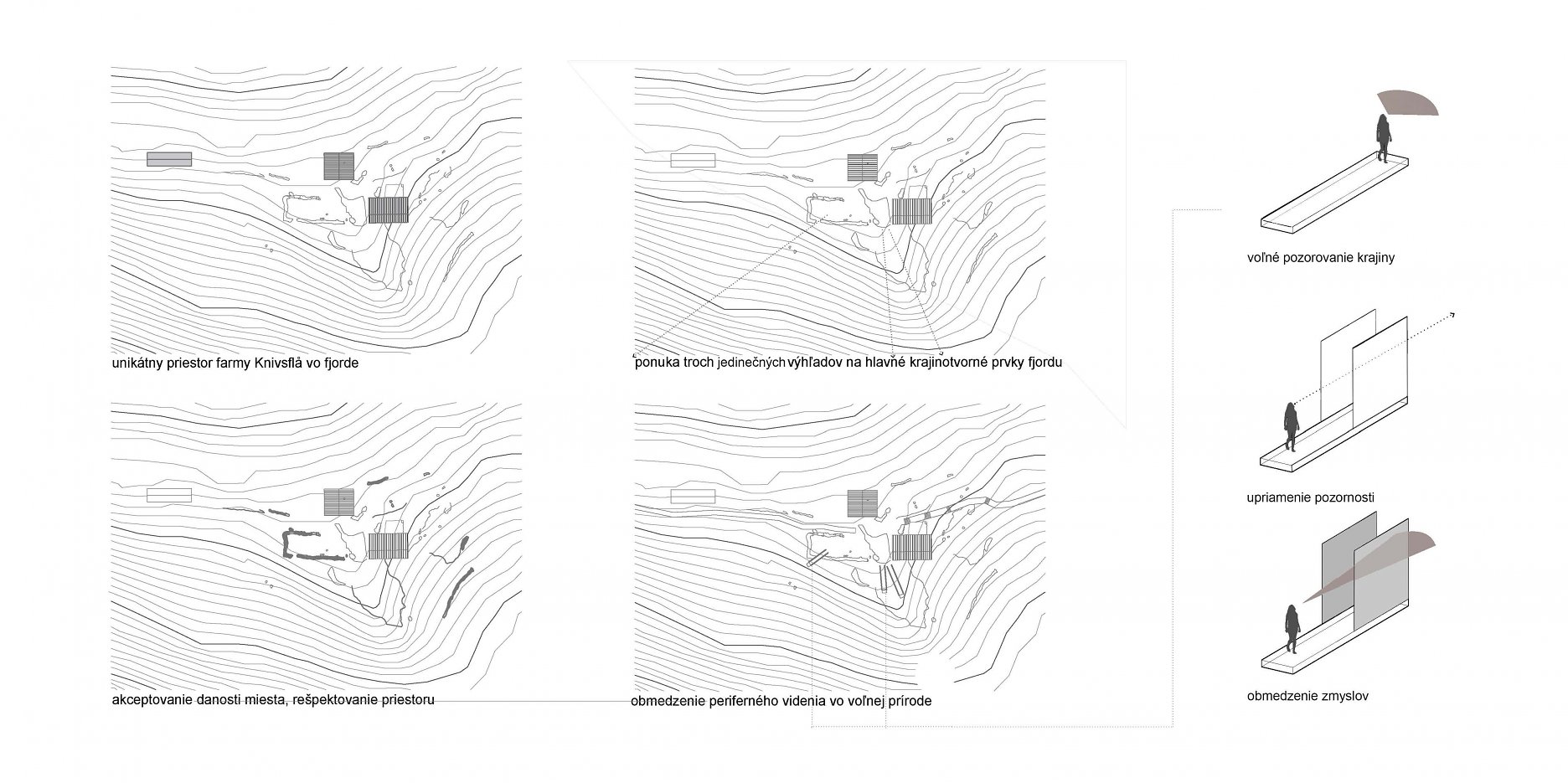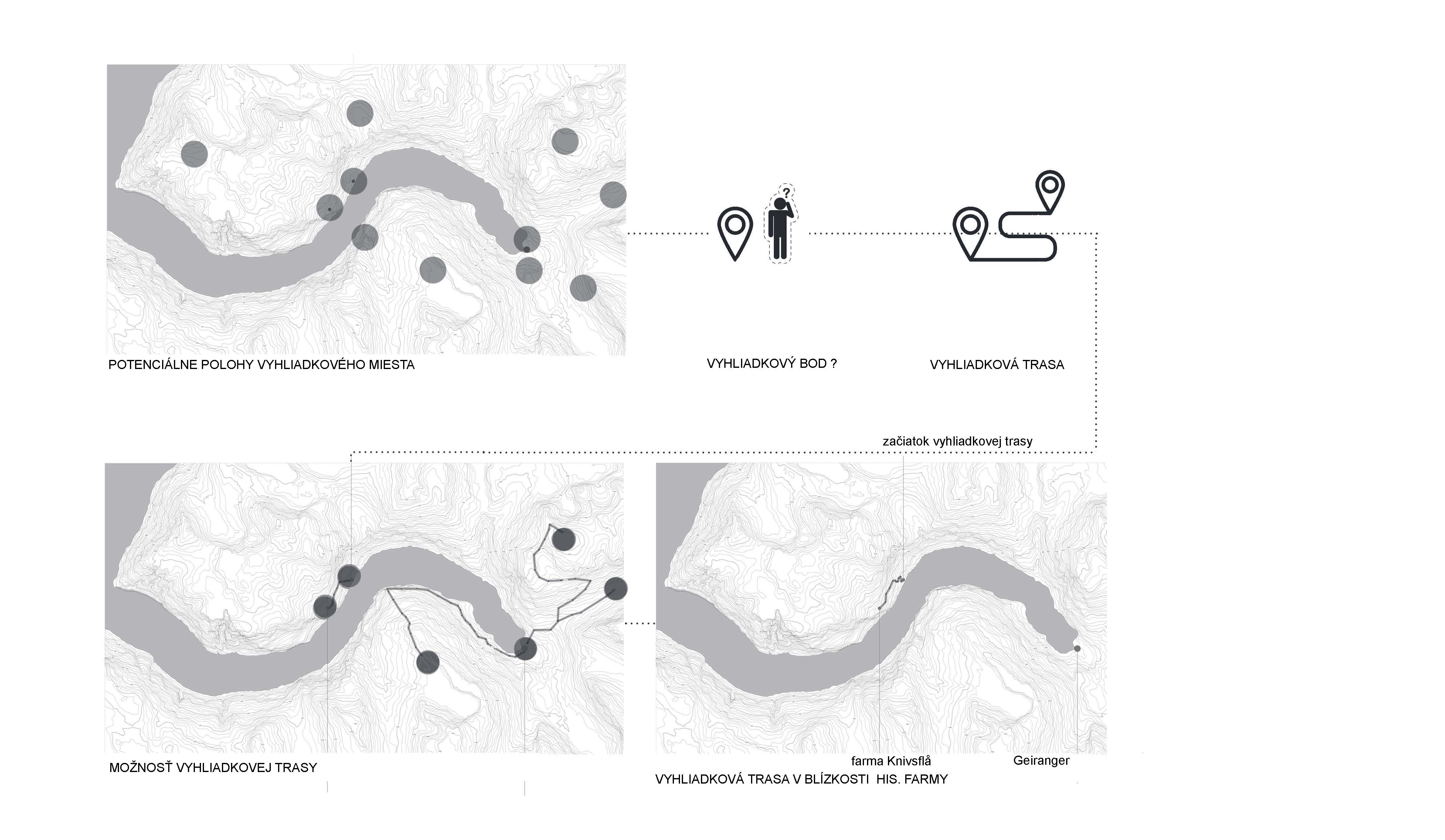 Predmetom diplomovej práce je návrh vyhliadkovej trasy v dramatickom prostredí nórskeho fjordu Geirangerfjorden. Ťažiskovou časťou celej práce je výber miesta vyhliadky a následné vytvorenie turistickej trasy. Po analýze územia fjordu, oboznámení sa s nórskym turistickým programom a vypracovaním rešerše k problematike som zvolil k danej téme „inverzný prístup“ - tj. eliminácia periférneho videnia ako opak voľného pozorovania krajiny.