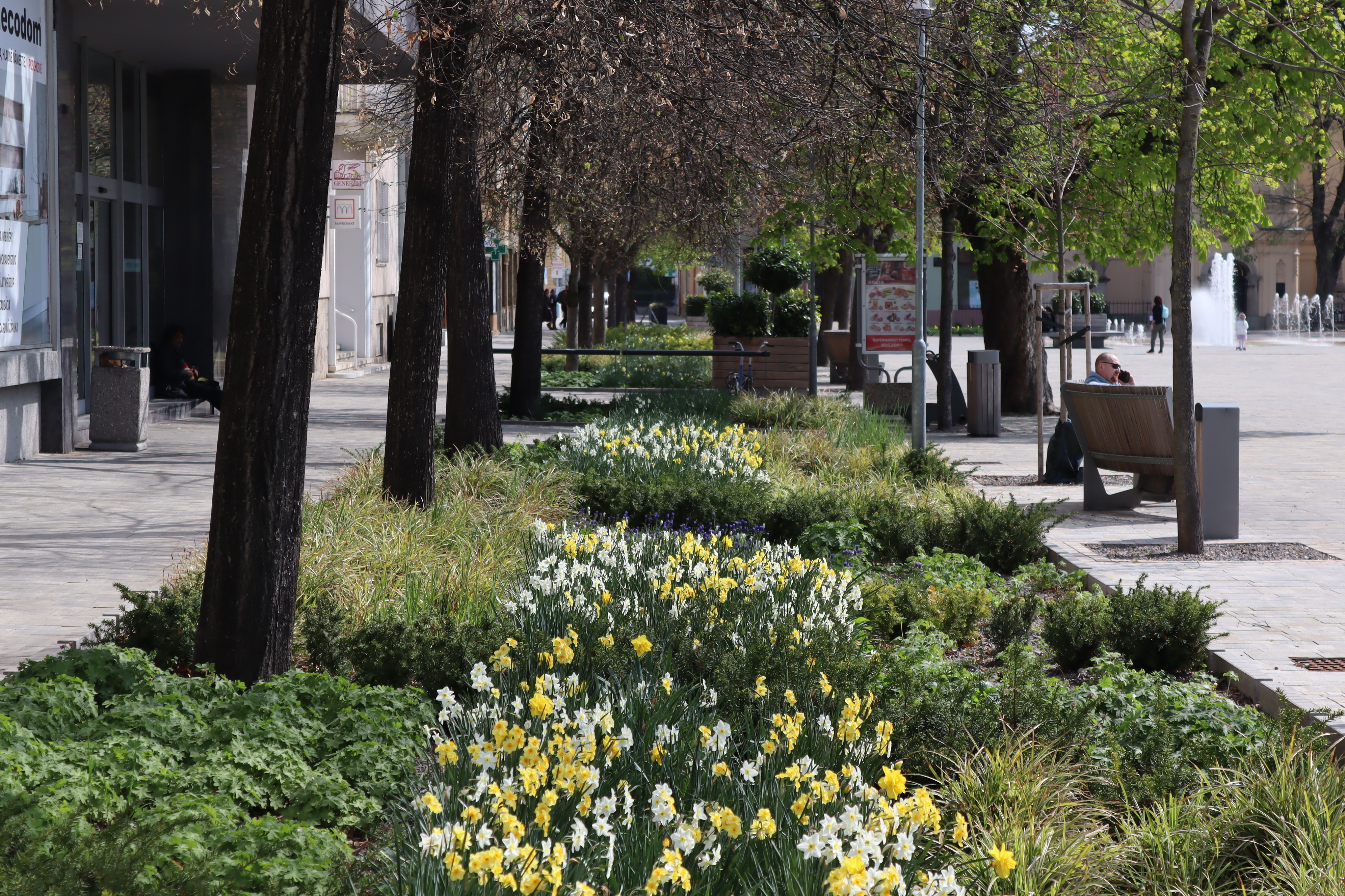 Trvalkové záhony umocňujú estetické pôsobenie námestia aj v letnom a jesennom období. Priestor námestia obohacujú o rozmanité farby a textúry. Lavičky, ktoré sú umiestnené v tieni stromov, sú vyhľadávaným miestom na stretnutia a posedenie.