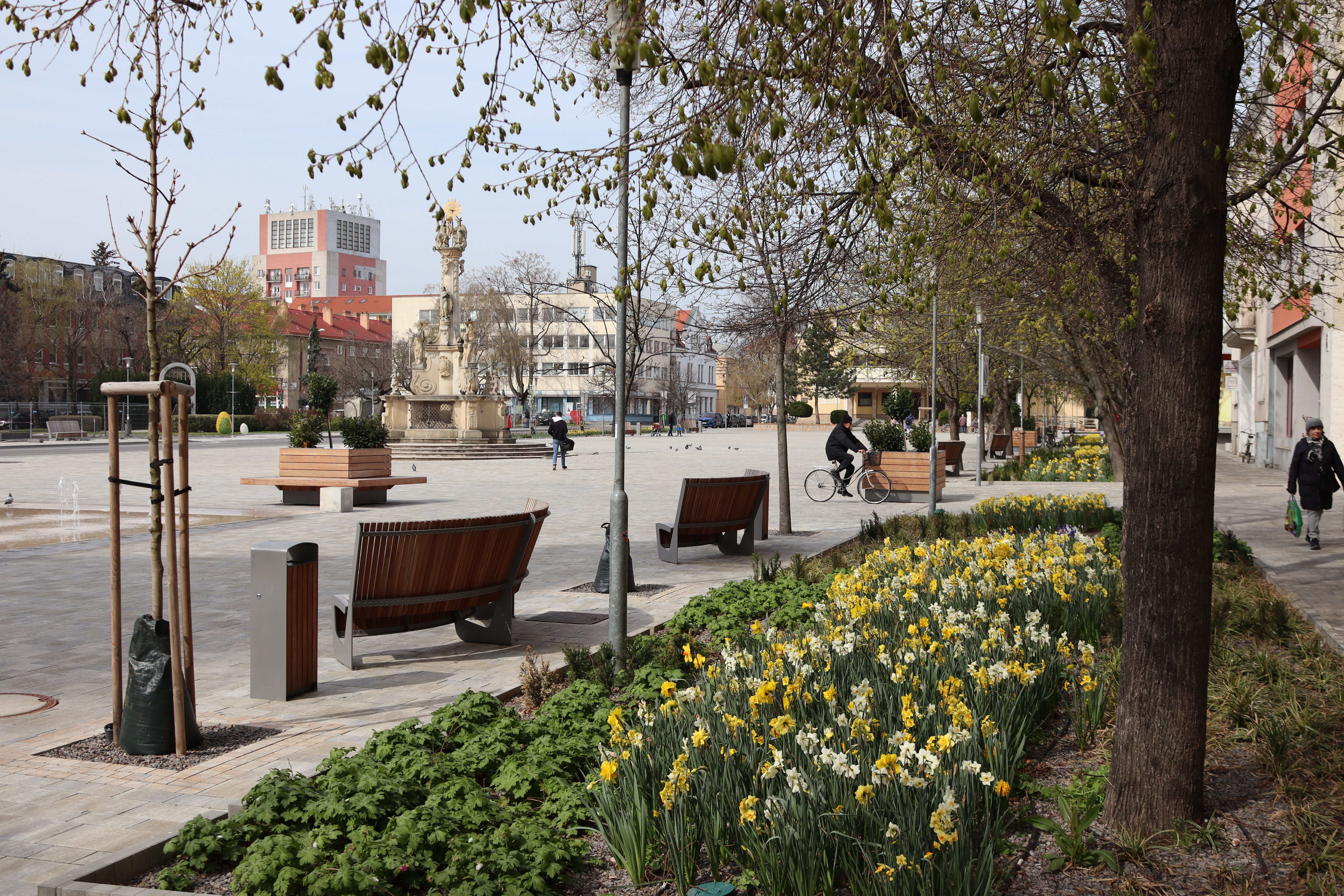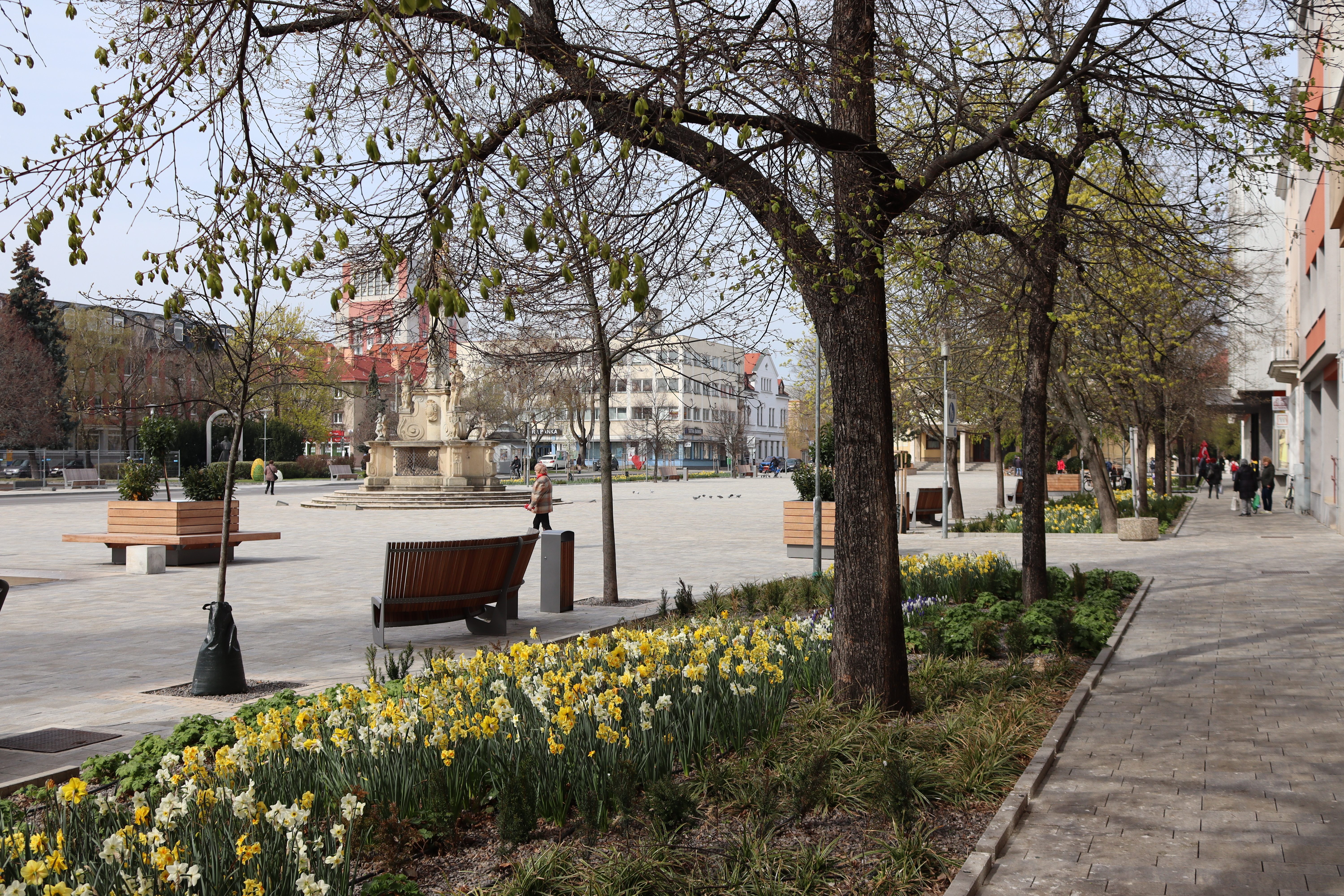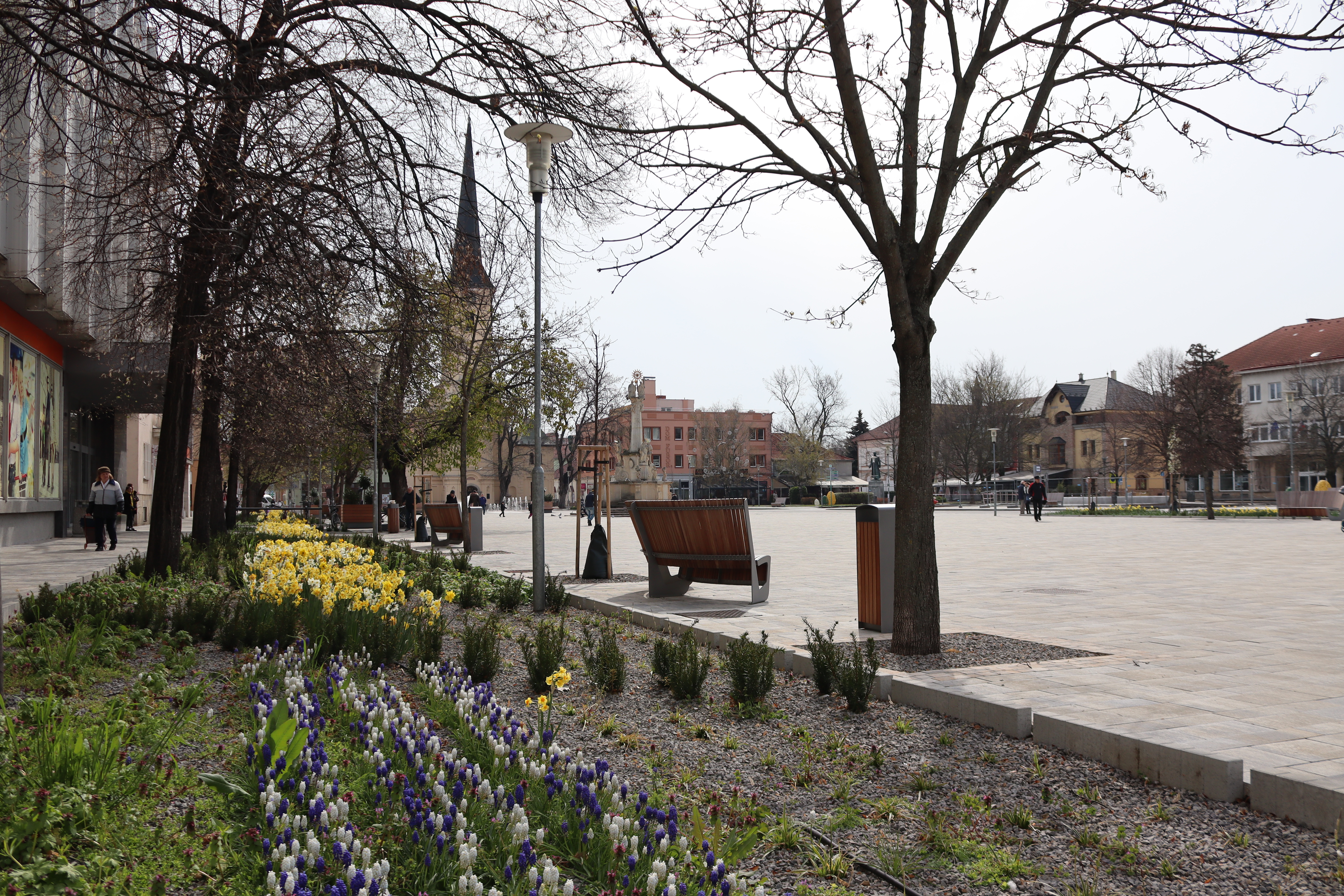 Prvá jar na obnovenom námestí (Foto: Attila Tóth, IV, V 2023)