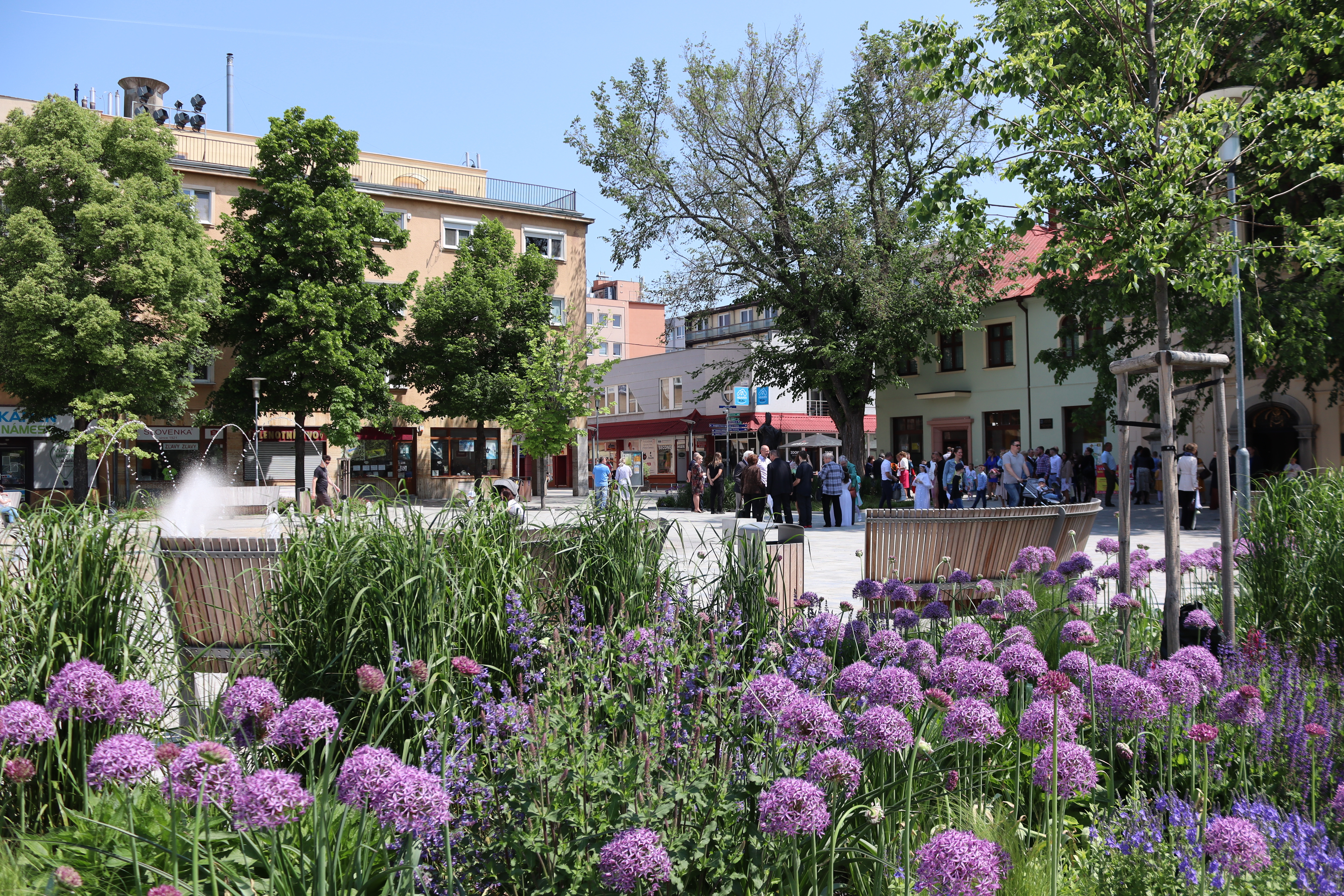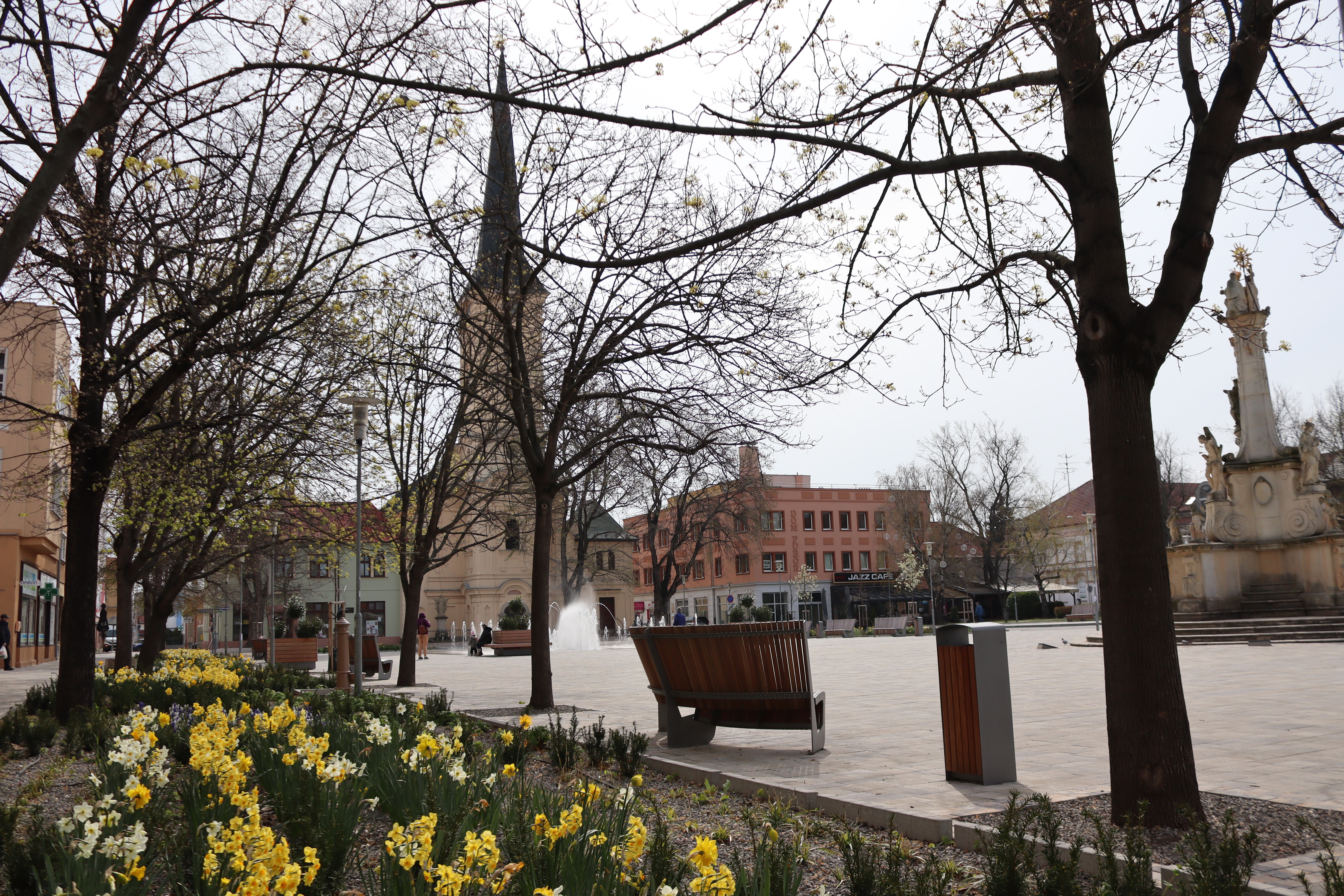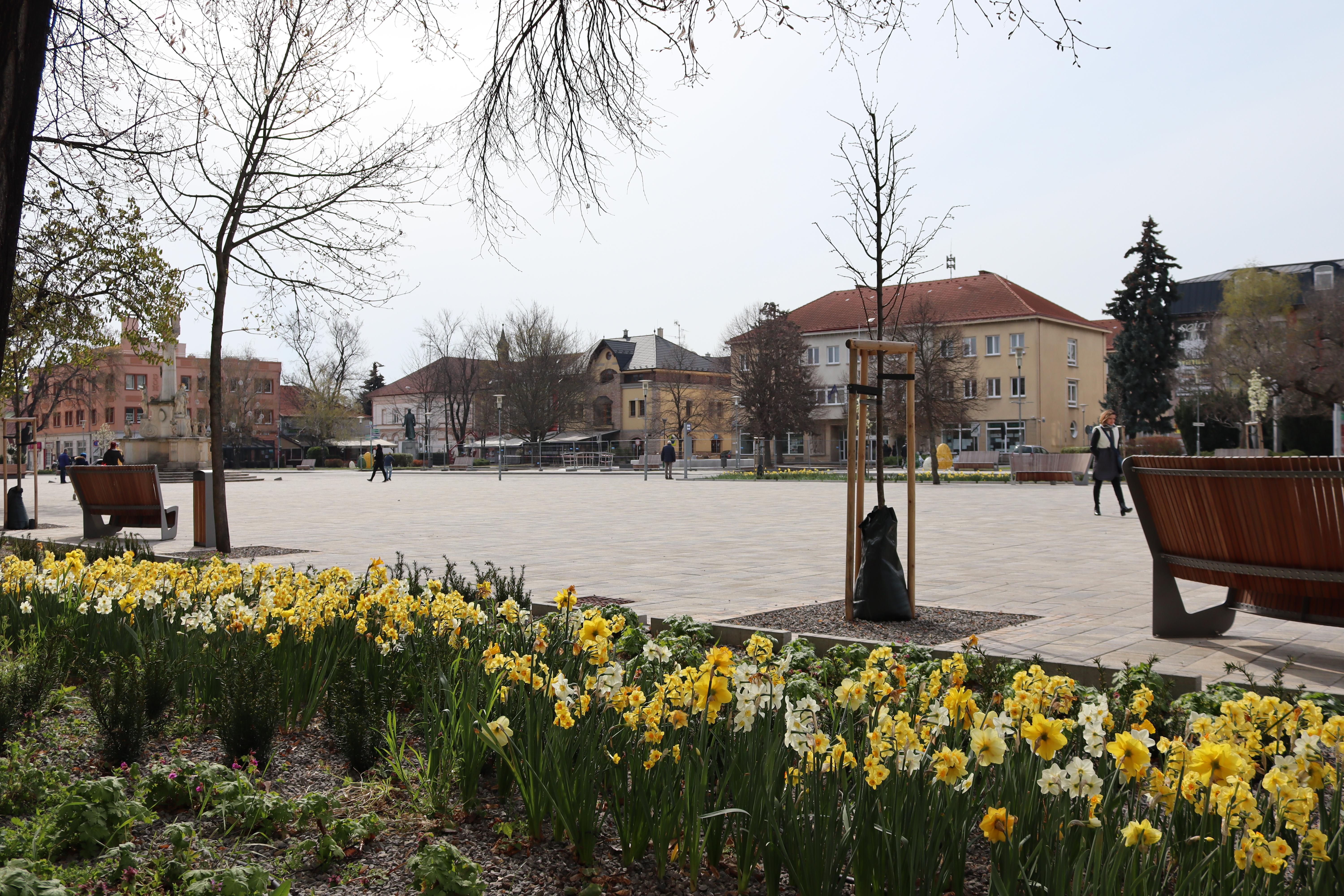 Prvá jar na obnovenom námestí (Foto: Attila Tóth, IV, V 2023)